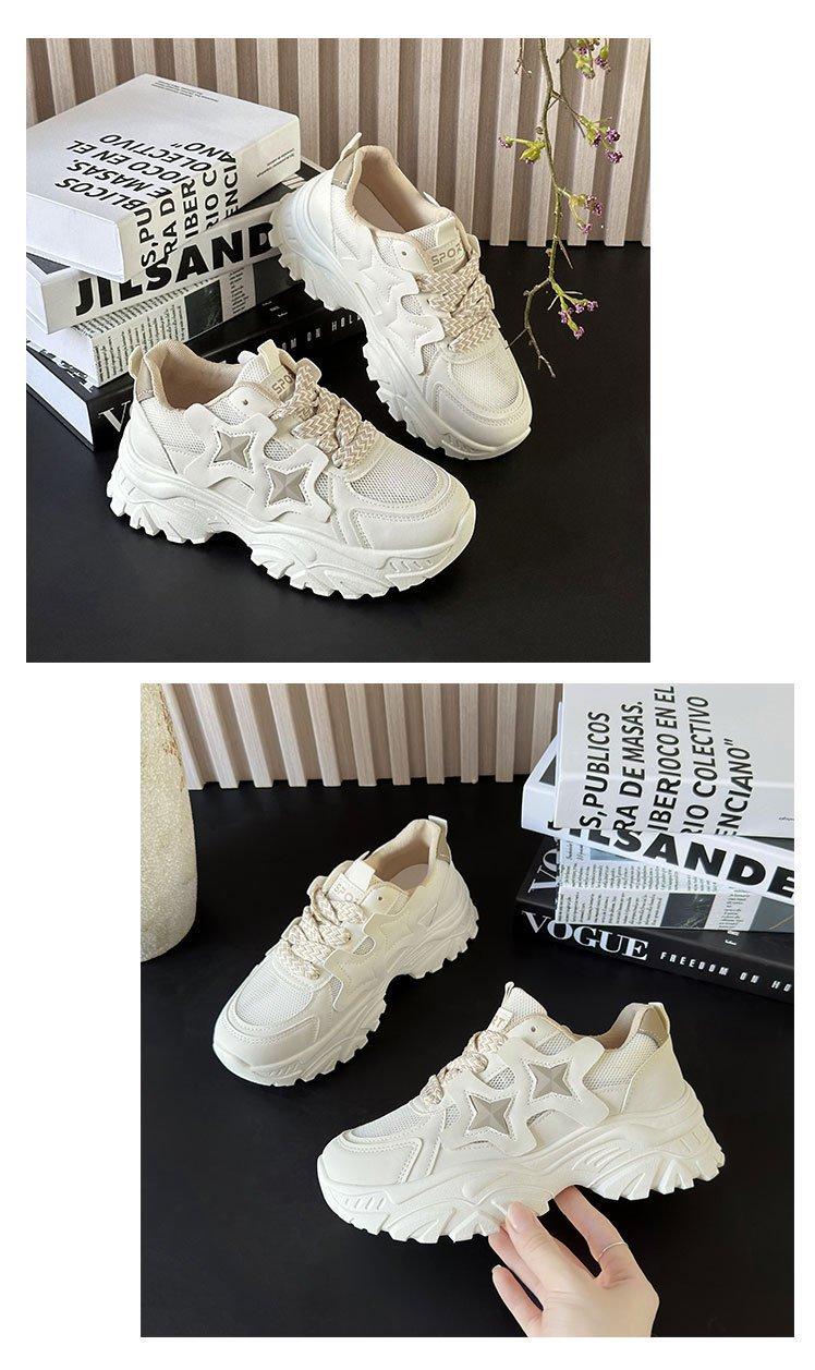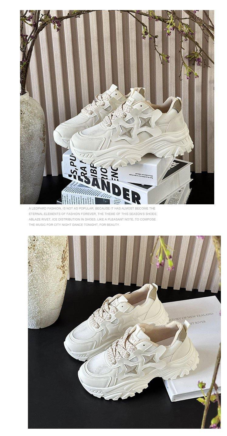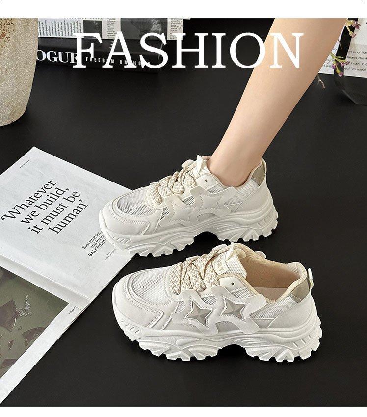 Zapatos de Papá 2025 Otoño Nuevo Suela Gruesa Combinación de Colores Estrella Estilo Preppy Versátil Plataforma Aumentadora de Altura Zapatos Deportivos y Casuales para Mujer