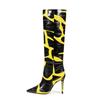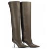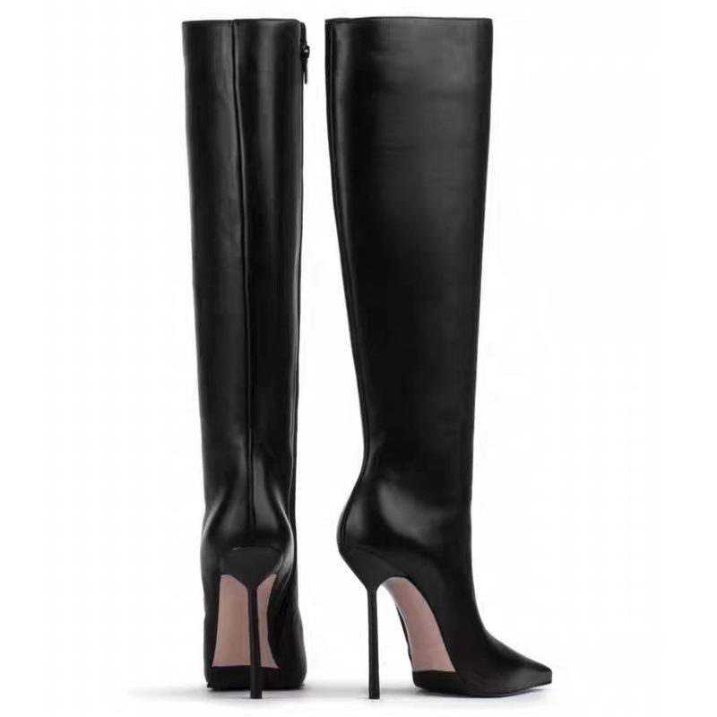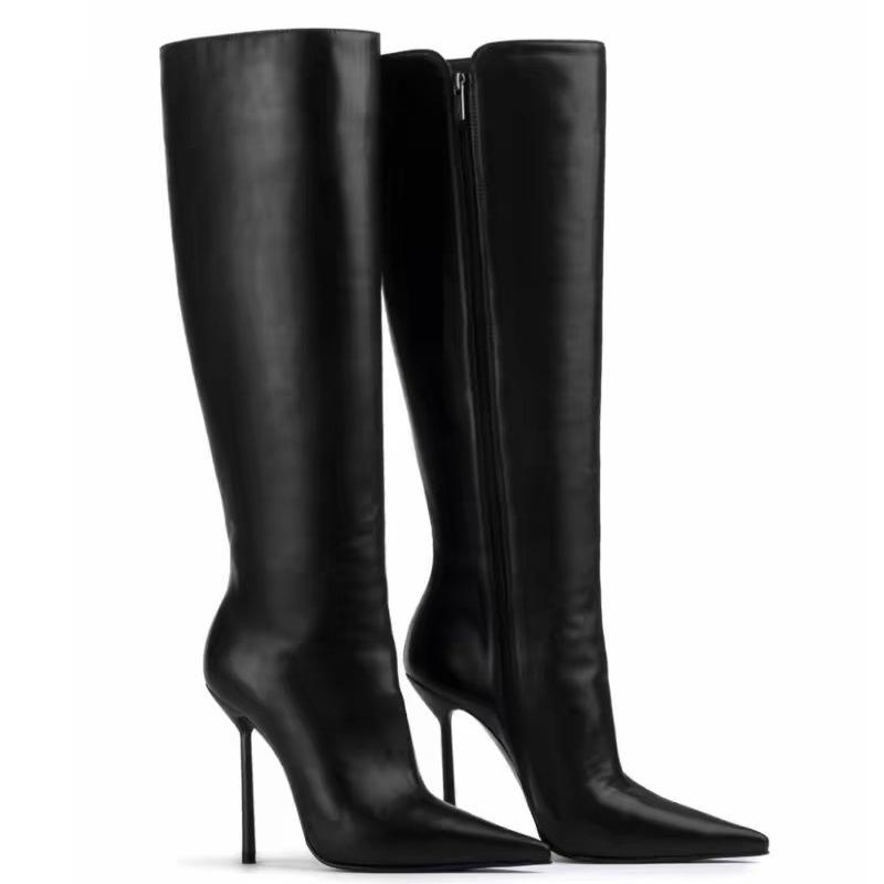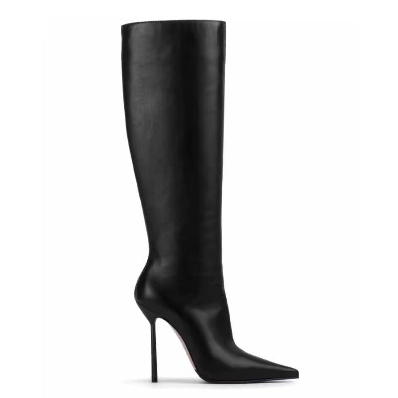 Exportación Europea y Americana 2025 Otoño e Invierno Nuevos Botines de Tacón Super Alto de Aguja Color Puro Botas Altas Moda Punta Afilada Talla Grande Moda