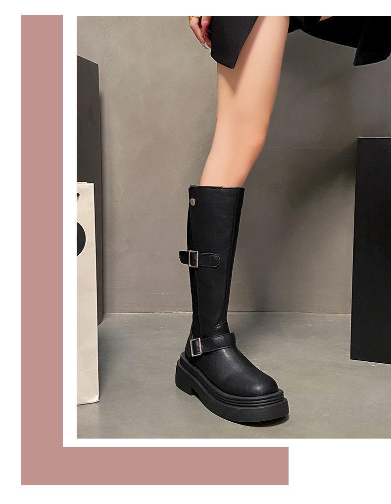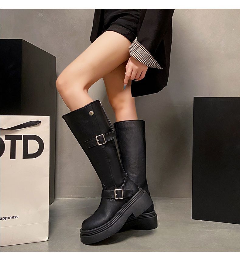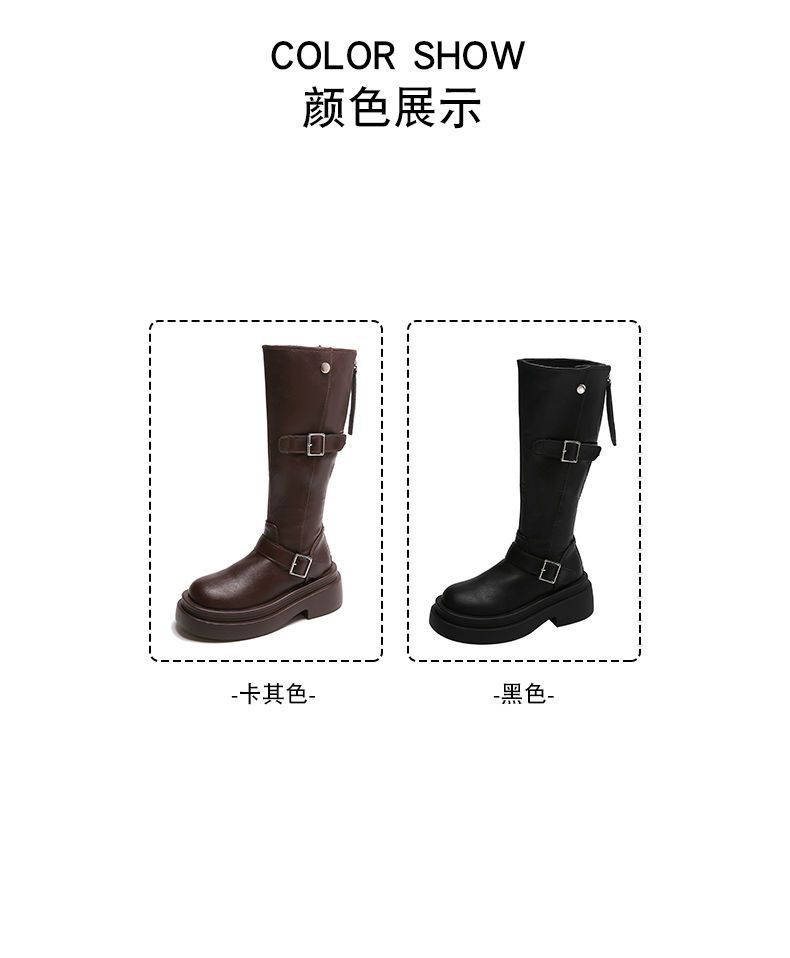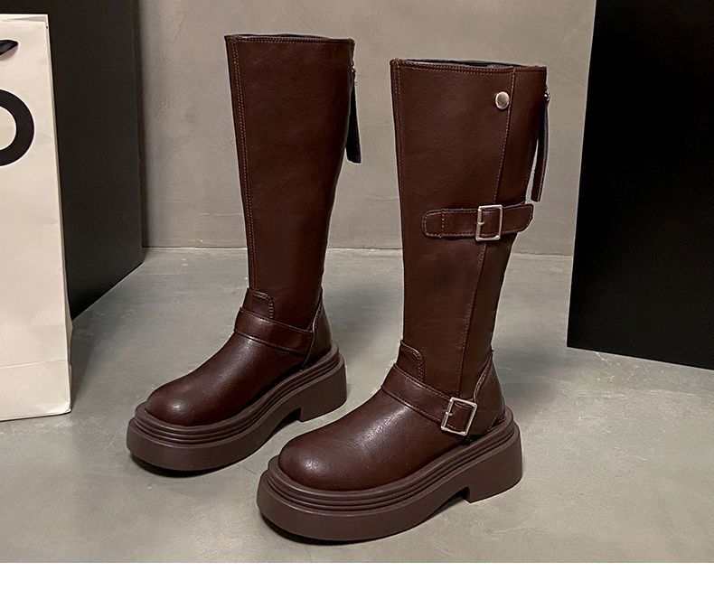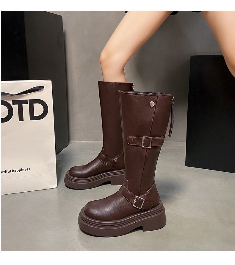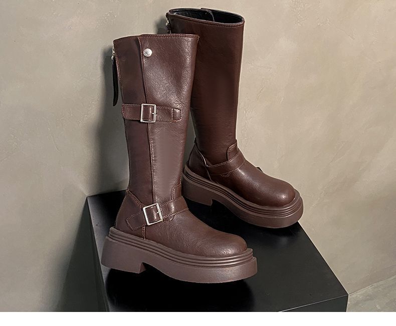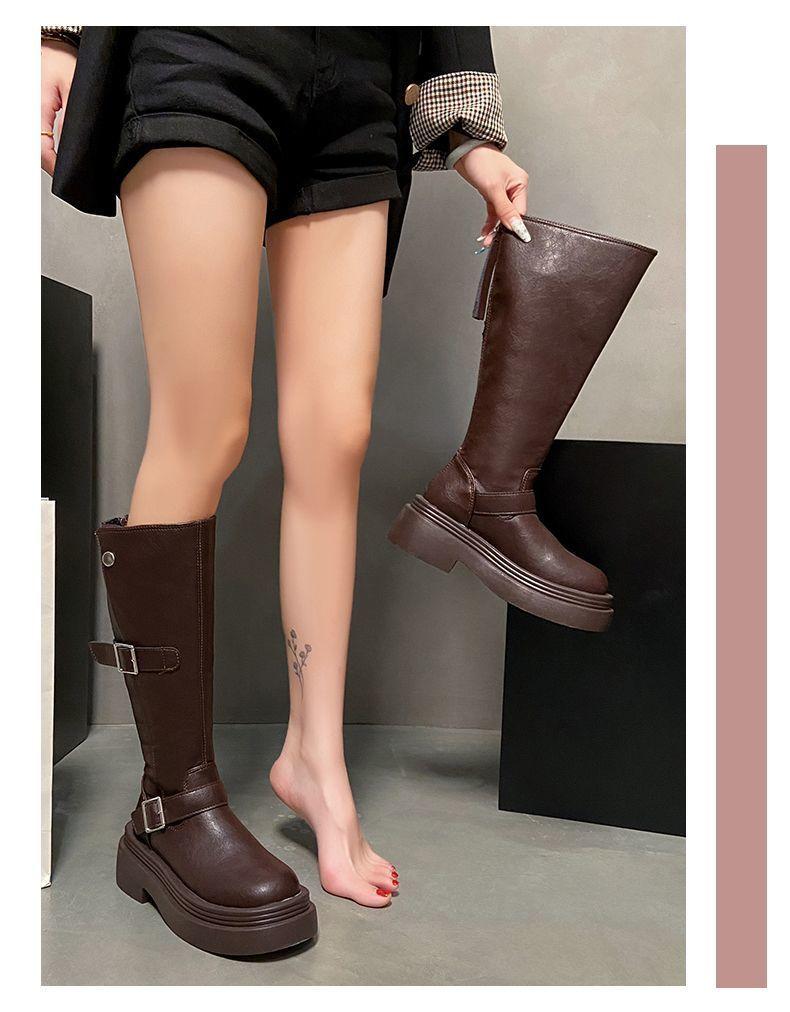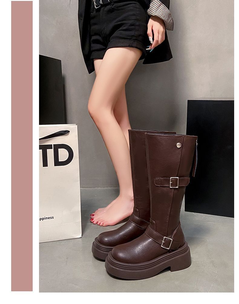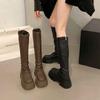 Botas altas de caballero con tacón grueso y suela gruesa, adelgazantes y elásticas, color marrón, para mujer, otoño e invierno 2024