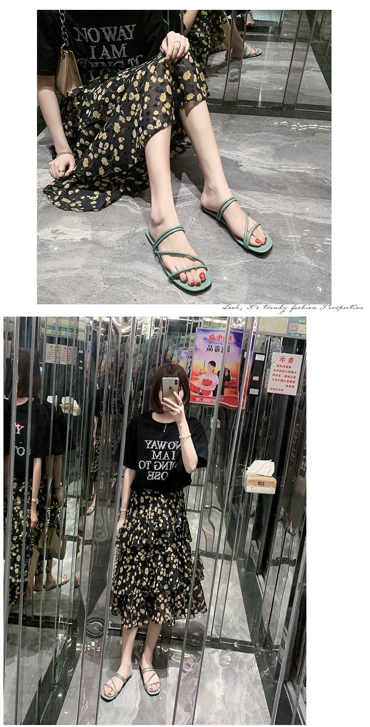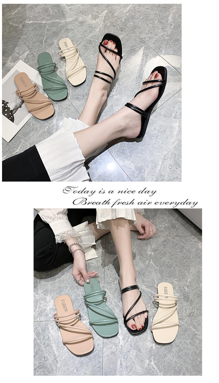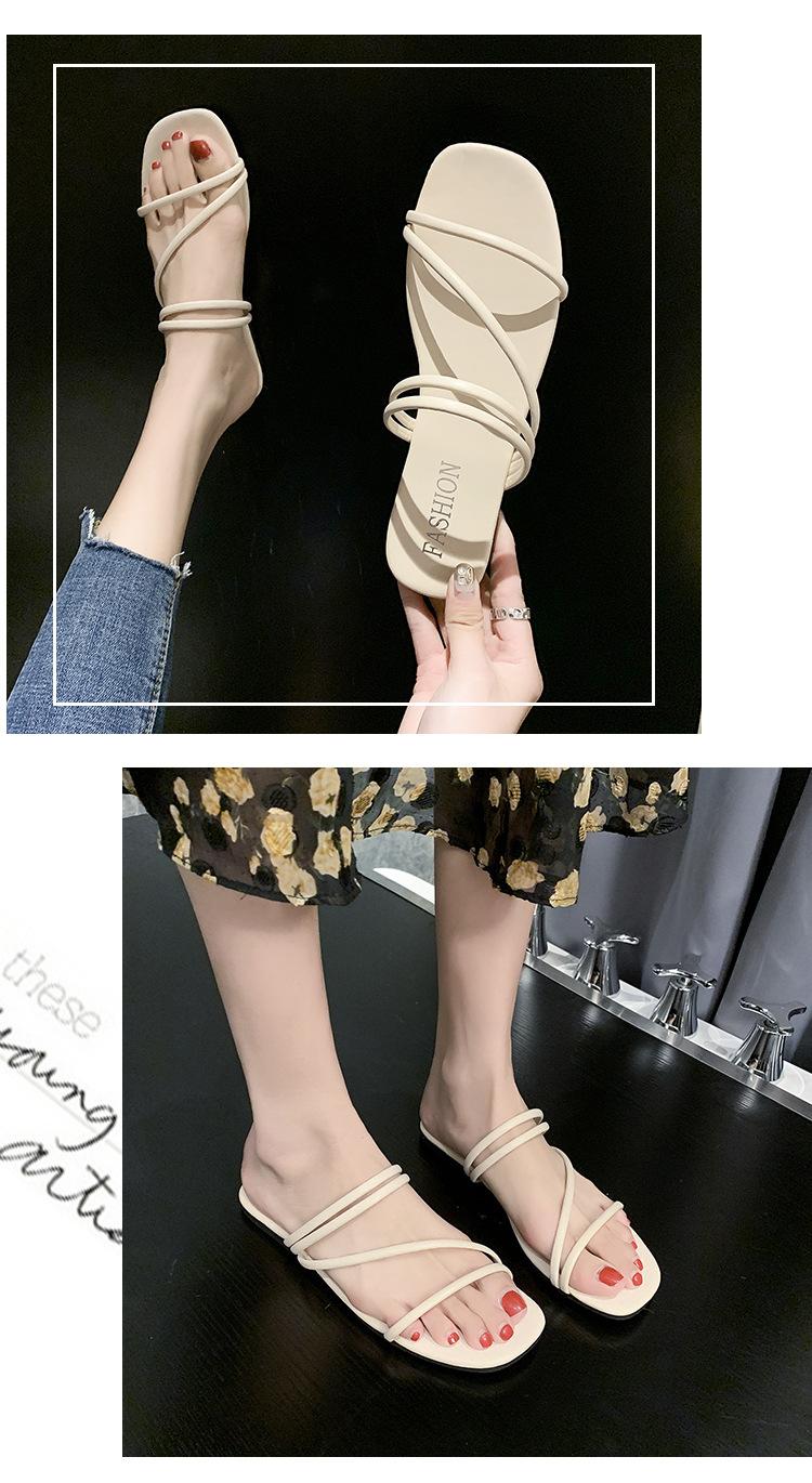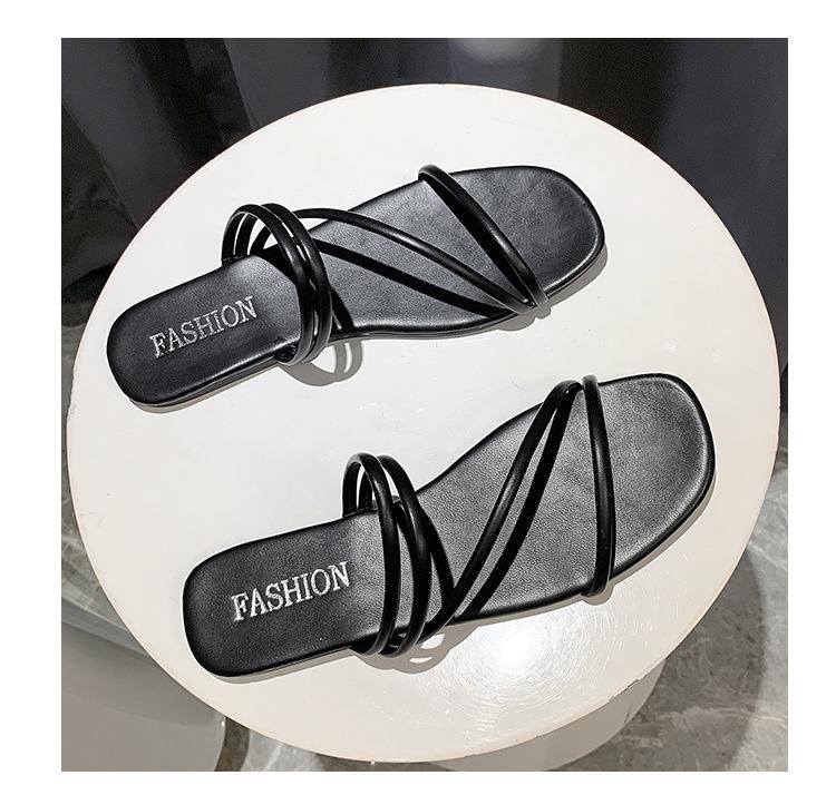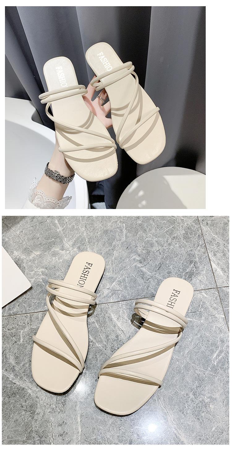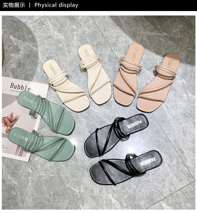 Sandalias bidireccionales nuevas de verano 2023, sandalias de una sola tira de estilo coreano a la moda para mujer, zapatillas planas informales para exteriores, lote de comercio exterior