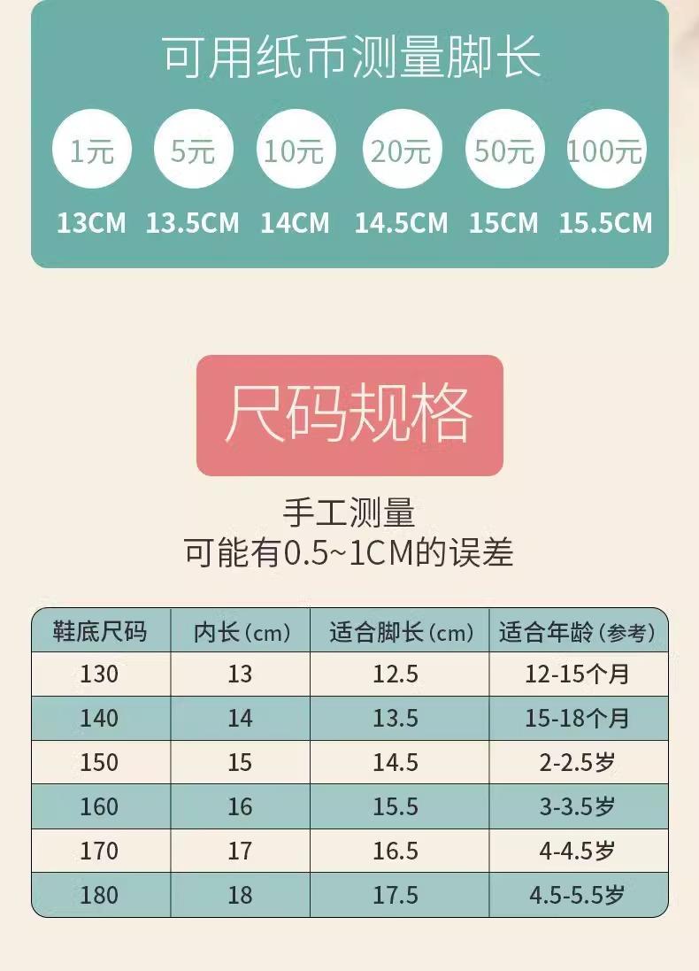 130 (inner length 13cm, suitable for about 12-15 months), 140 (inner length 14cm suitable for 15-18 months), 1...
