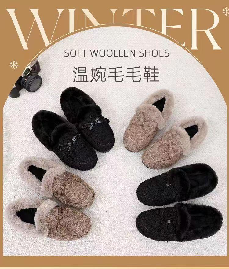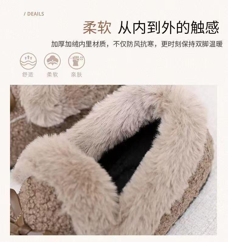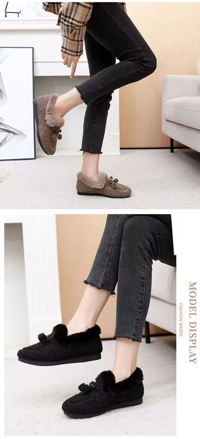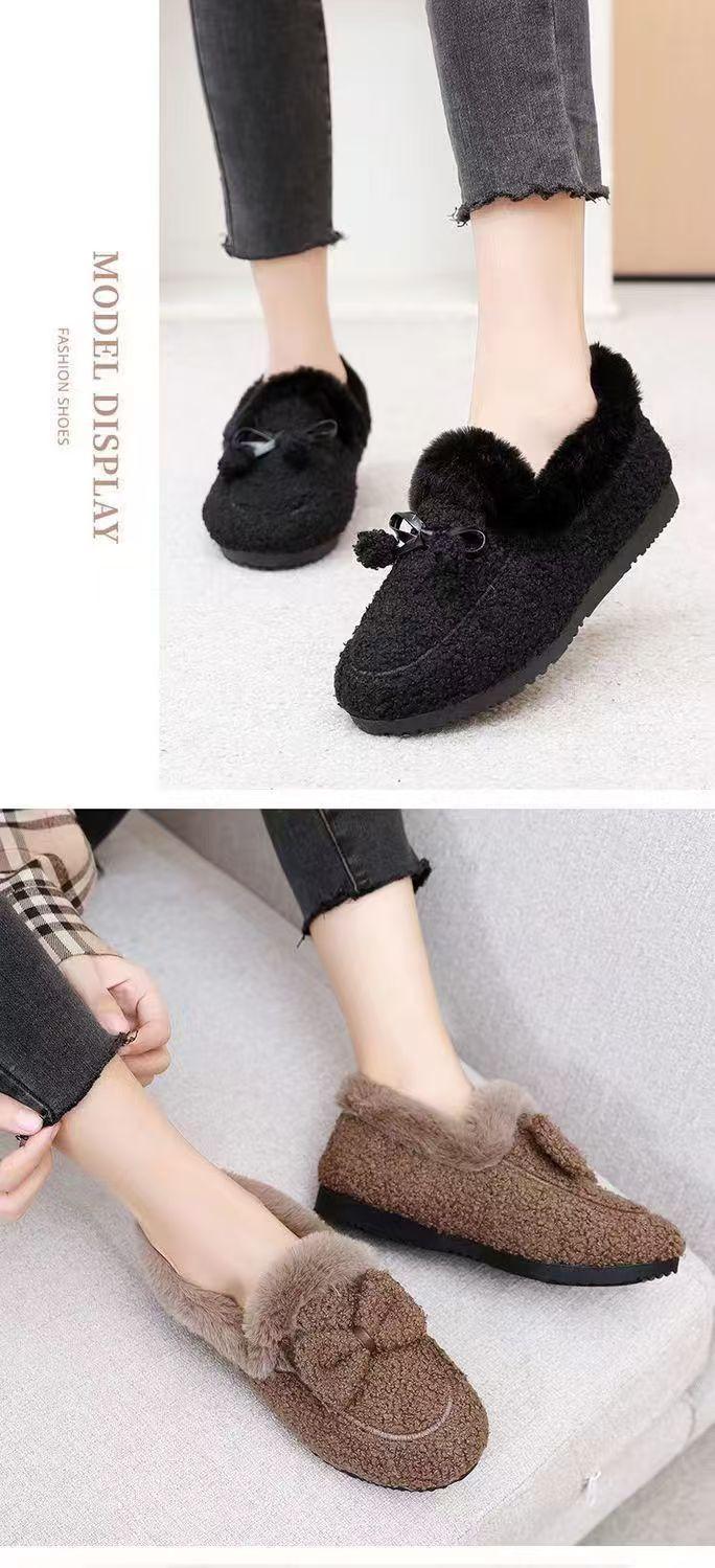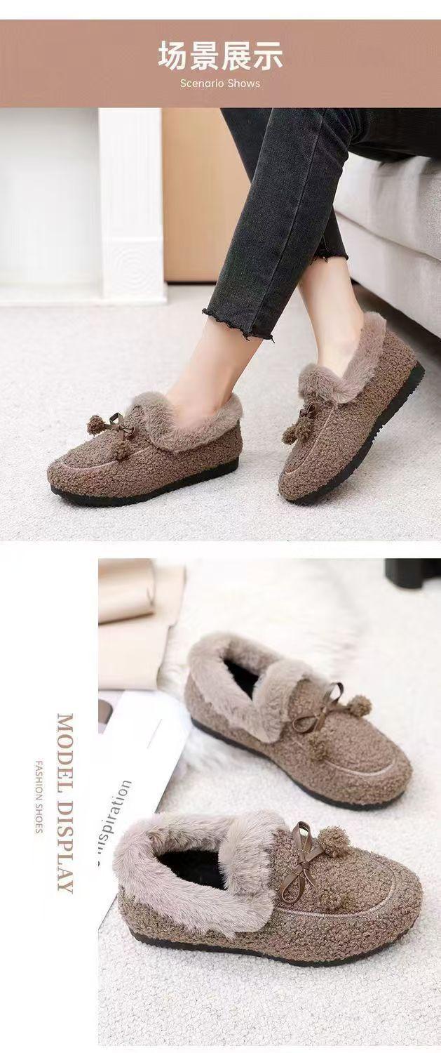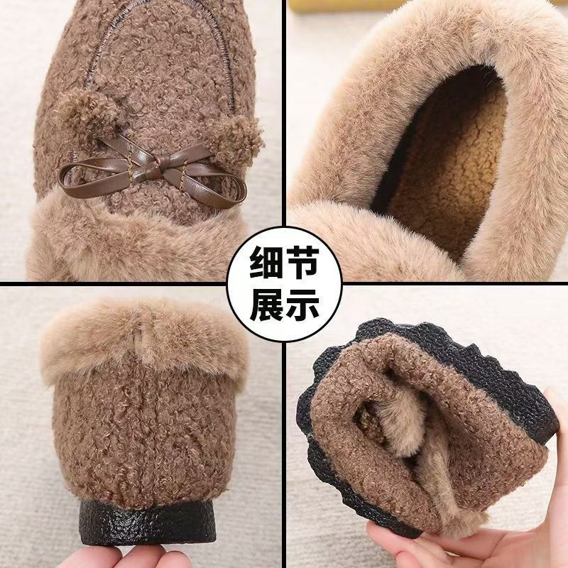 Zapatos de guisante para mujer de Old Beijing, zapatos de casa para otoño/invierno, sin cordones, forrados de vellón, gruesos, cálidos, para madres, zapatos Mao Mao