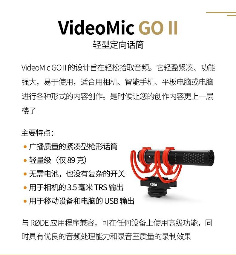 Micrófono RODE RODE VideoMic Go II micrófono direccional profesional para entrevistas de una sola pieza