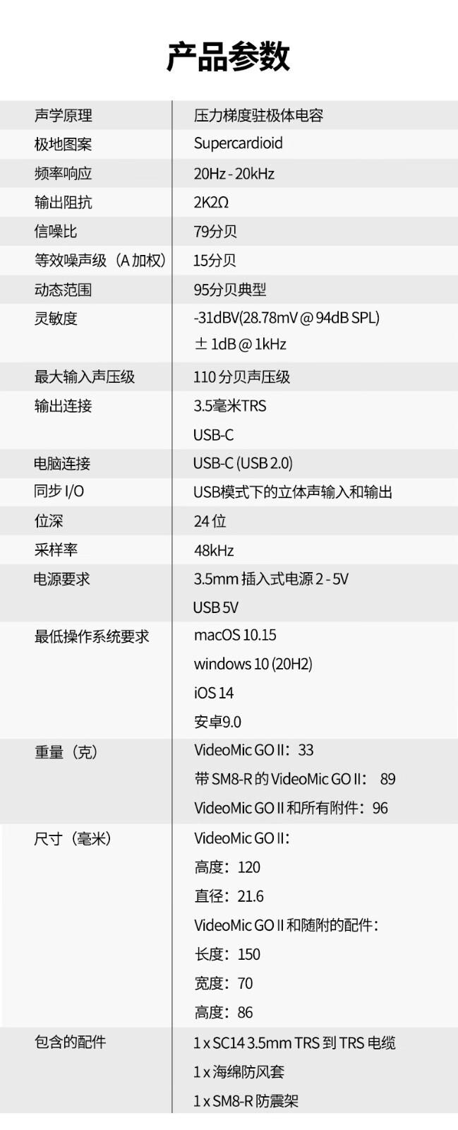 VideoMic Go II, VideoMic GO II + Type-c cable, VideoMic GO II + Apple cable, VideoMicGO II + Apple line + type-c