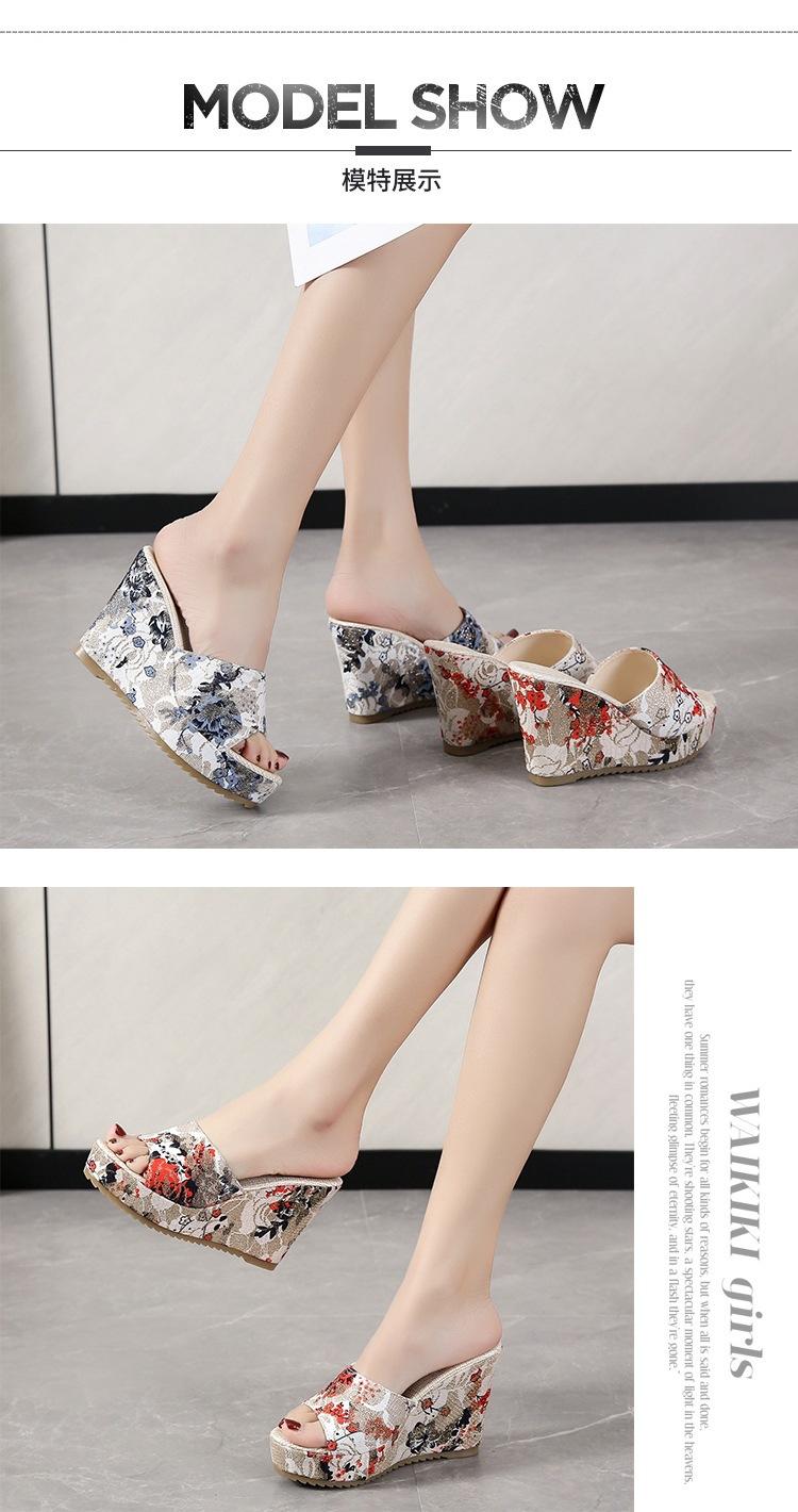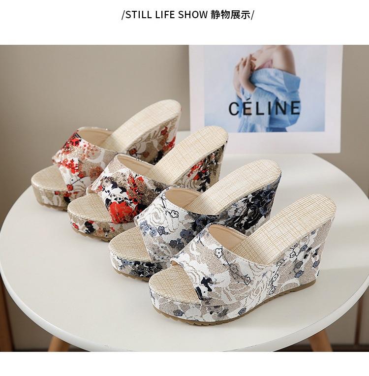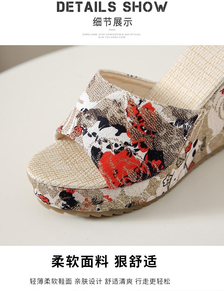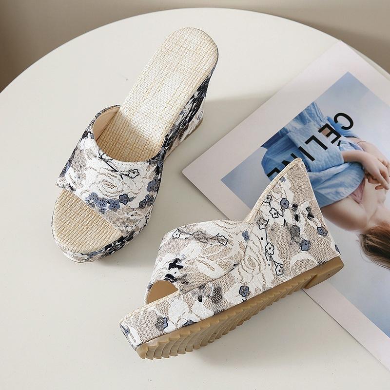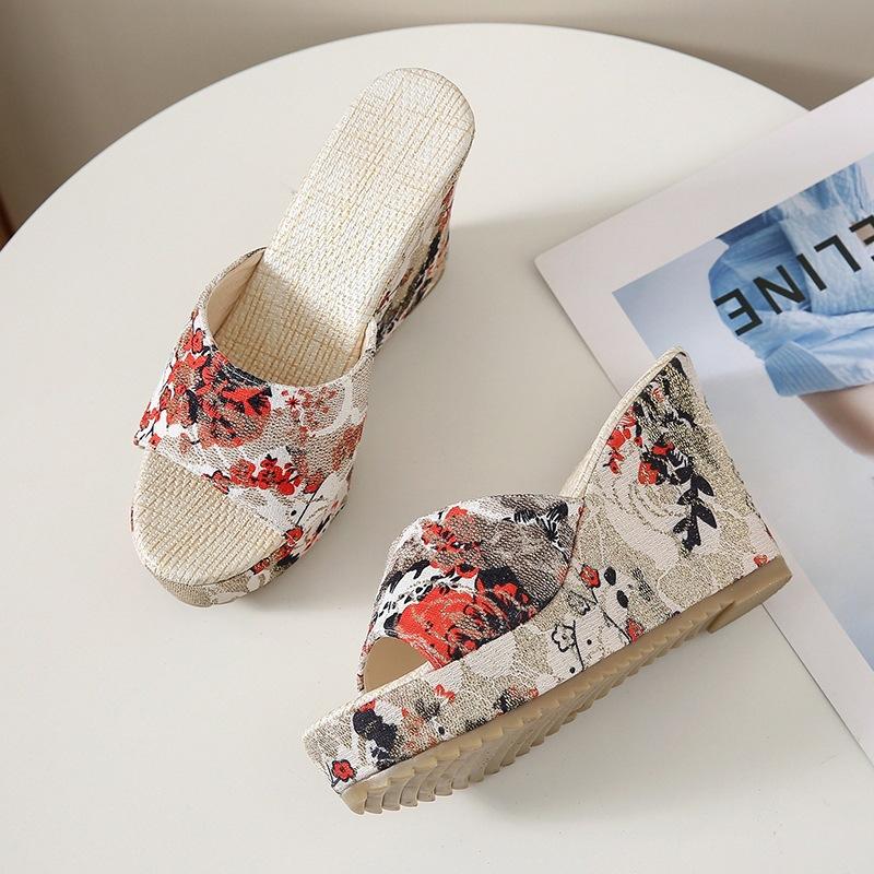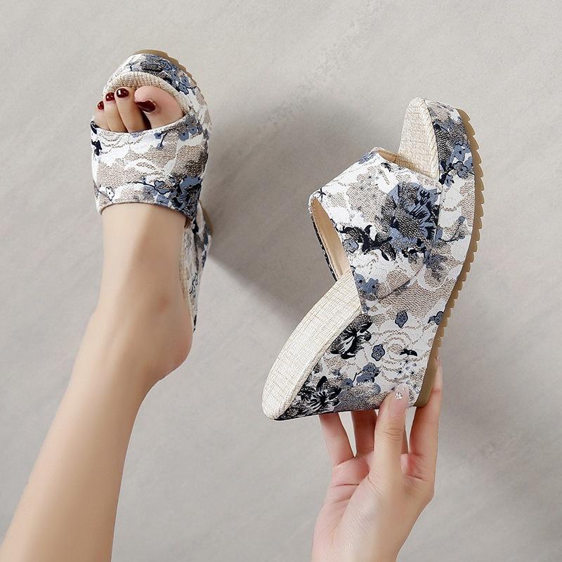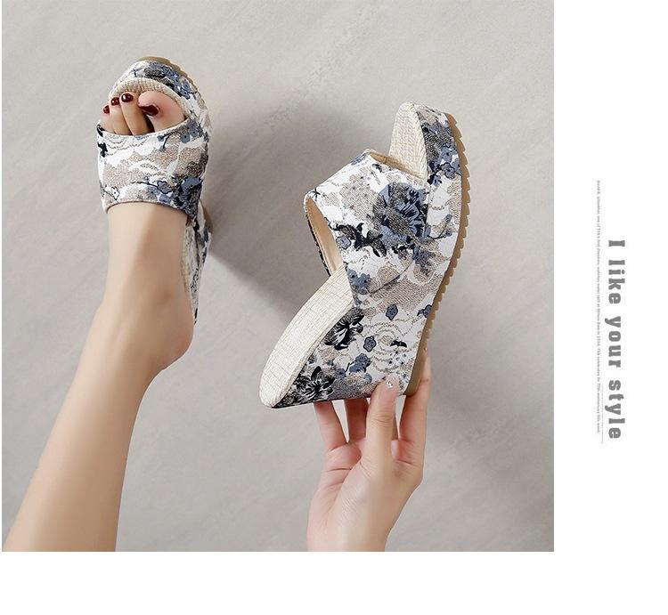 Sandalias de cuña de suela gruesa y tacón alto con flores de verano 2022 europeas y americanas, zapatos de mujer, zapatillas de comercio exterior, zapatos de mujer, zapatillas