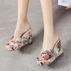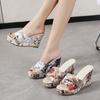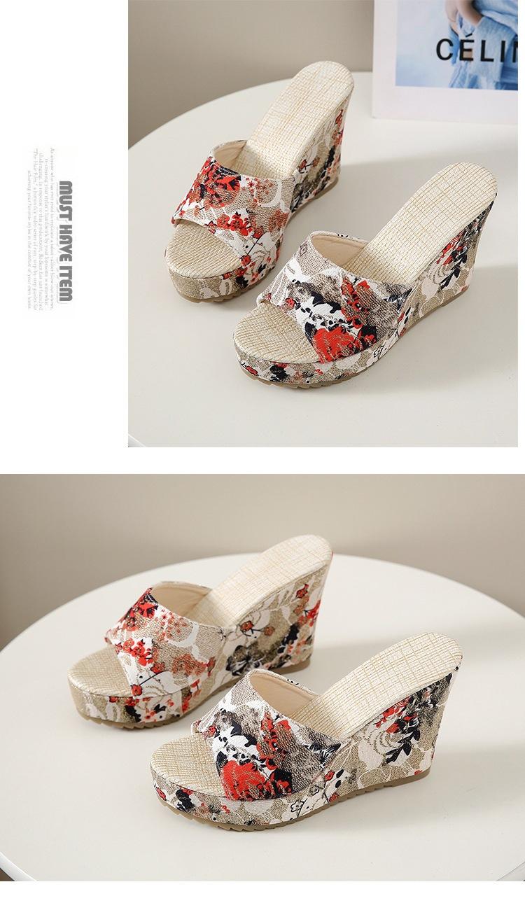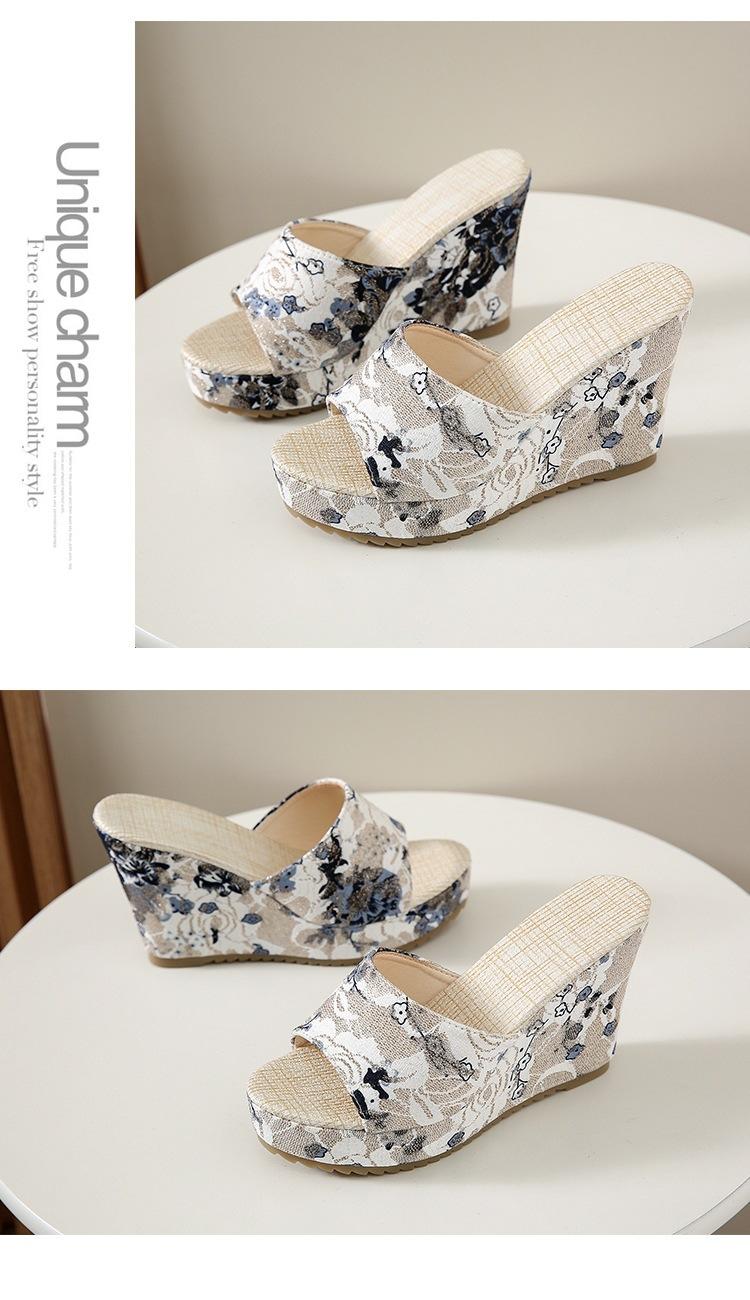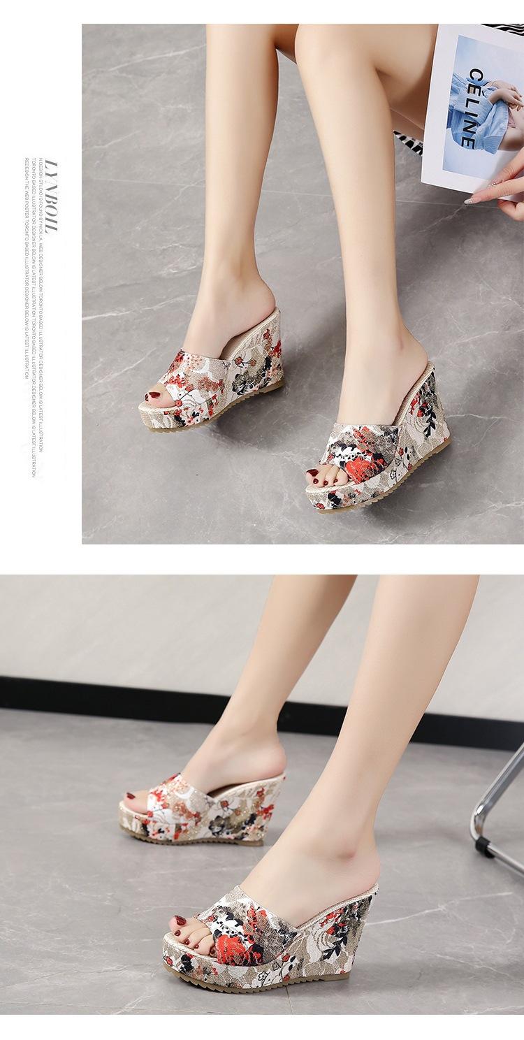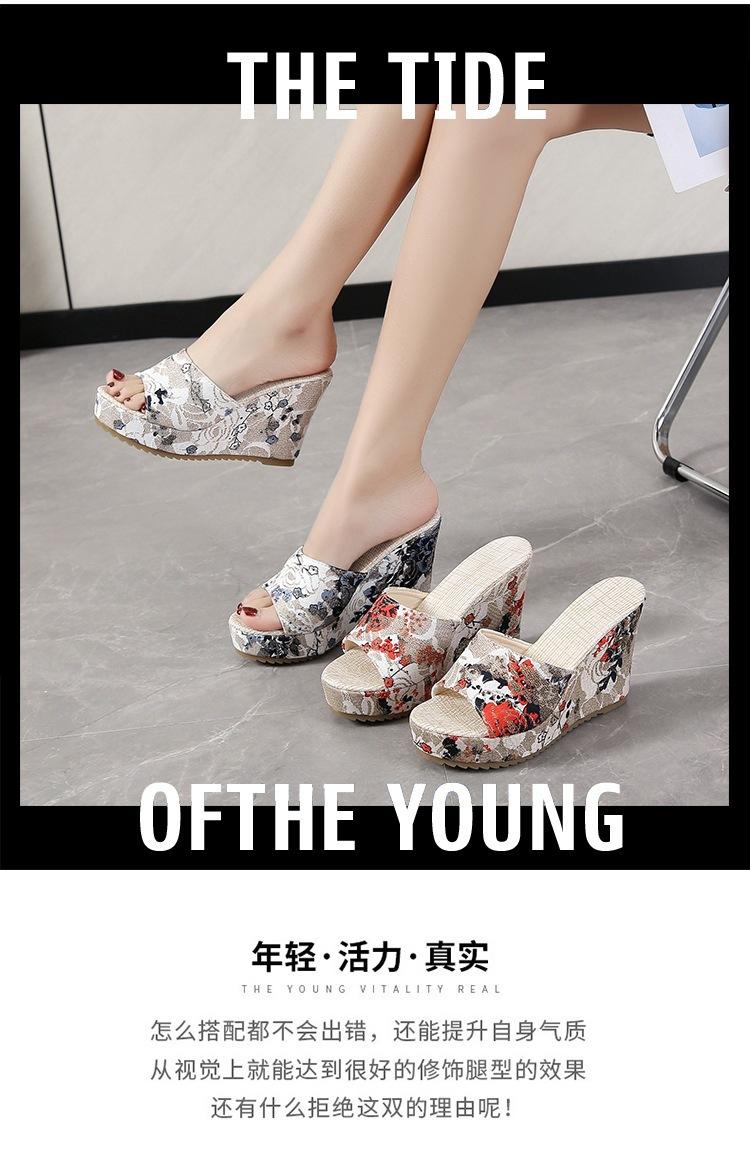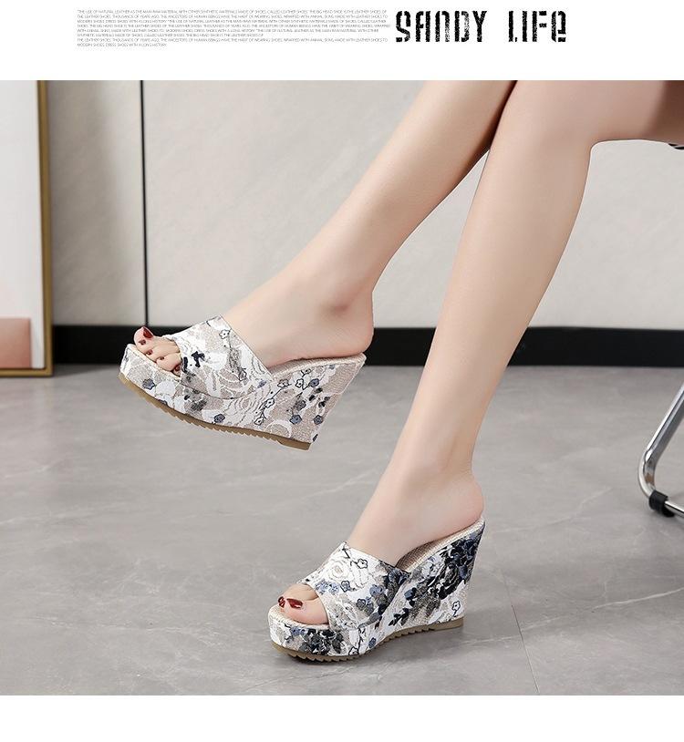 Sandalias de cuña de suela gruesa y tacón alto con flores de verano 2022 europeas y americanas, zapatos de mujer, zapatillas de comercio exterior, zapatos de mujer, zapatillas