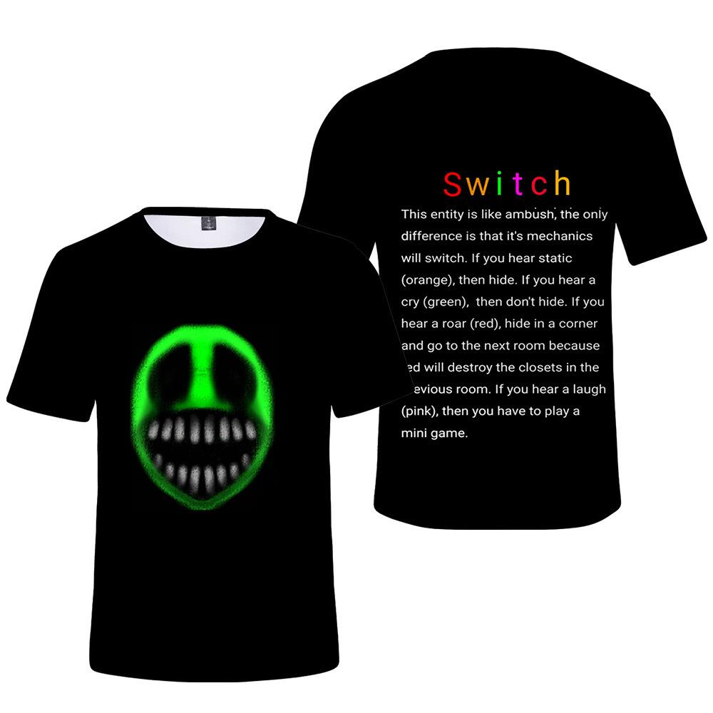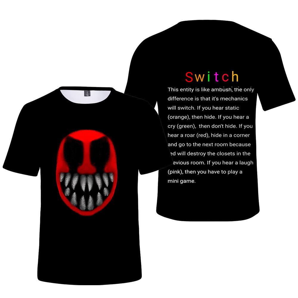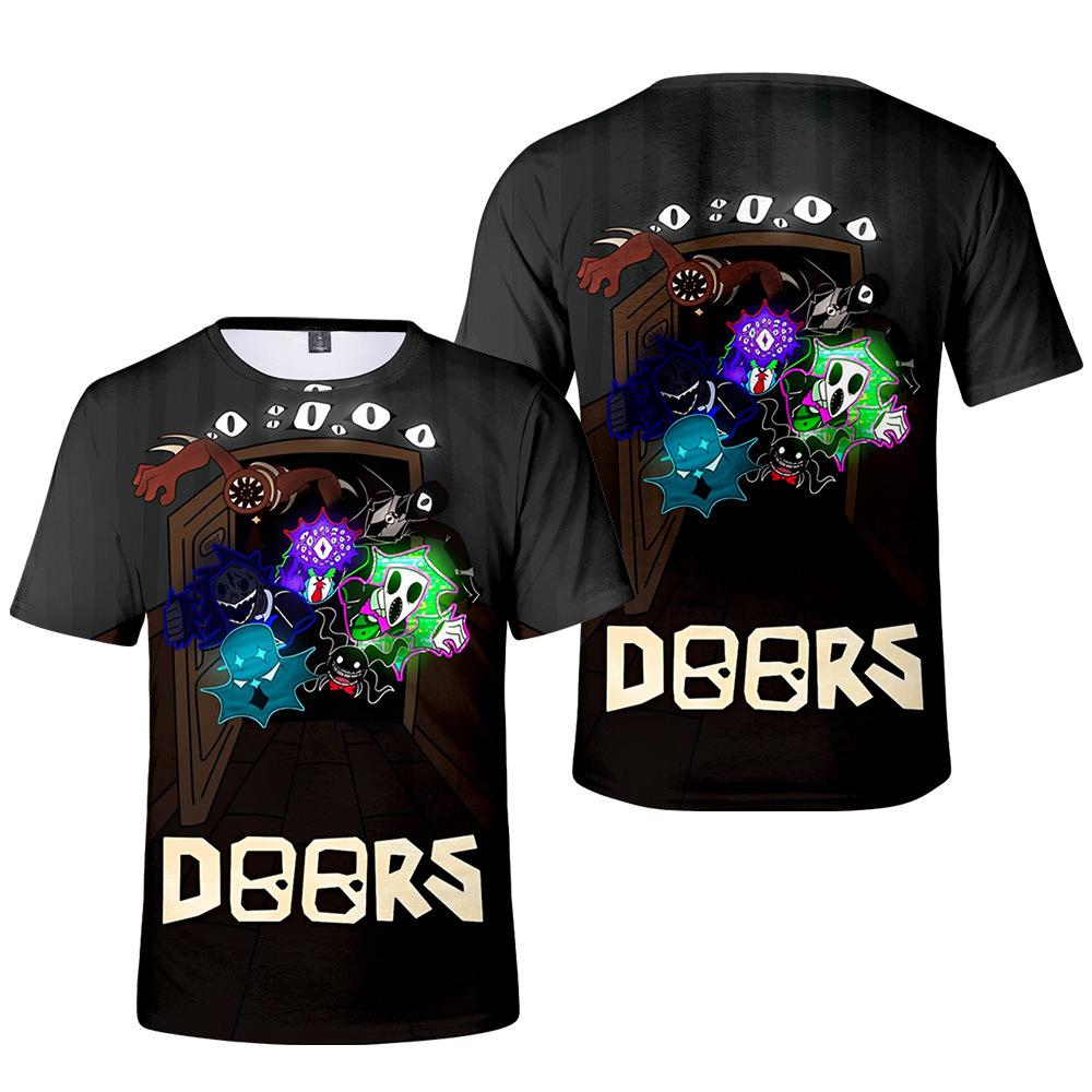 Camiseta de manga corta con estampado digital 3D de puertas transfronterizas de Roblox con figura de puerta de escape