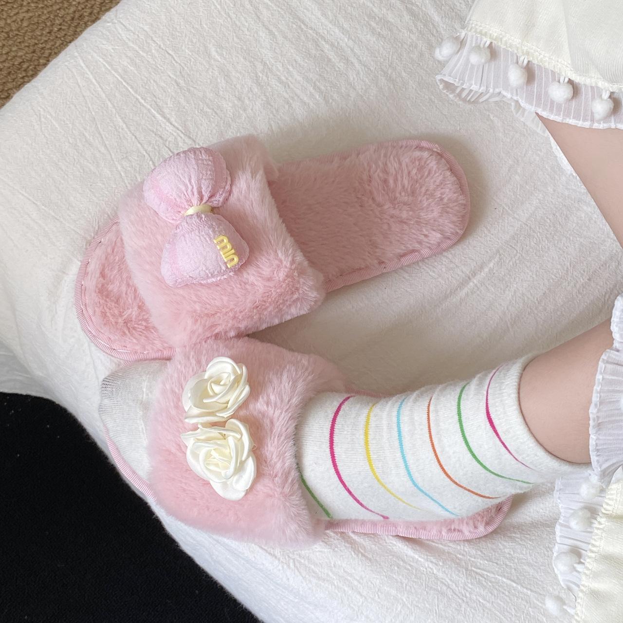 Zapatillas Mao Mao para mujer, otoño e invierno 2024, nuevas zapatillas planas y cálidas para el hogar, lindas zapatillas de algodón de moda para mujer