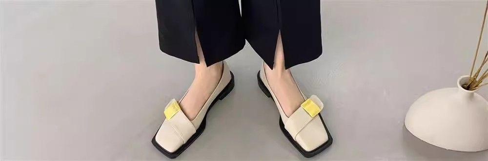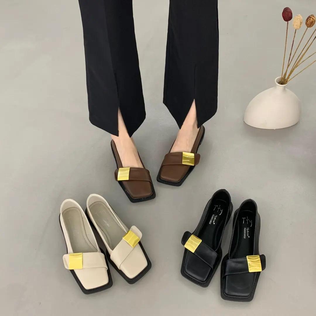 Mocasines de Punta Cuadrada para Mujer 2025 Nuevo Diseño Nicho con Hebilla Metálica Bajos de Tacón Bajo Suela Blanda Zapatos Mary Jane de Moda