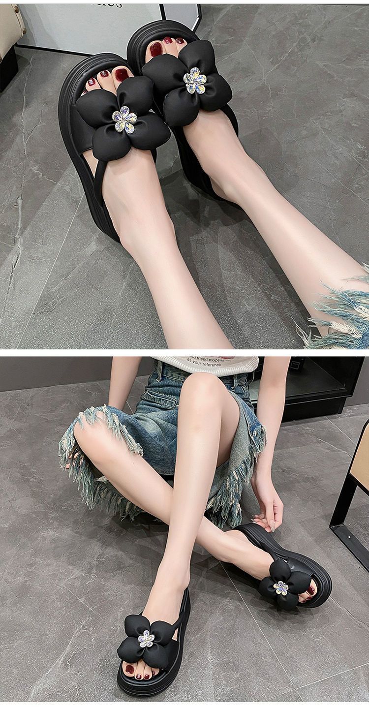 Sandalias y pantuflas elegantes de plataforma para vestir con punta abierta, antideslizantes, de verano 2024, de color liso, para celebridades de Internet.