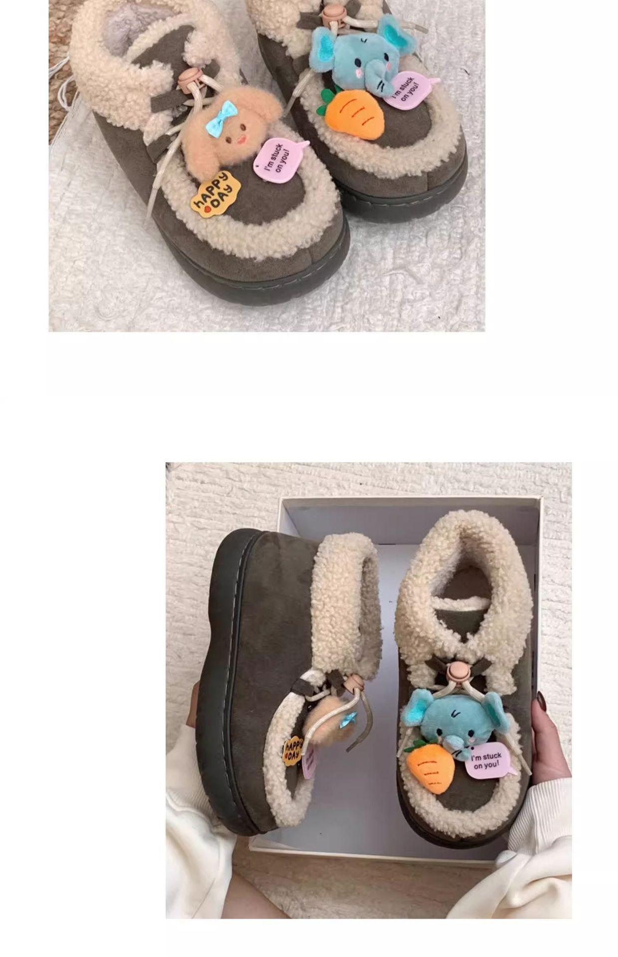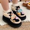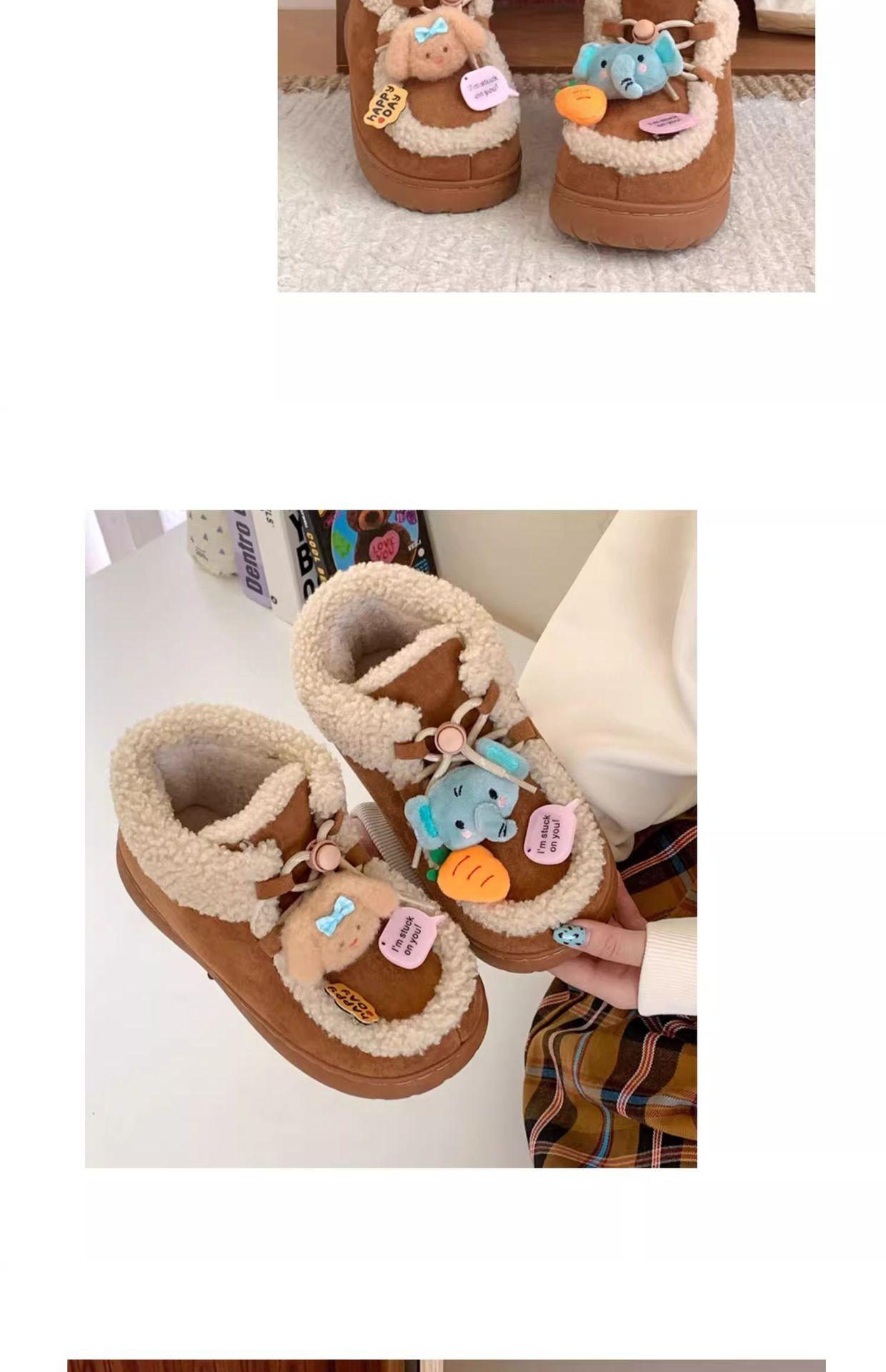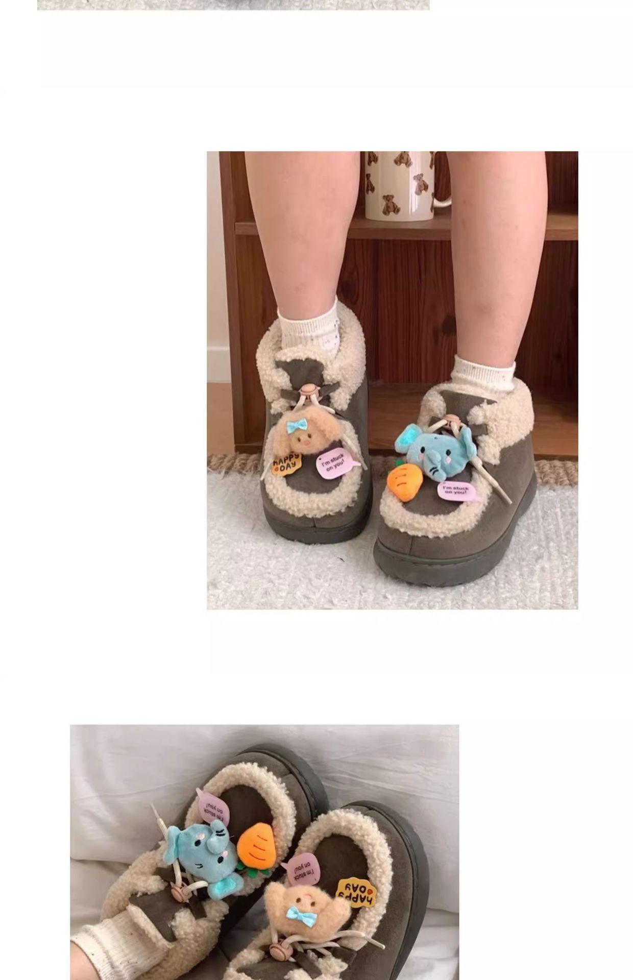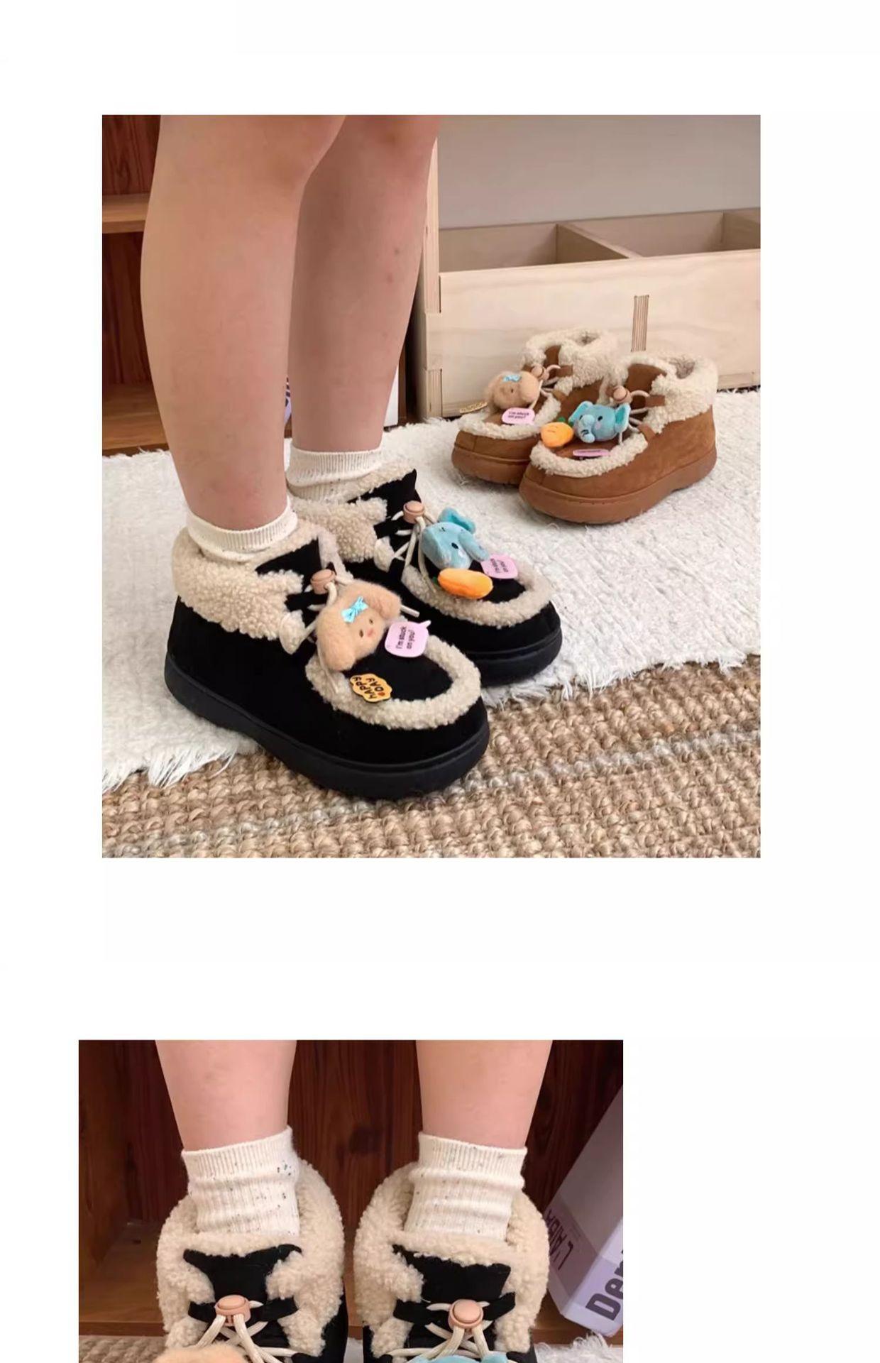 Botas de Nieve Retro con Cordón para Mujer Ins Distintivas Tridimensionales de Animal Pequeño con Combinación de Colores Invierno Noreste Zapatos Acolchados de Algodón