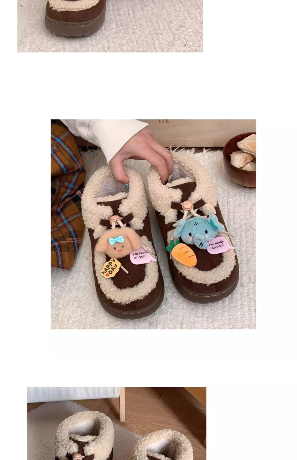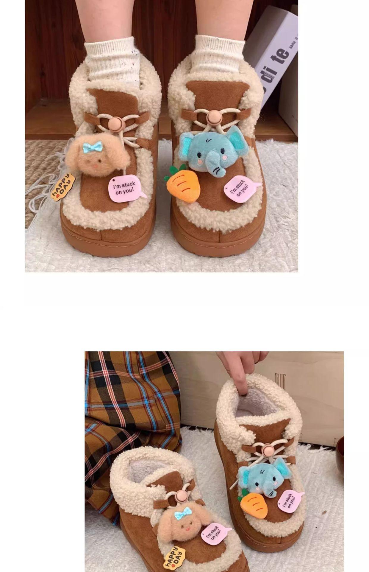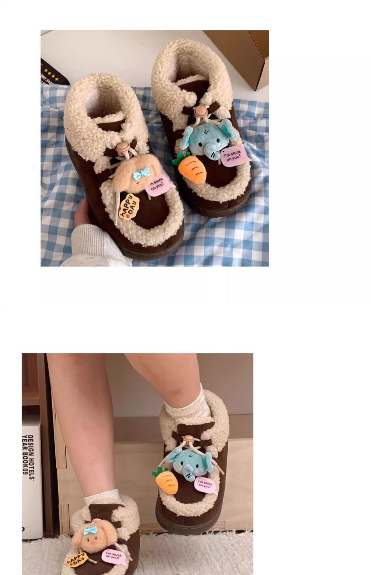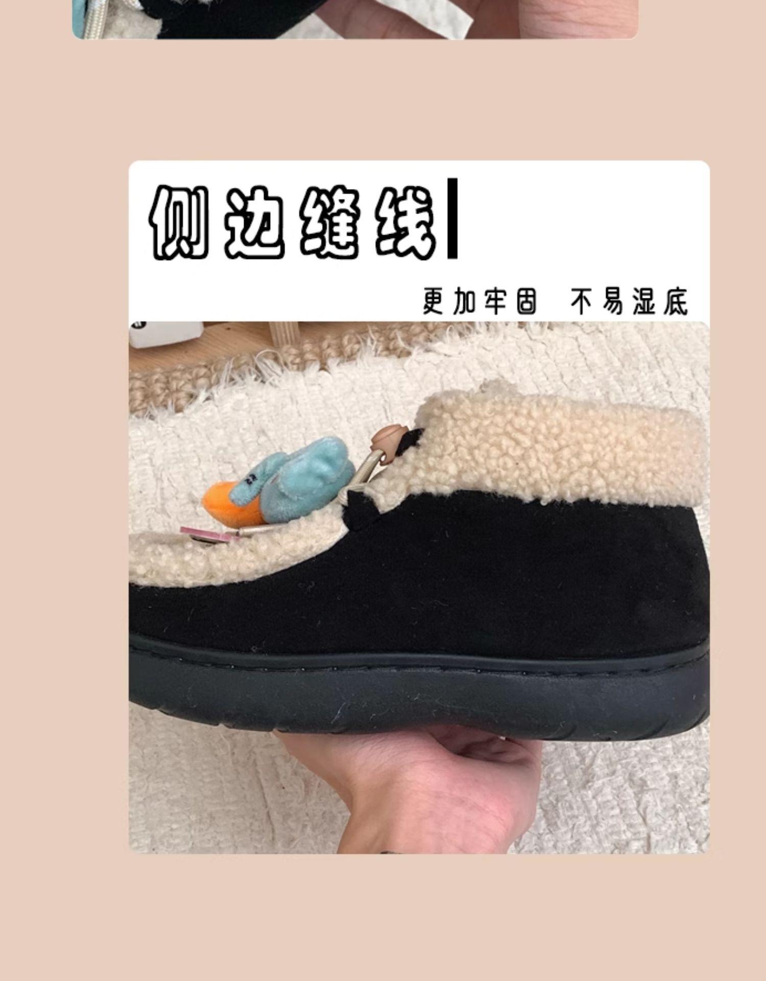 Botas de Nieve Retro con Cordón para Mujer Ins Distintivas Tridimensionales de Animal Pequeño con Combinación de Colores Invierno Noreste Zapatos Acolchados de Algodón