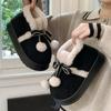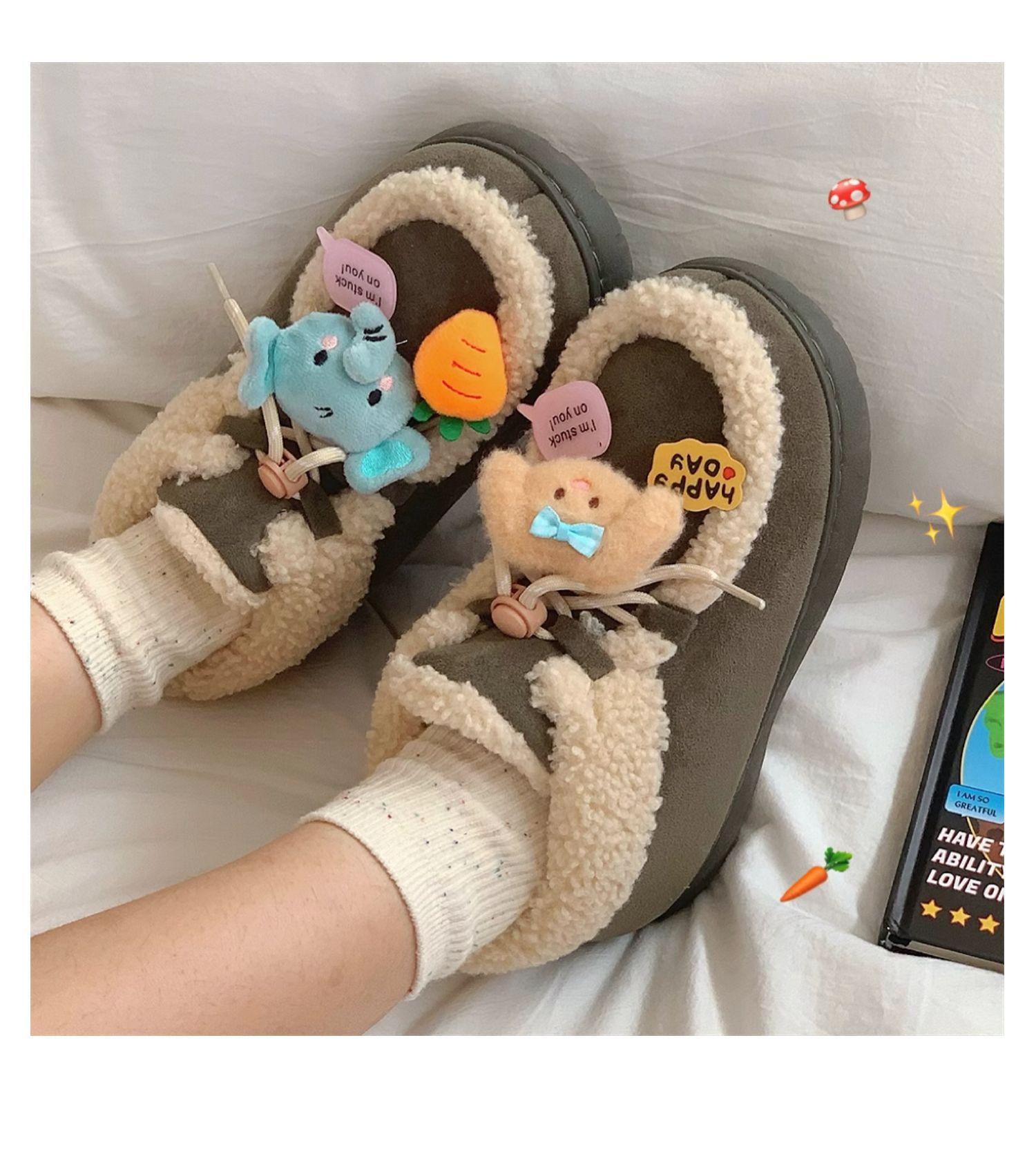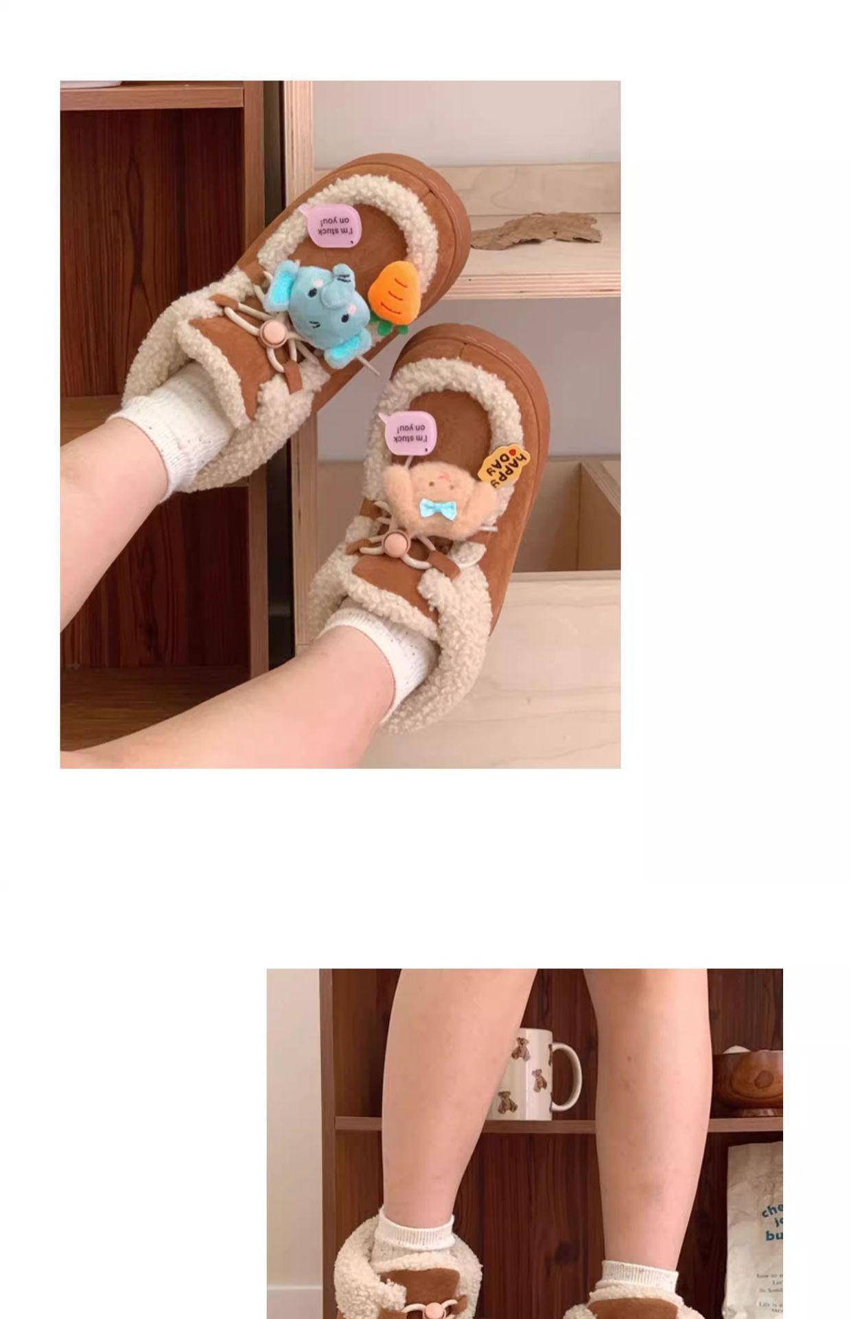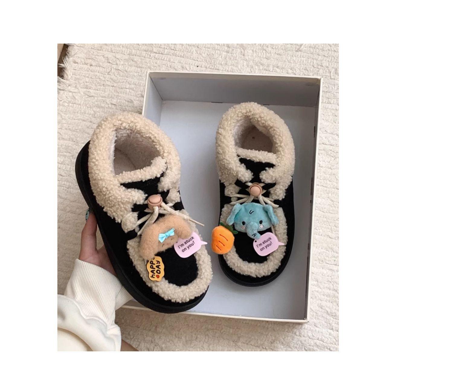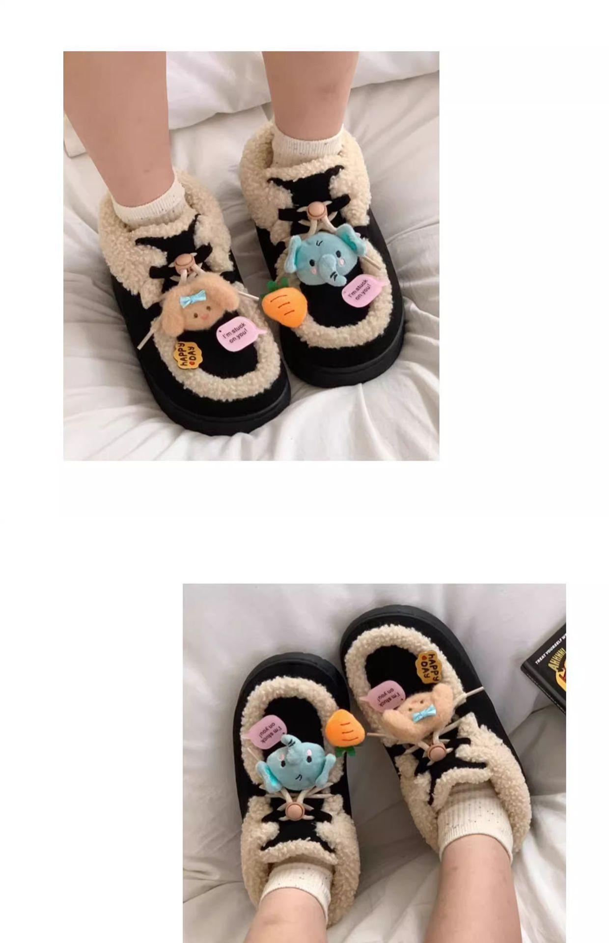 Botas de Nieve Retro con Cordón para Mujer Ins Distintivas Tridimensionales de Animal Pequeño con Combinación de Colores Invierno Noreste Zapatos Acolchados de Algodón