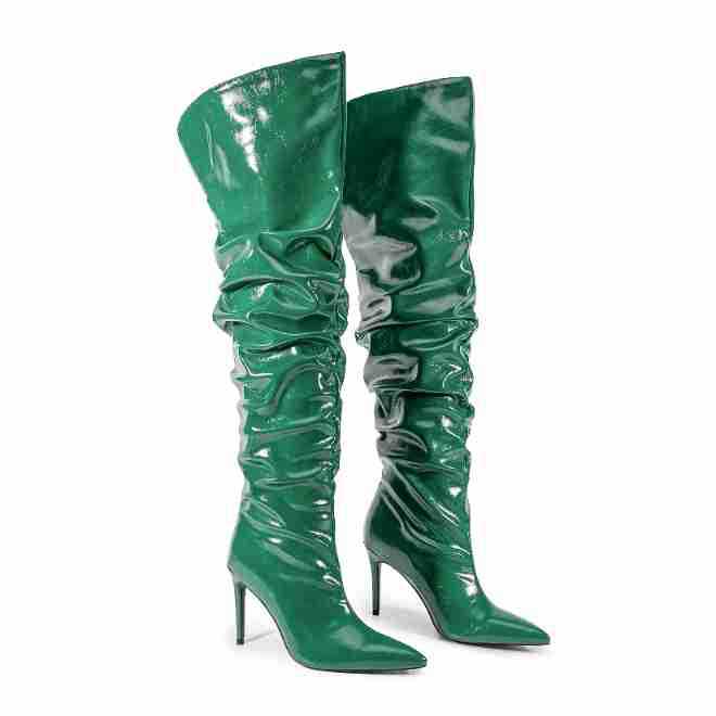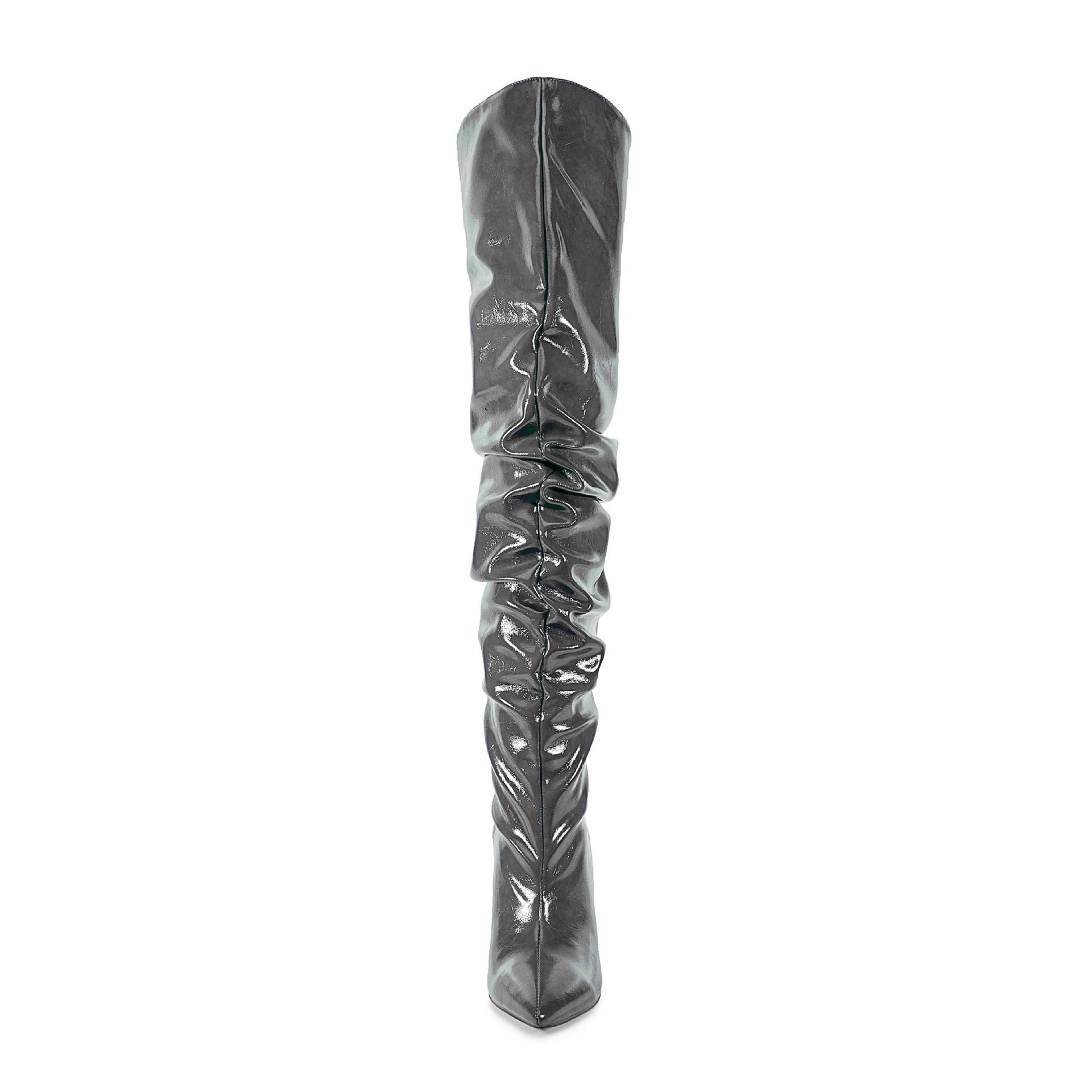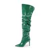 2024 Exportación Europea y Americana Nuevo Estilo Tacones de Aguja de Punta Botas de Montón Plisadas de Tubo Grande Talla Grande Pasarela Botas de Moda por Encima de la Rodilla