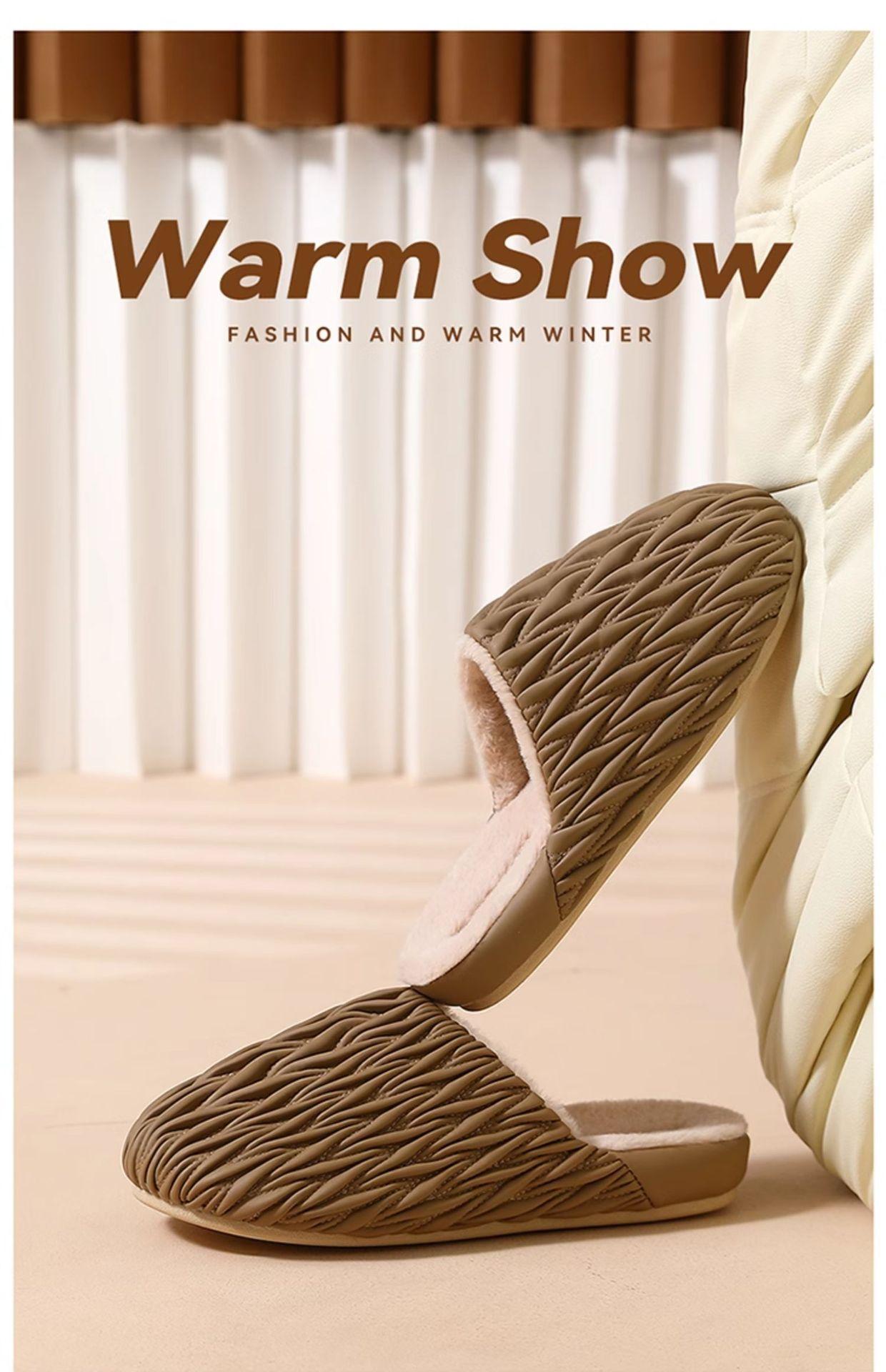 Pantuflas de algodón para otoño e invierno para mujer, de interior, de piel sintética gruesa, impermeables, cálidas y con forro polar, para hombre.
