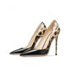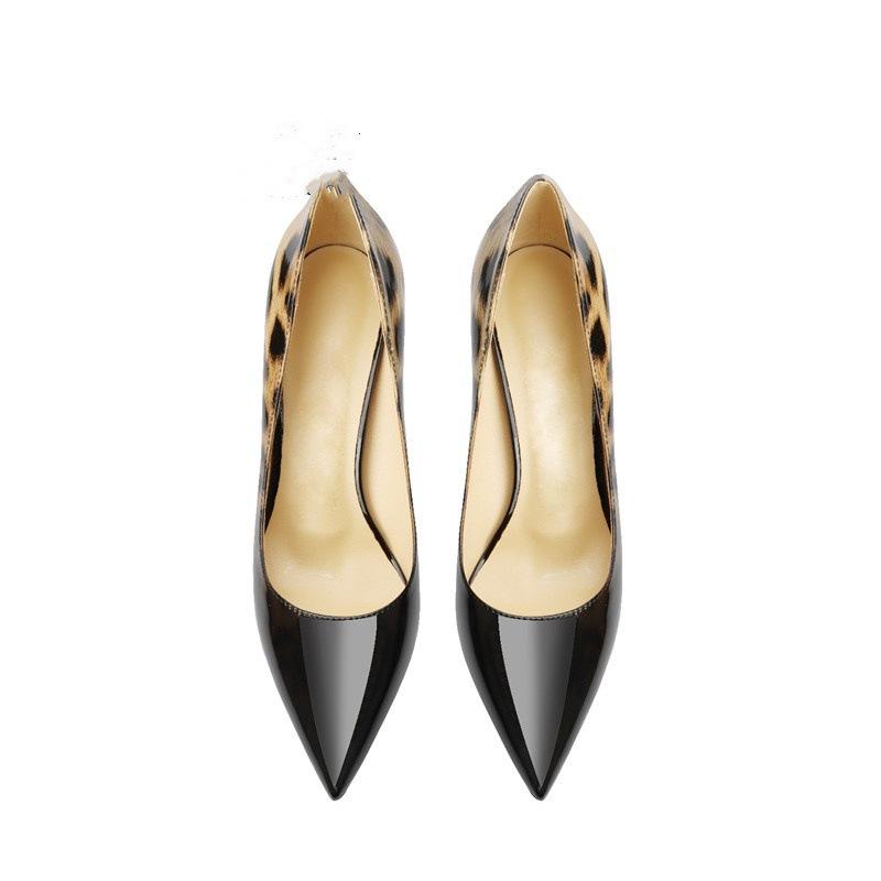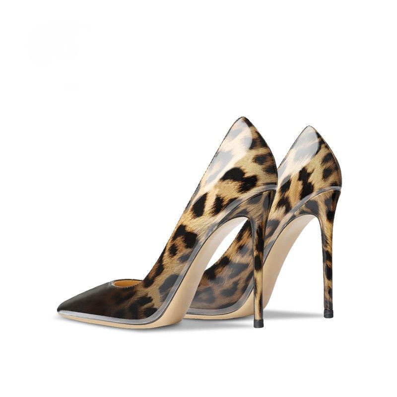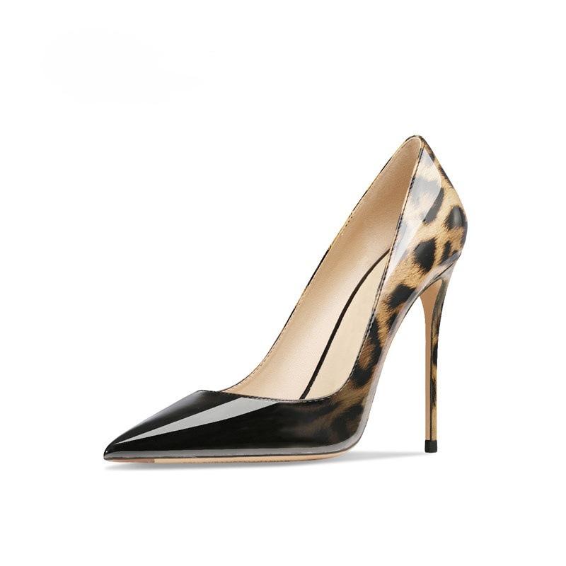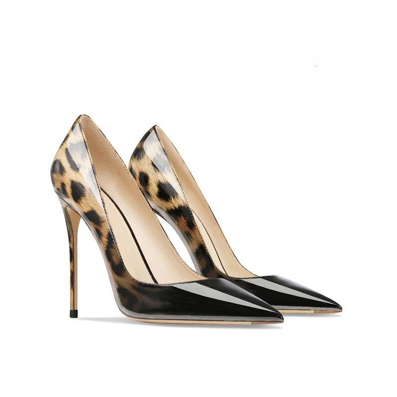 Zapatos de tacón alto de charol degradado con estampado de leopardo, estilo exportación 2024, punta puntiaguda, boca baja, antideslizantes, sexys, estilo europeo y americano, para mujer.