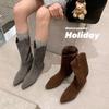 Botas clásicas de 7 CM con tacón grueso de piel y punta redonda para mujer, botas hasta la rodilla de otoño e invierno, botas finas elásticas, botas finas