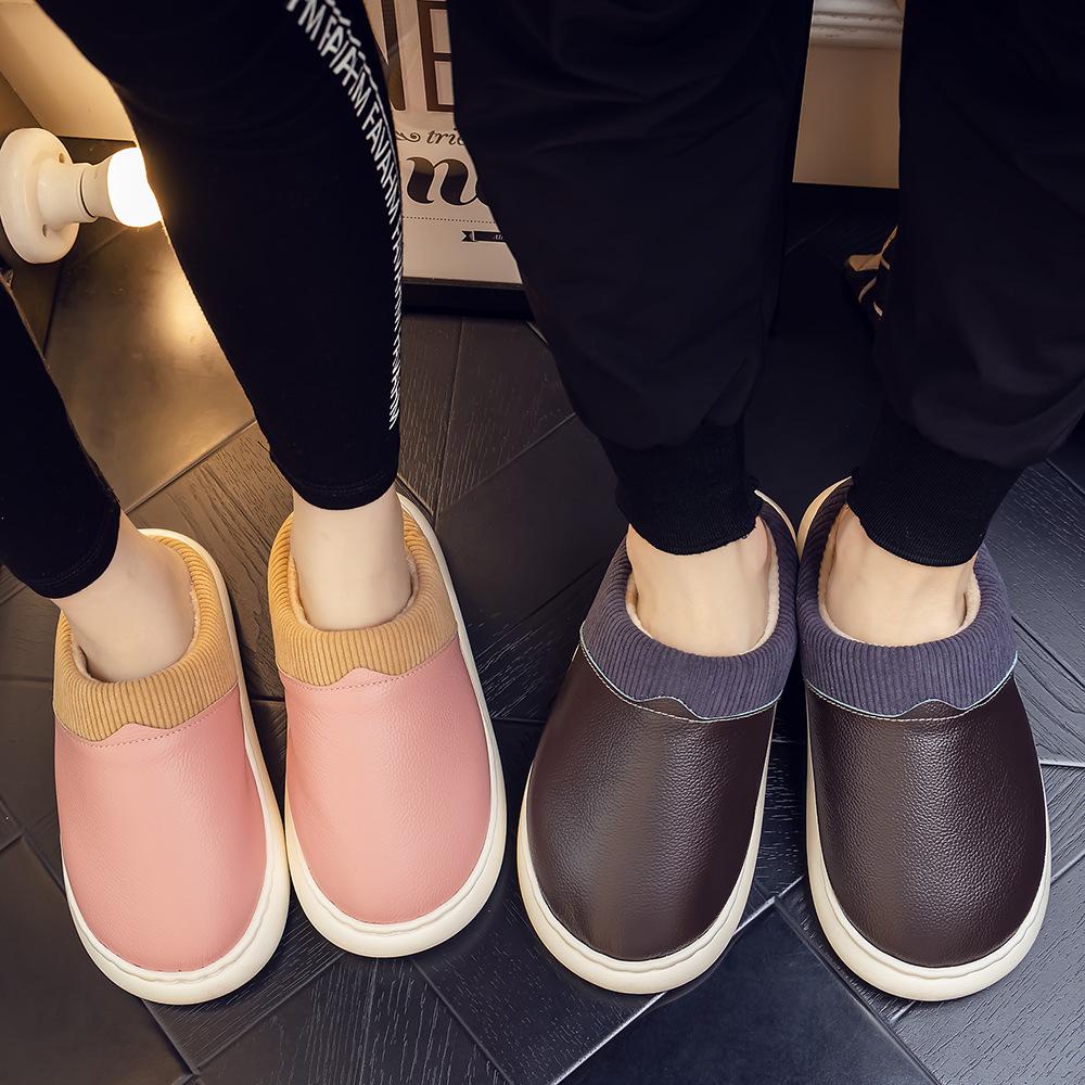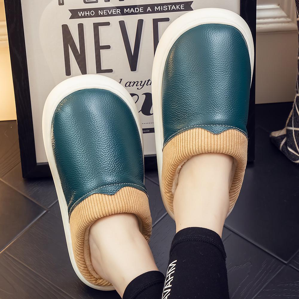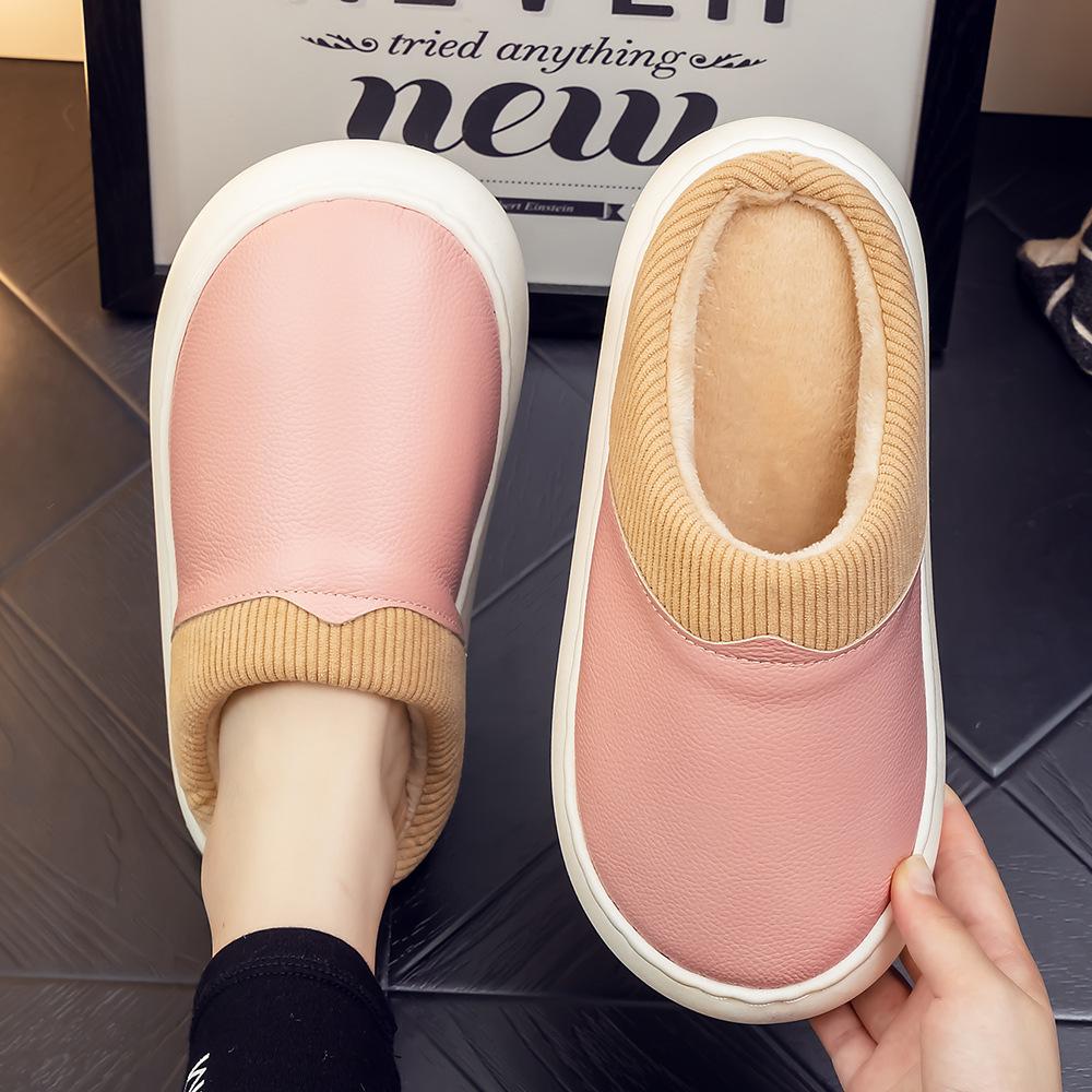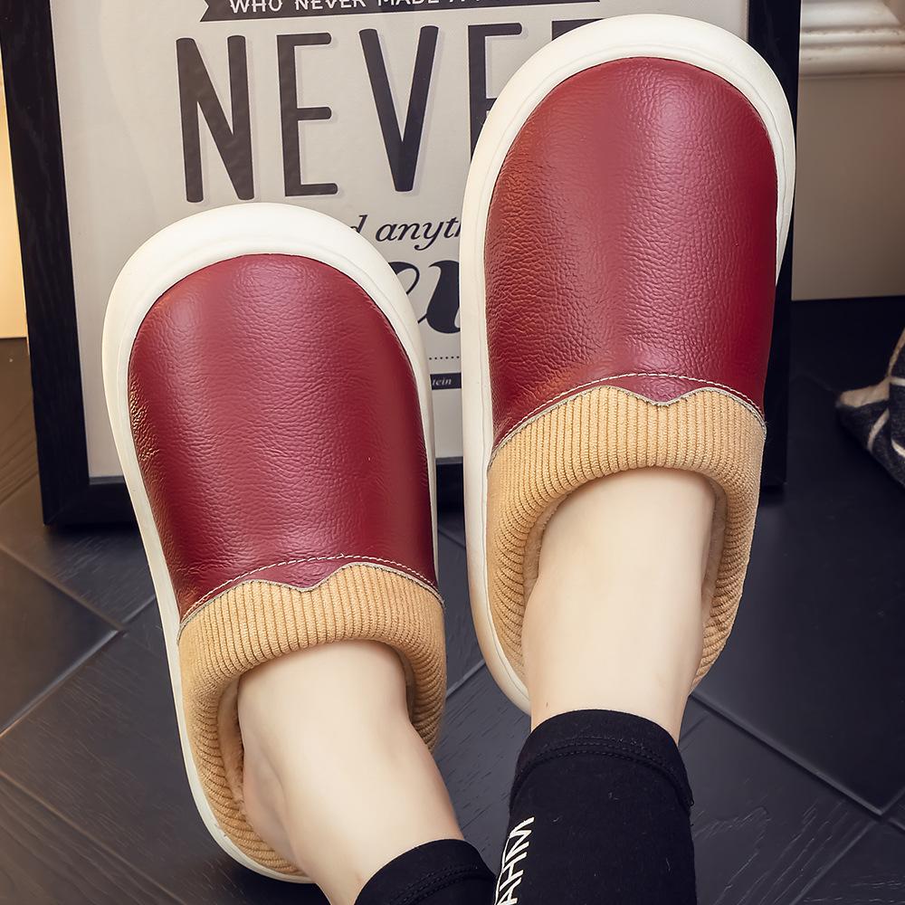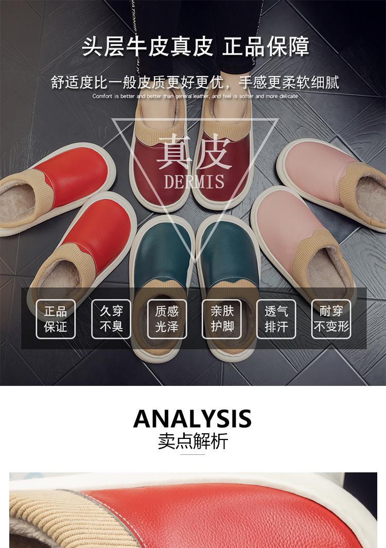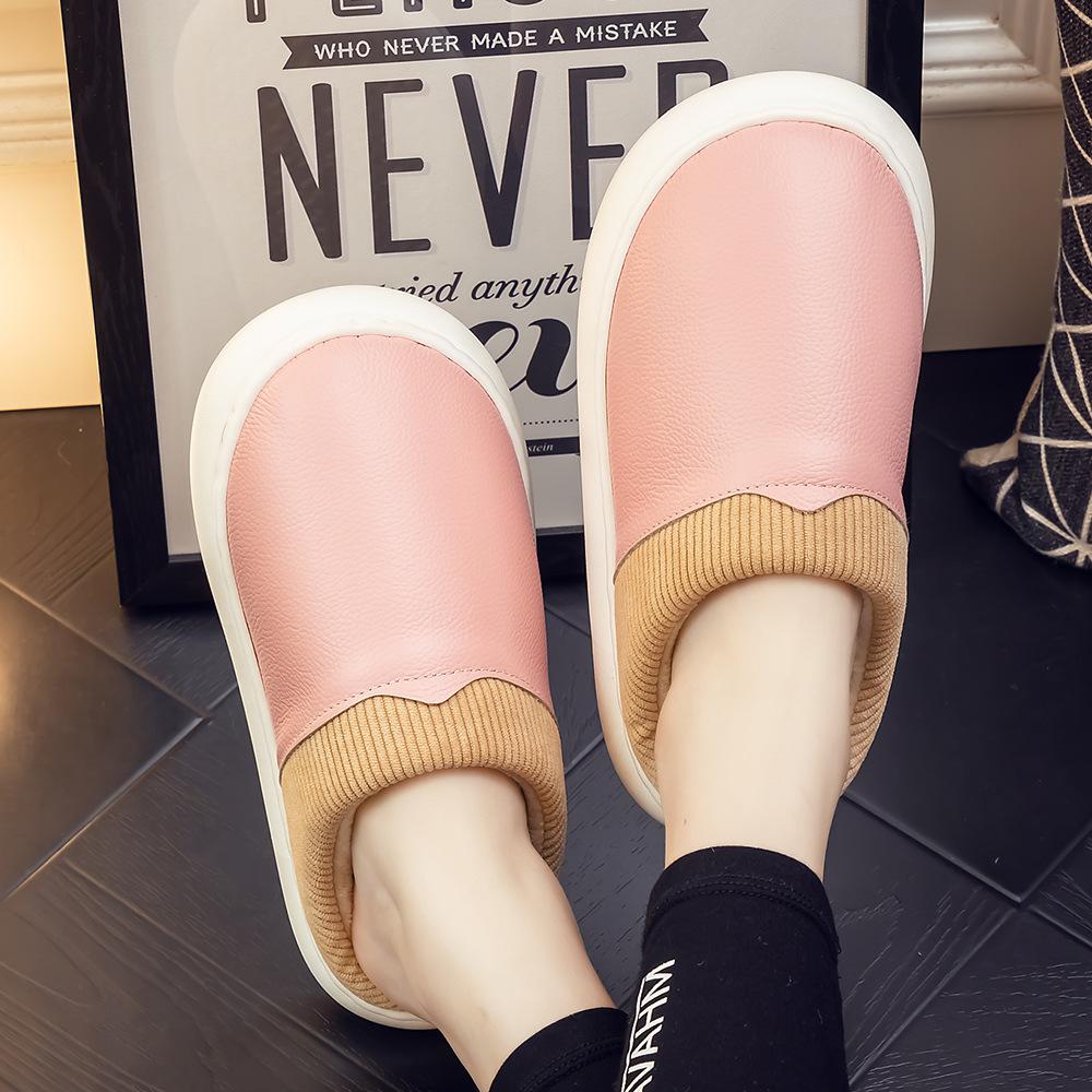 Pantuflas de Cuero Genuino para Hombre y Mujer Pareja Invierno Interior Hogar Antideslizantes Piel de Vaca Pura Hogar Cálidas Impermeables Suela Gruesa Algodón