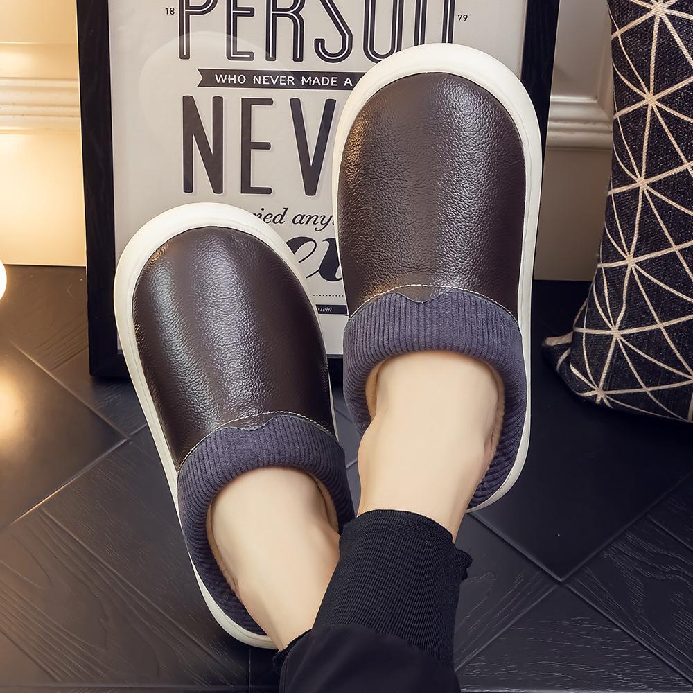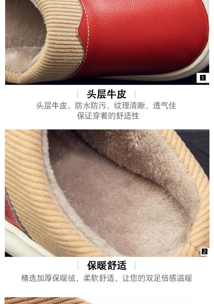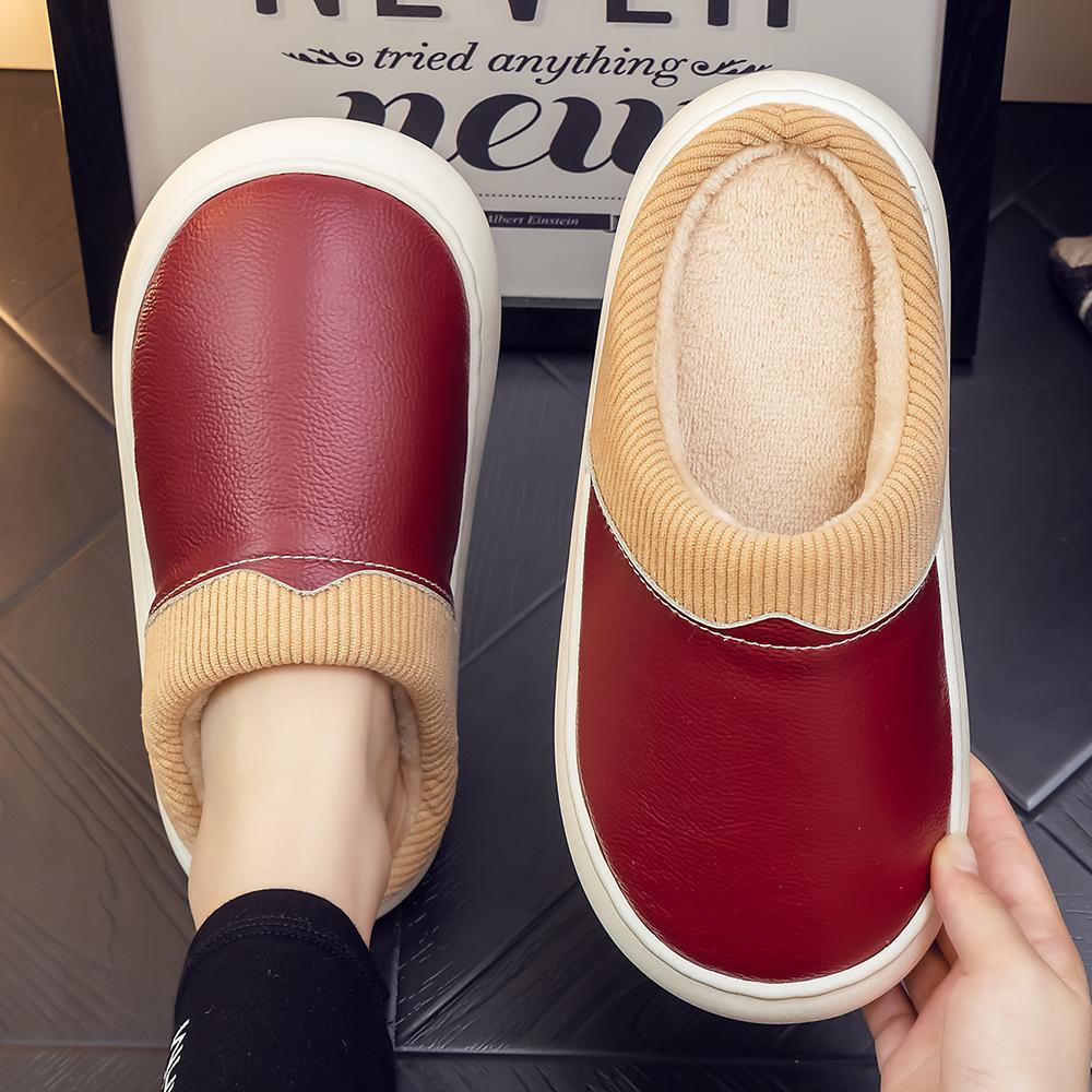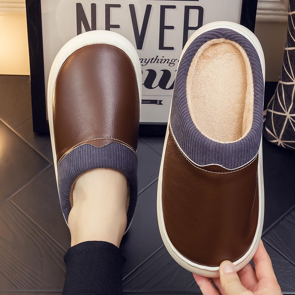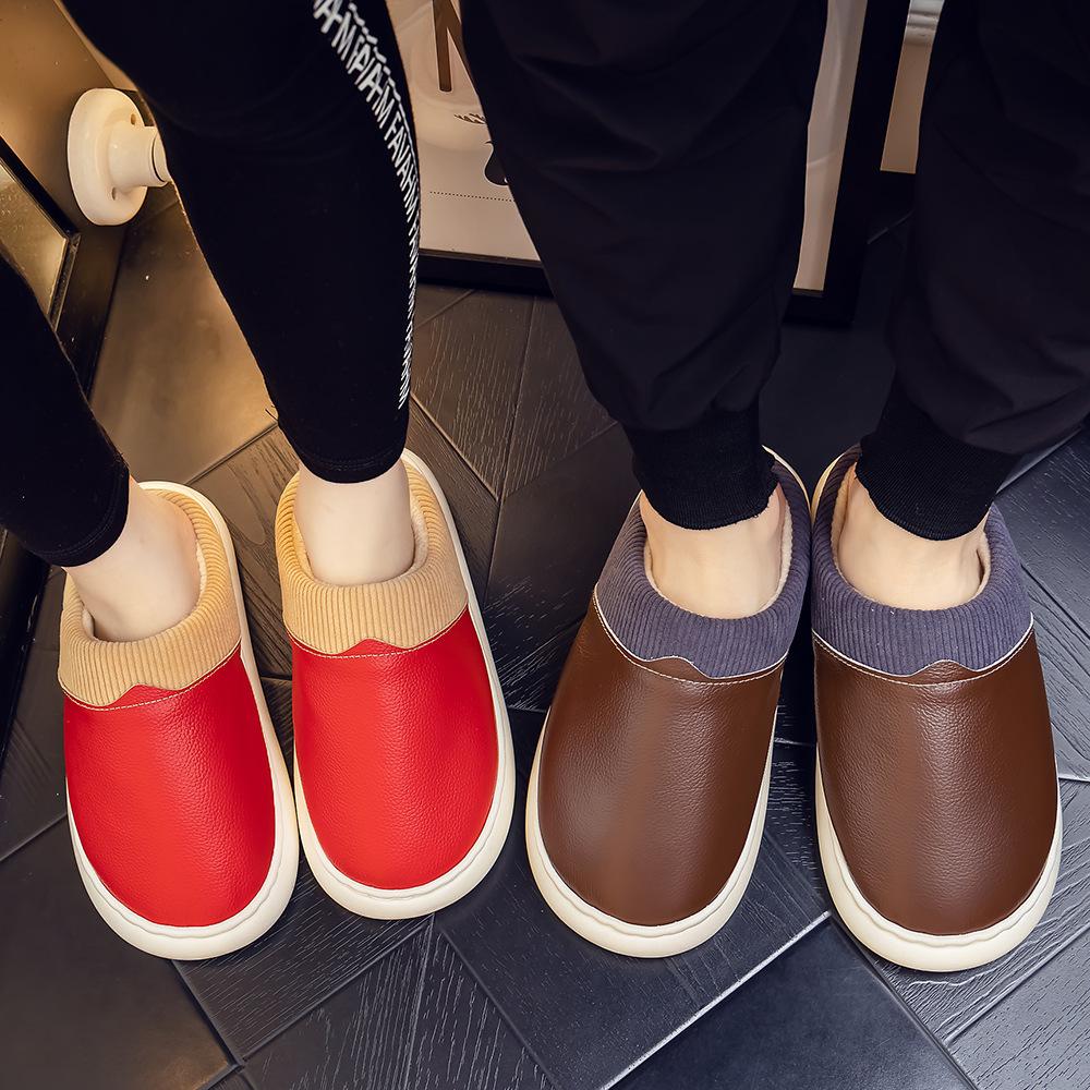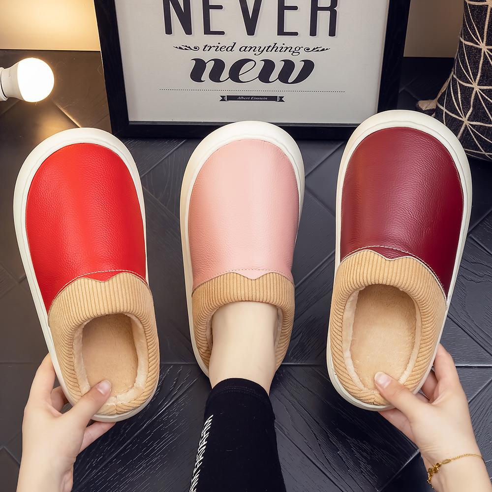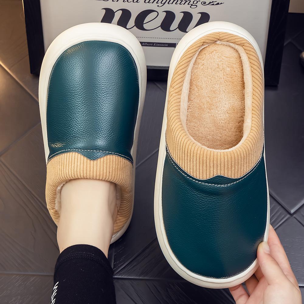 Pantuflas de Cuero Genuino para Hombre y Mujer Pareja Invierno Interior Hogar Antideslizantes Piel de Vaca Pura Hogar Cálidas Impermeables Suela Gruesa Algodón