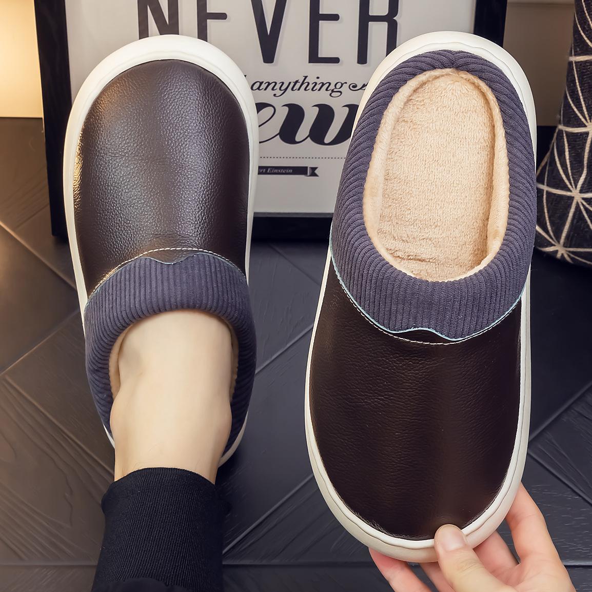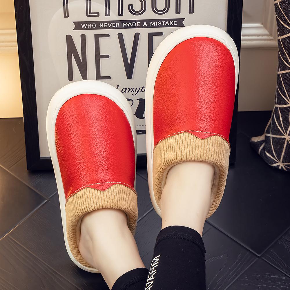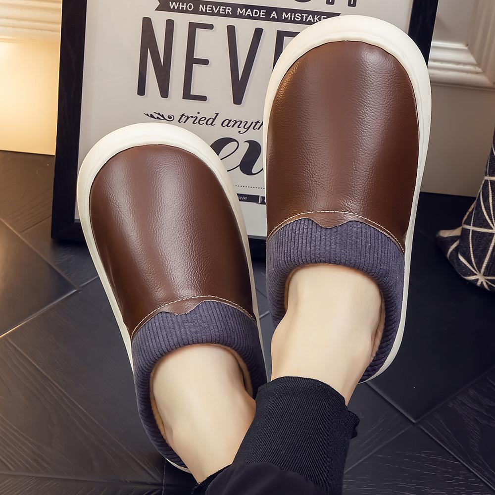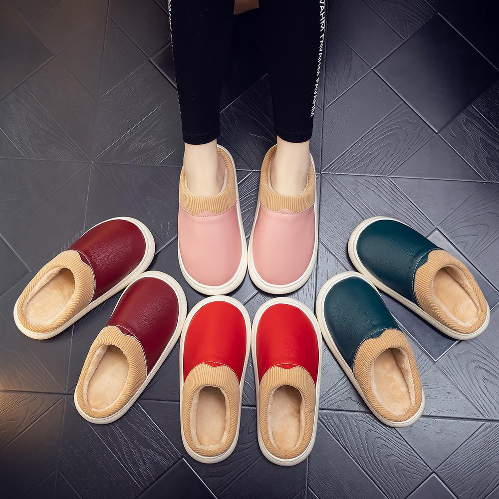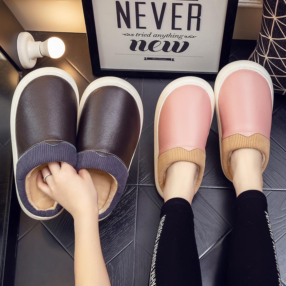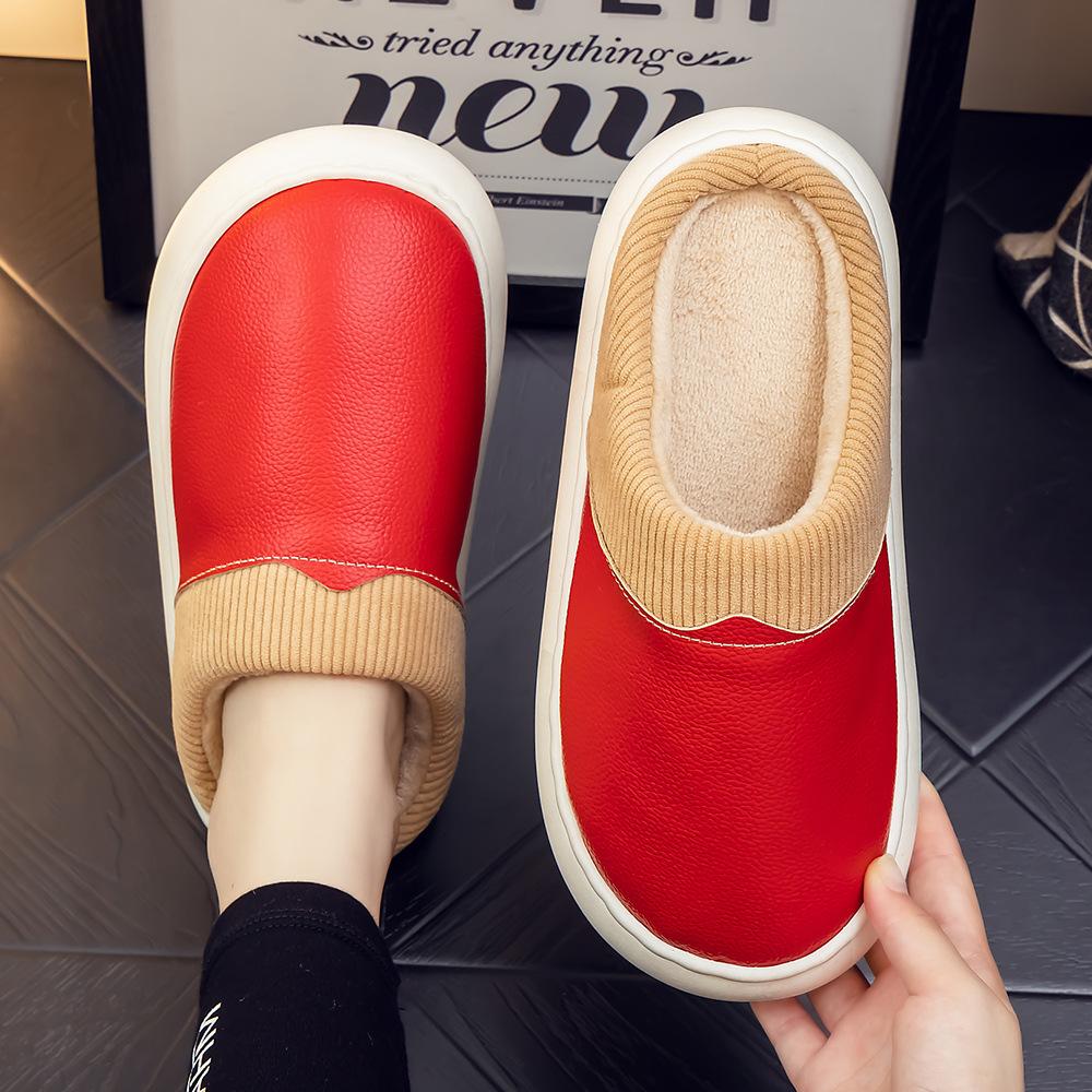 Pantuflas de Cuero Genuino para Hombre y Mujer Pareja Invierno Interior Hogar Antideslizantes Piel de Vaca Pura Hogar Cálidas Impermeables Suela Gruesa Algodón