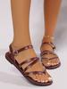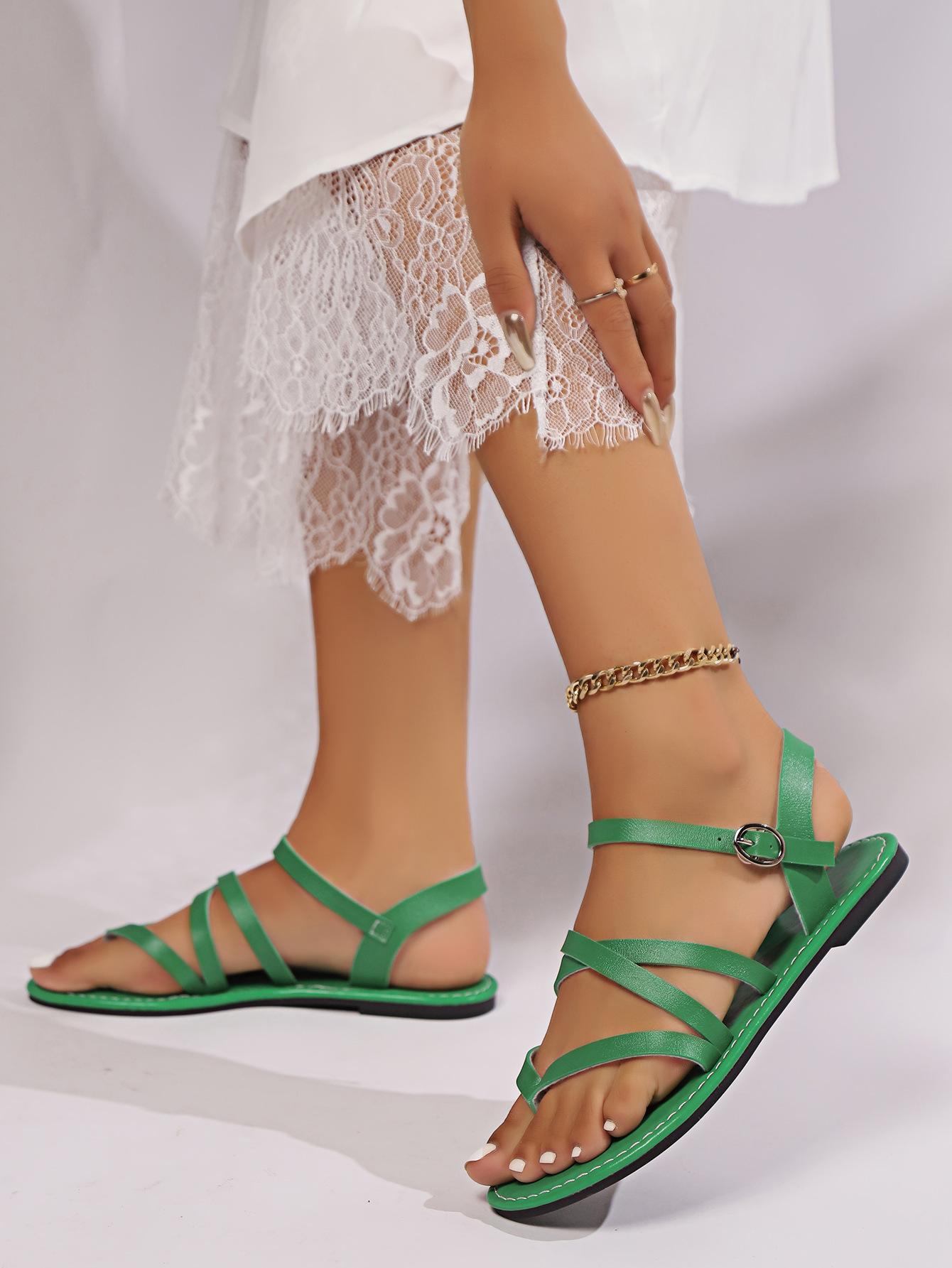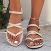 Sandalias de mujer de comercio exterior de talla grande 2024, nuevo estilo, estilo retro, con hebilla, planas y tiras cruzadas, para playa