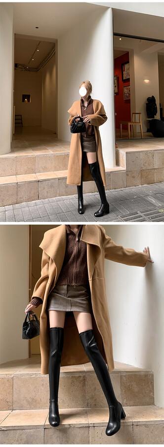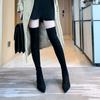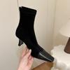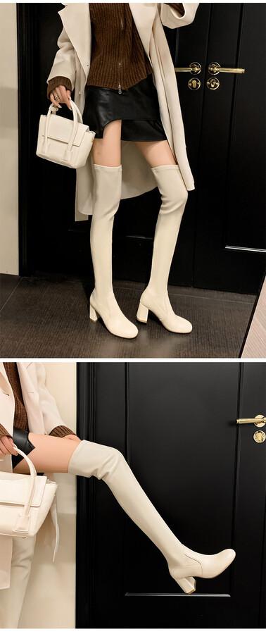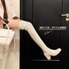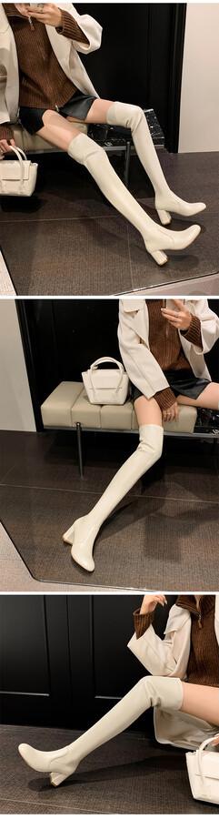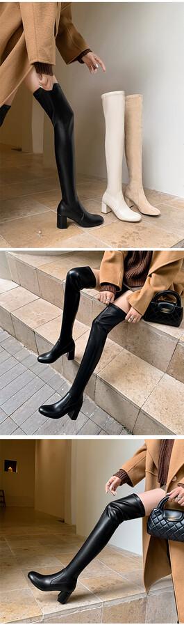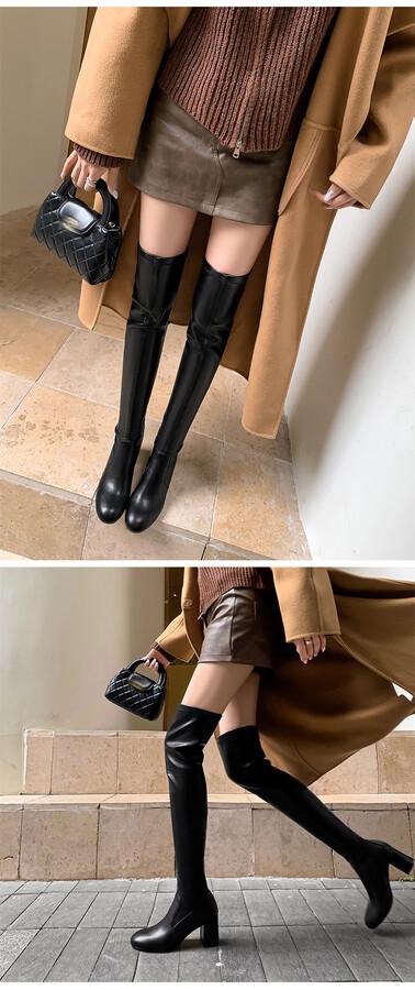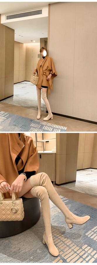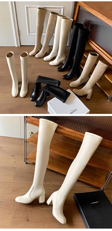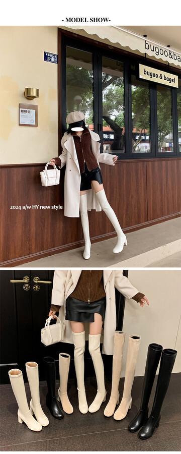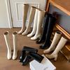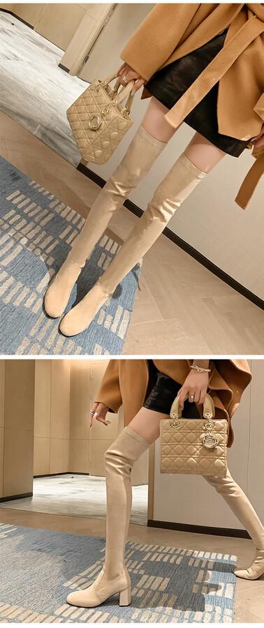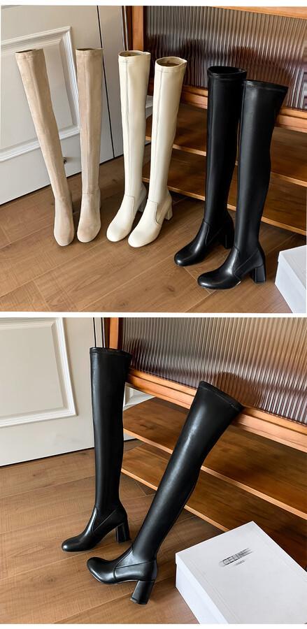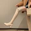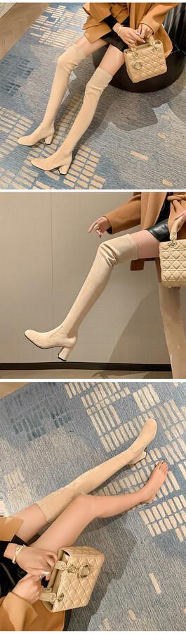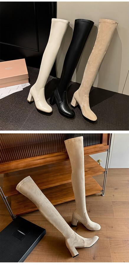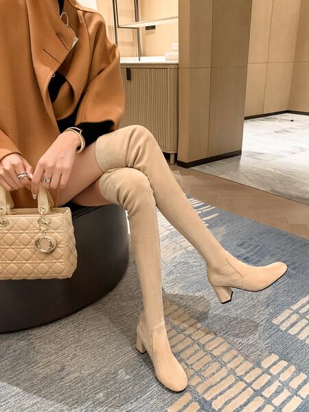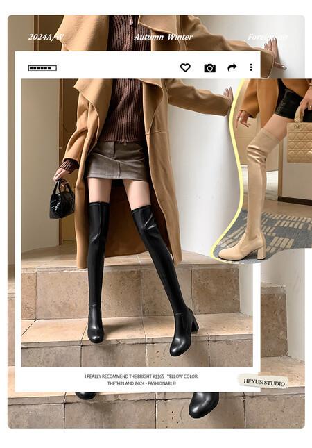 Botas de tacón alto y grueso de gamuza de 7 cm con punta redonda, nuevas botas hasta la rodilla de otoño e invierno 2024, botas finas elásticas para mujer