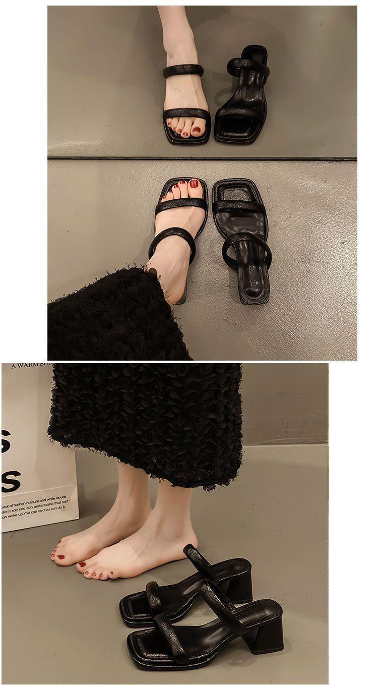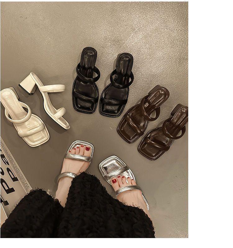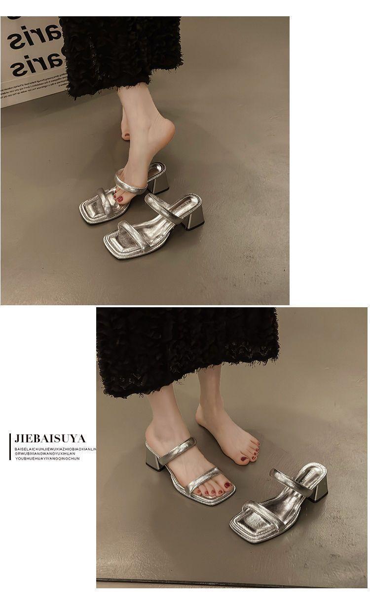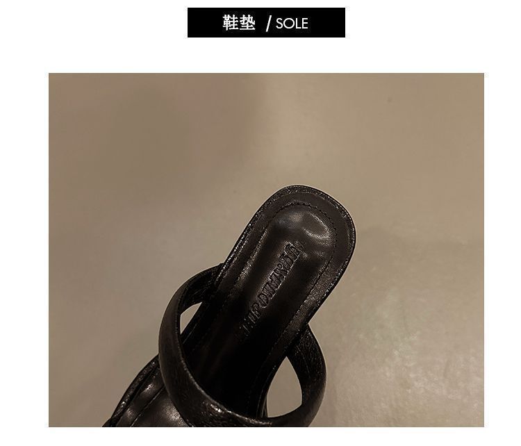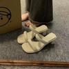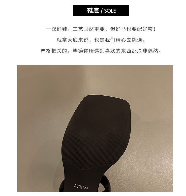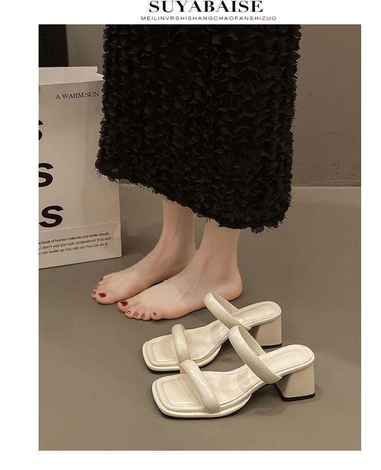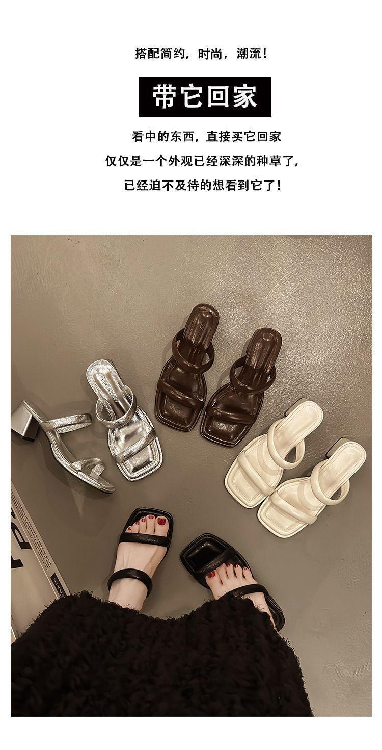 Pantuflas de falda para mujer, ropa exterior de verano 2024, nuevo estilo occidental de moda, tacones altos de punta cuadrada y tacón grueso.