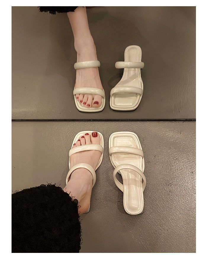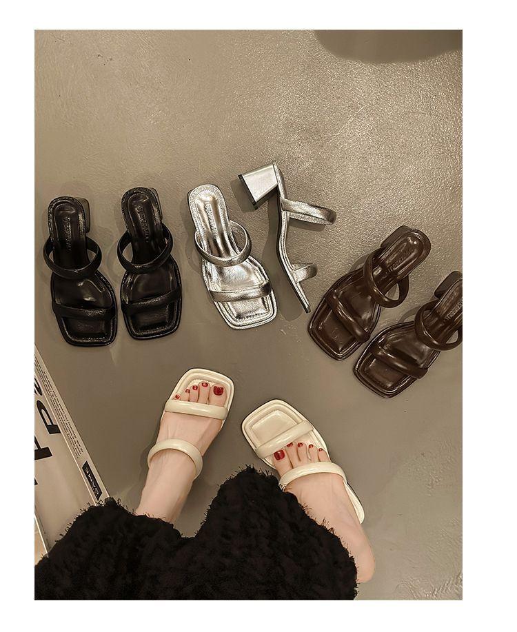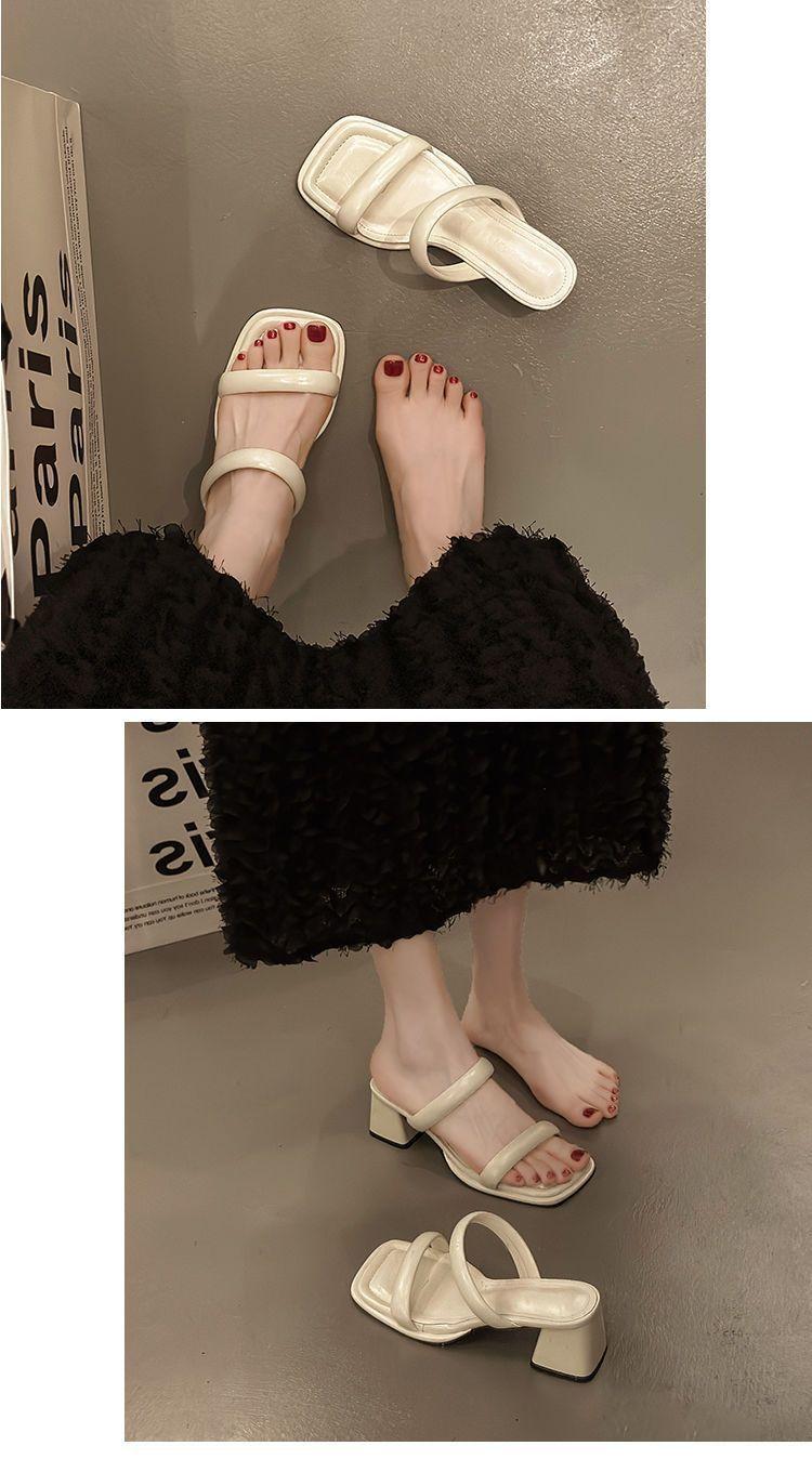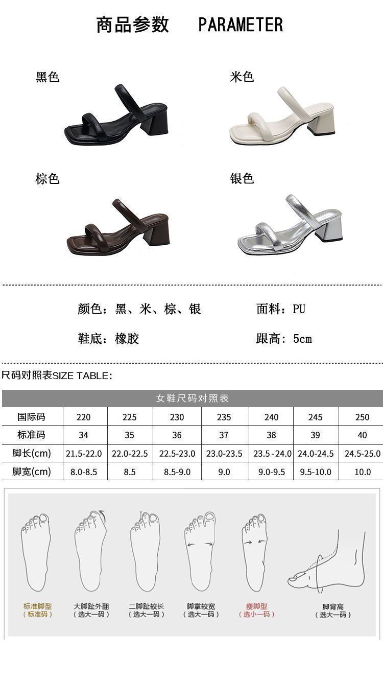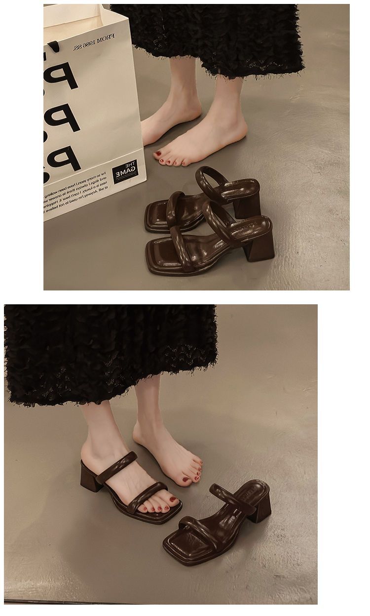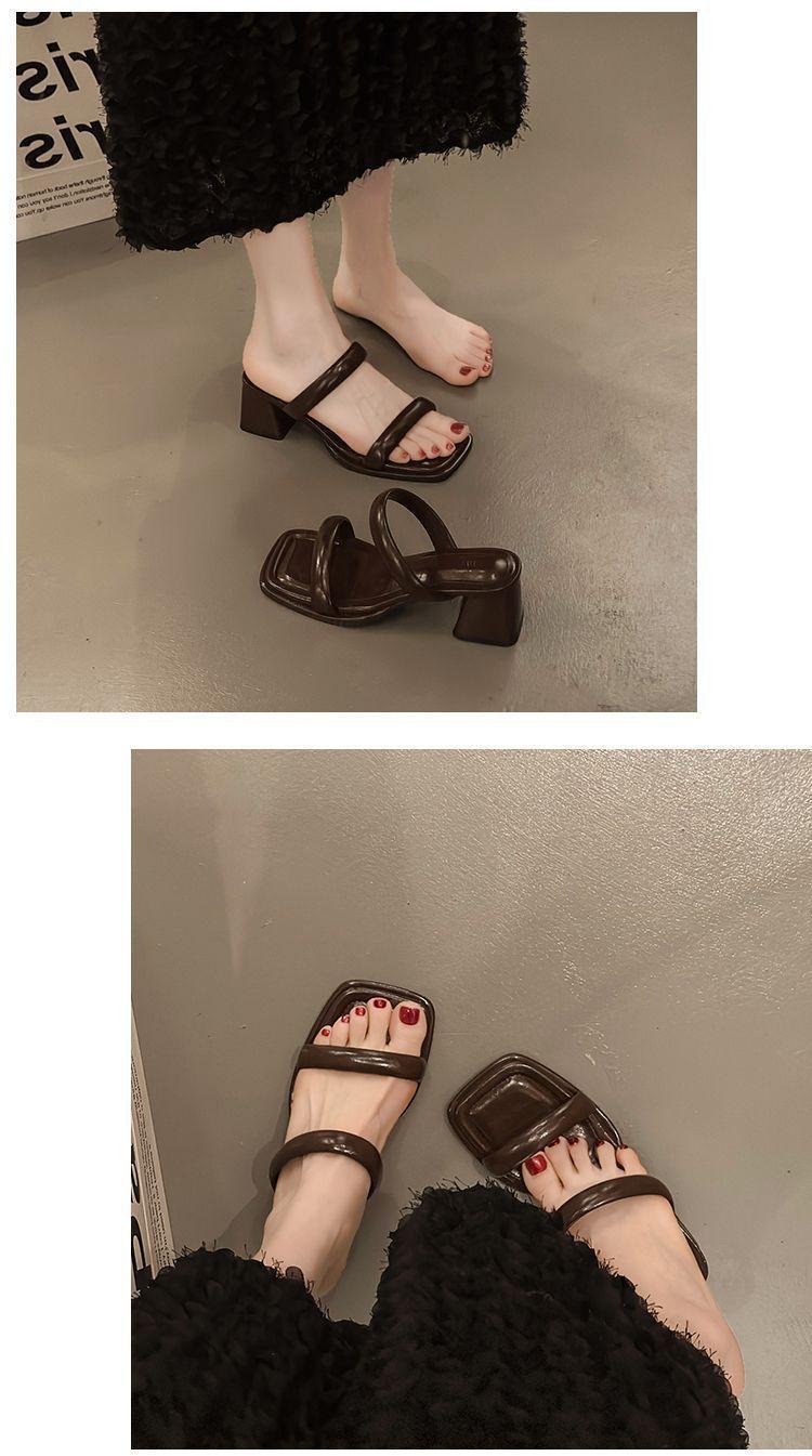 Pantuflas de falda para mujer, ropa exterior de verano 2024, nuevo estilo occidental de moda, tacones altos de punta cuadrada y tacón grueso.