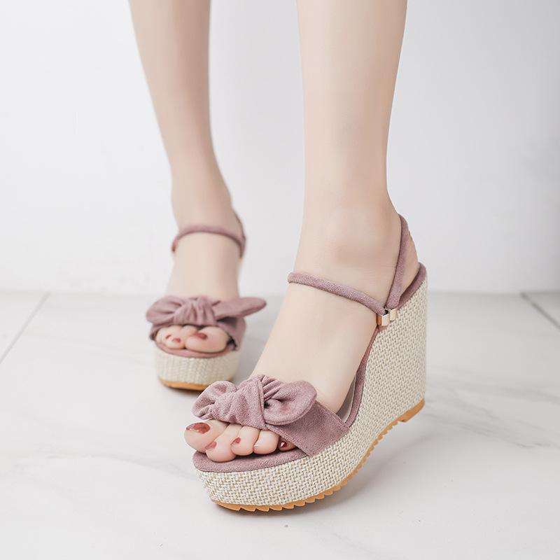 2020 primavera y verano estilo coreano nuevo tacón alto sandalias de mujer cuña plataforma plataforma zapatos de mujer punta abierta estilo comercio exterior