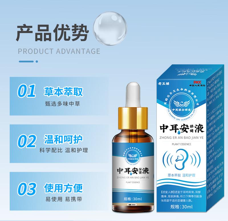 Líquido para el Cuidado de la Salud Laowupu Zhong'Er'An (No para Tinnitus, Picazón detrás de la oreja, Dolor o Pérdida de audición)