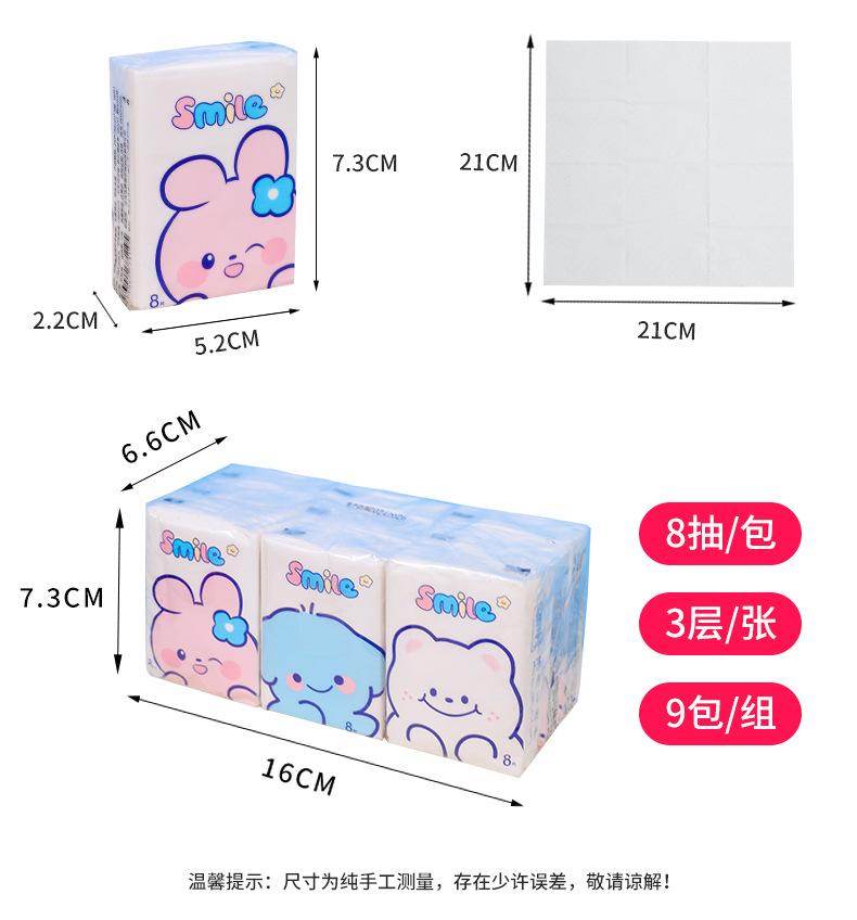 8 pieces of 3-layer nezha white paper handkerchief paper 9-pack