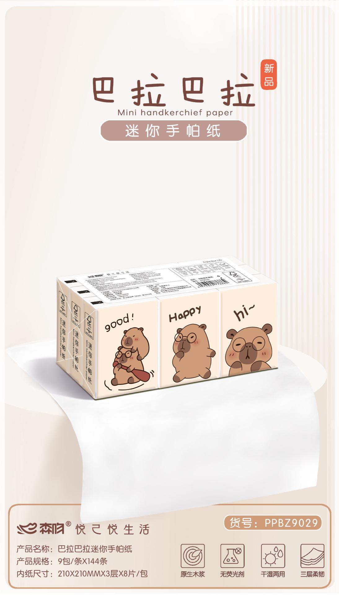 Balabala white paper handkerchief paper 9 pack, Cute panda white paper handkerchief paper 9 pack, 8 pieces of ...
