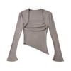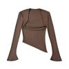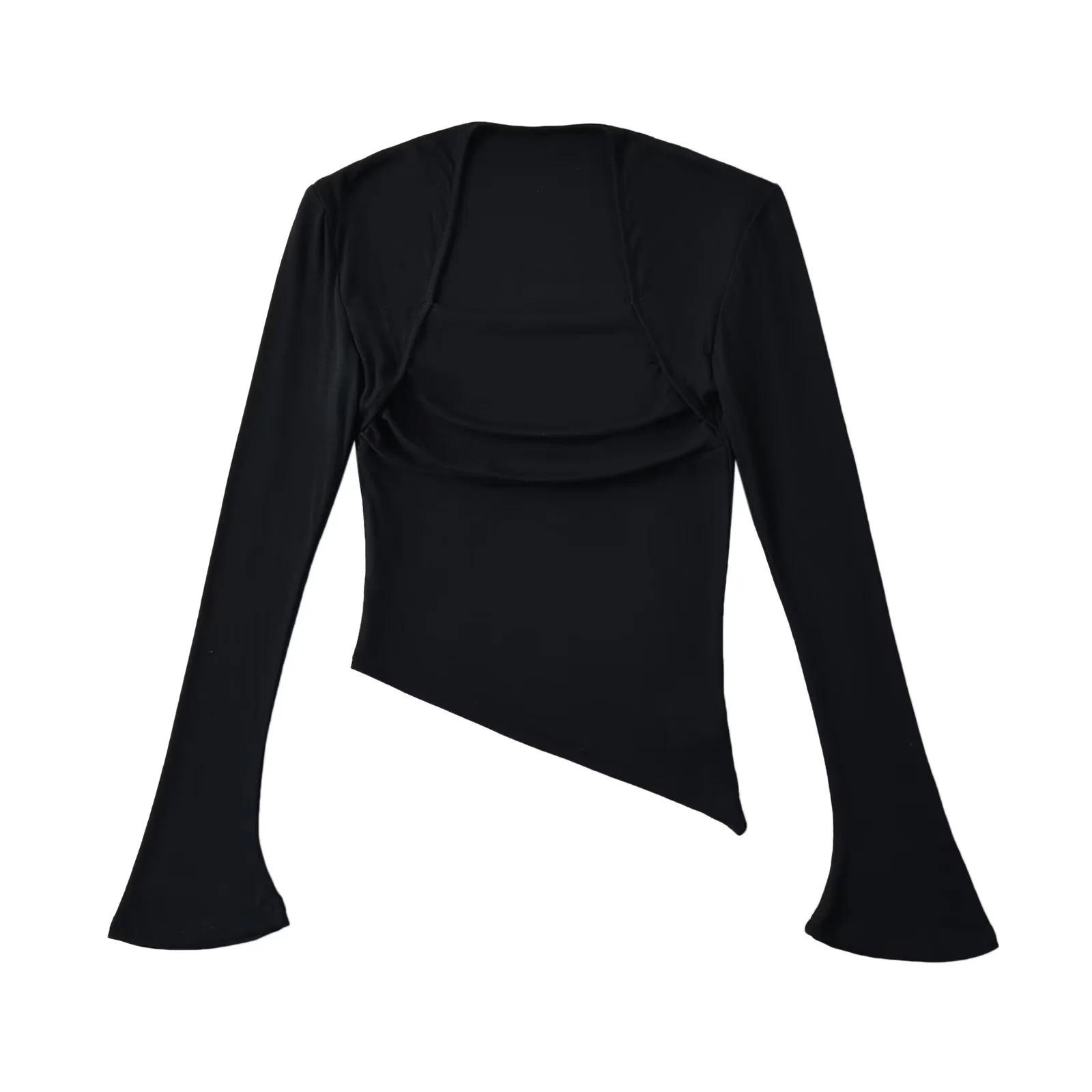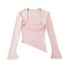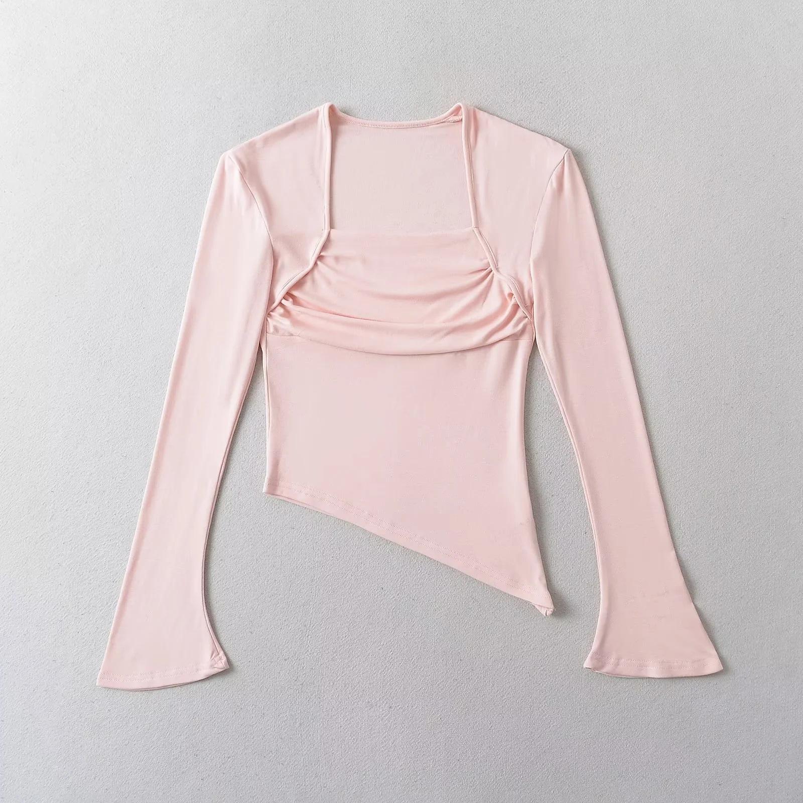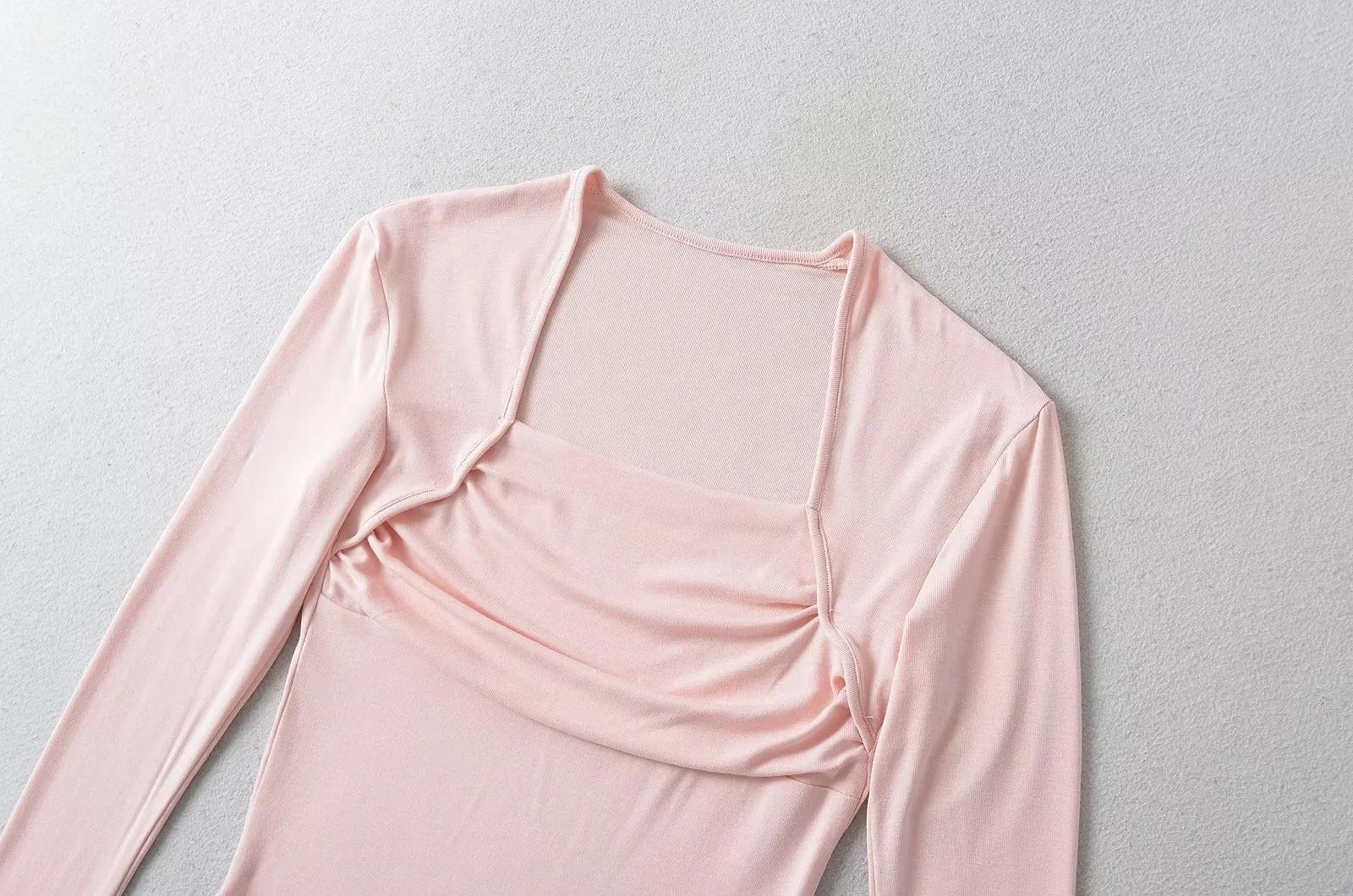 Deseo Puro Cuello Cuadrado Plisado Camiseta Base Top de Mujer 2024 Nuevo Diseño Nicho de Mujer Primavera y Otoño Camiseta de Manga Larga