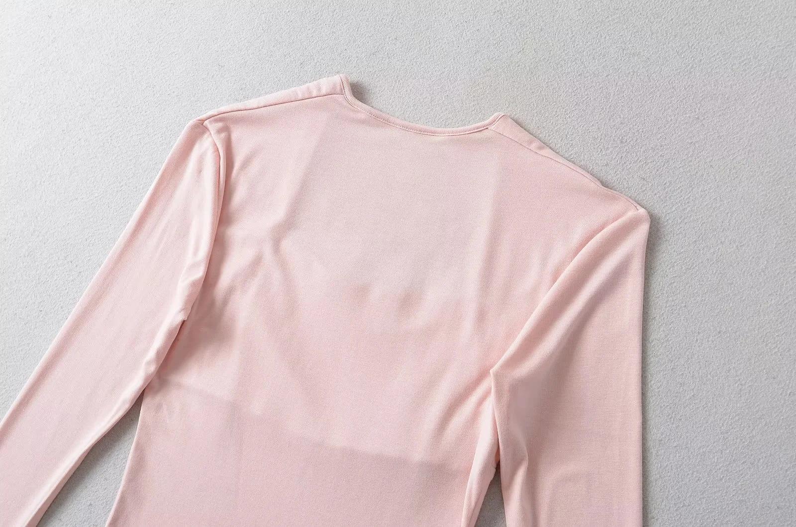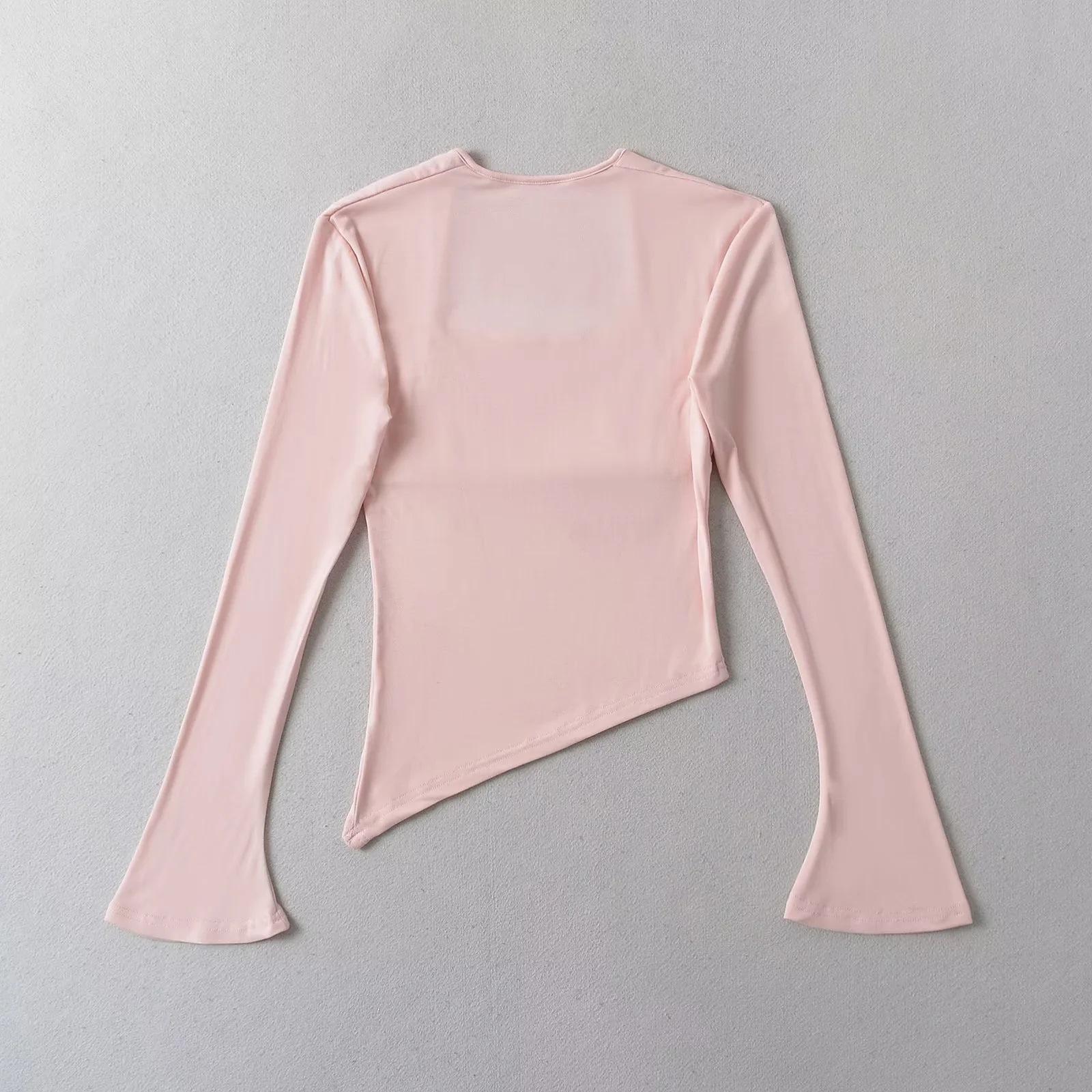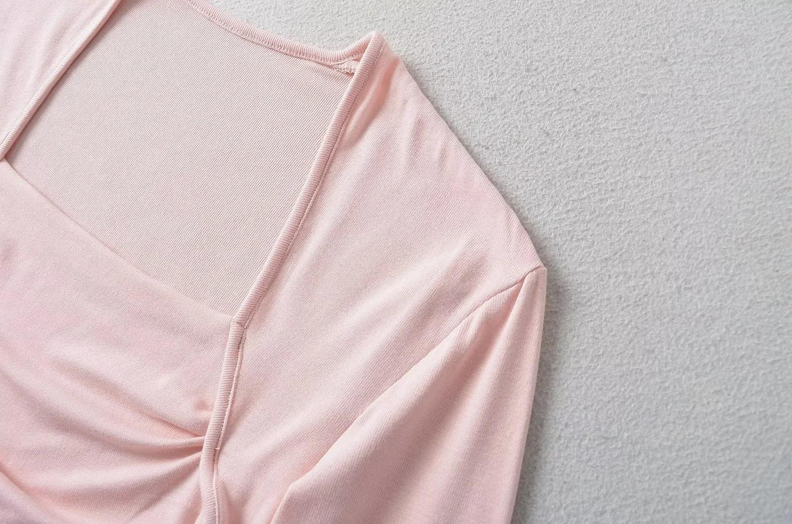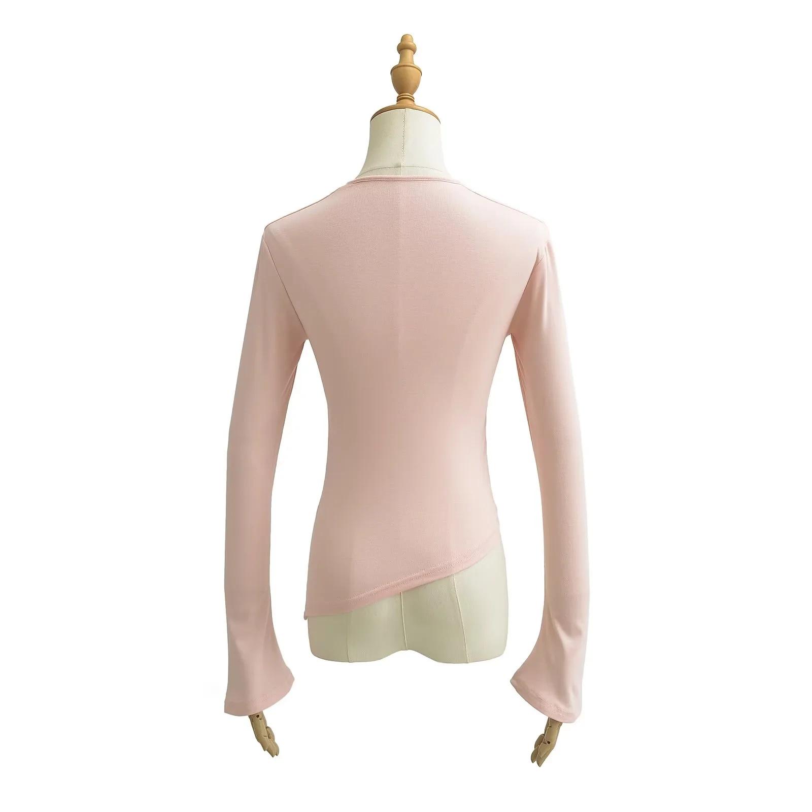 Deseo Puro Cuello Cuadrado Plisado Camiseta Base Top de Mujer 2024 Nuevo Diseño Nicho de Mujer Primavera y Otoño Camiseta de Manga Larga