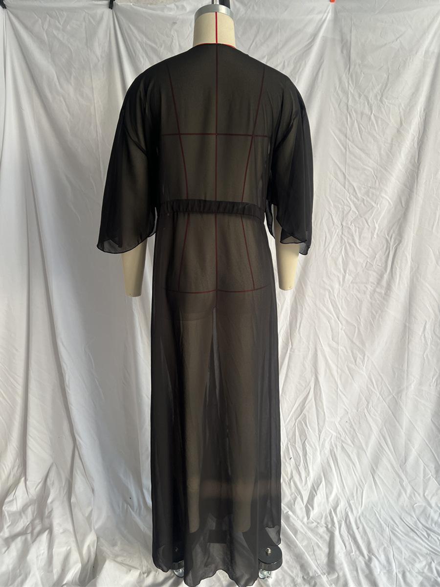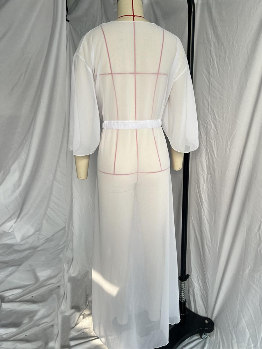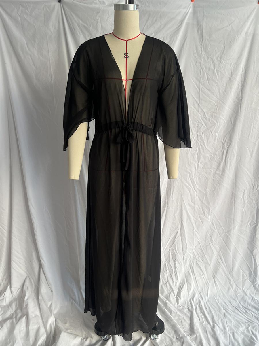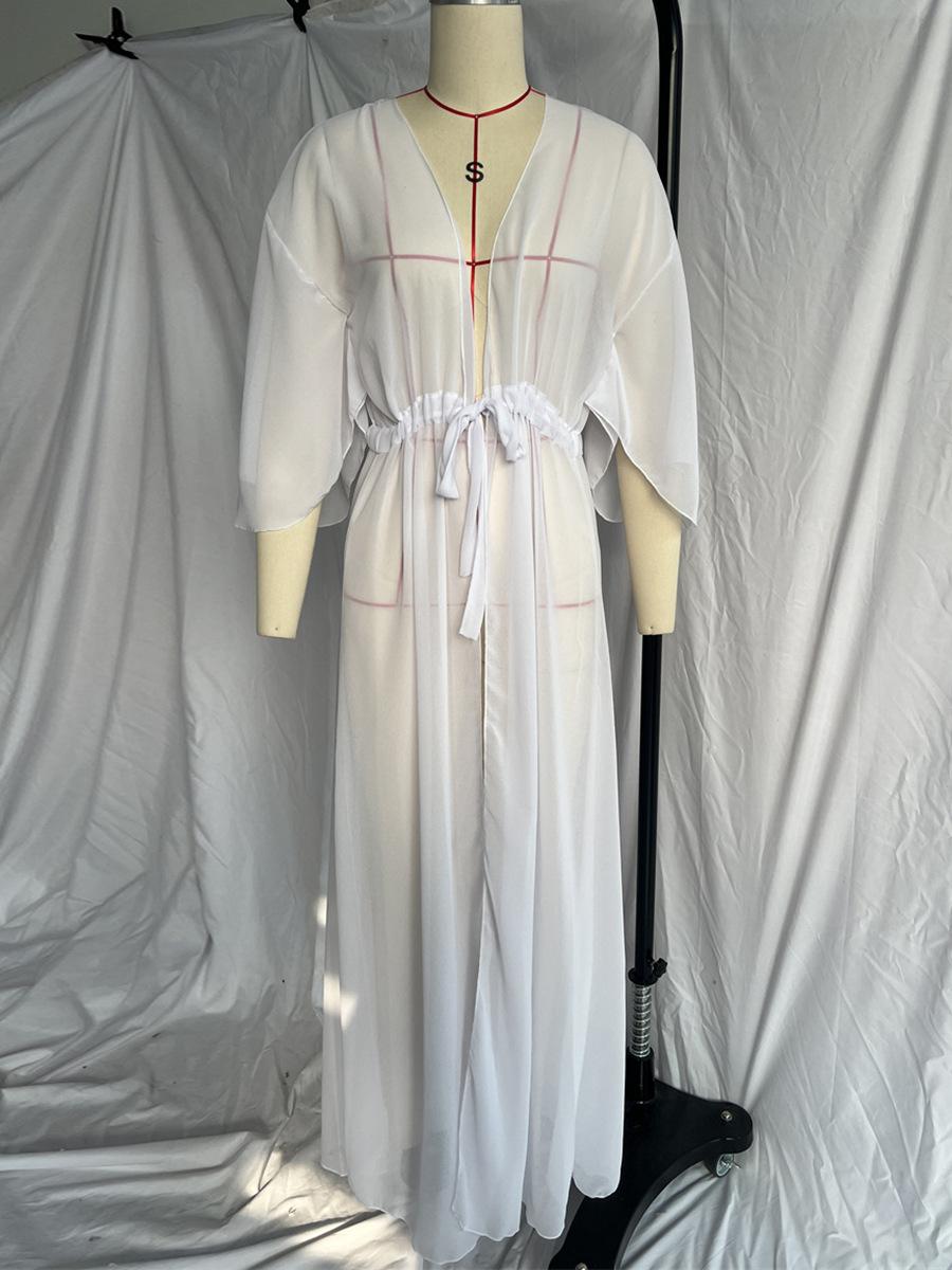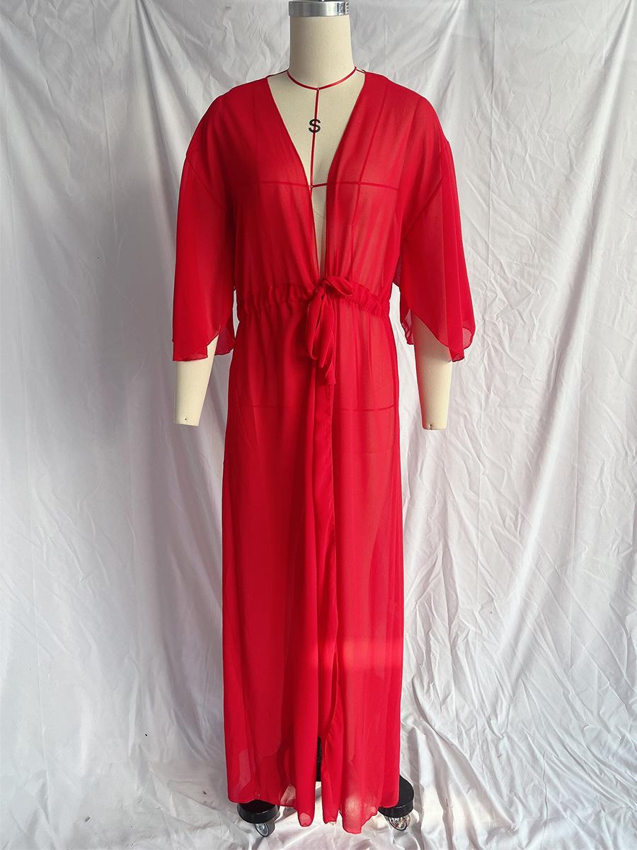 Blusa informal sexy de playa con protección solar, cárdigan largo de gasa, color liso, Amazon Cross-border 2025
