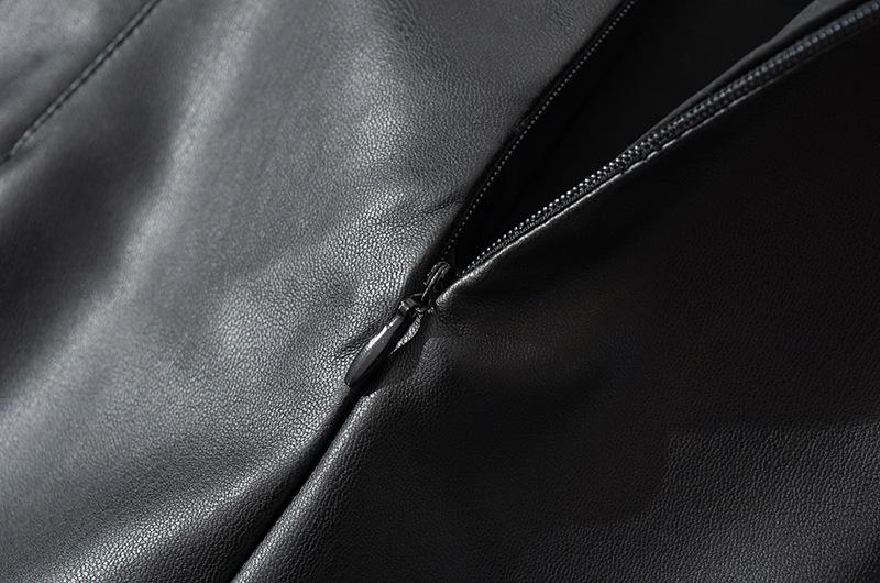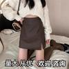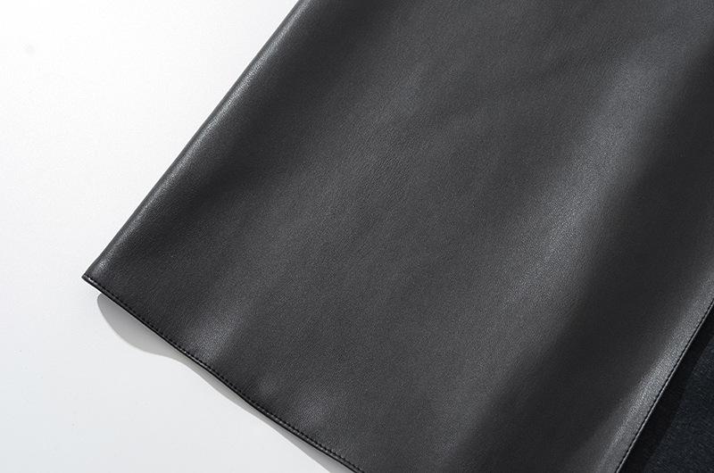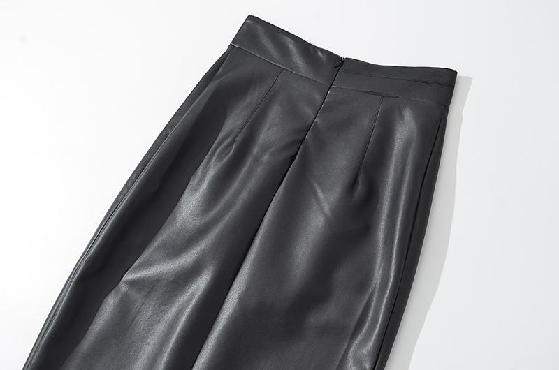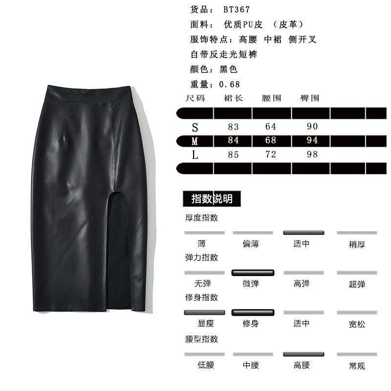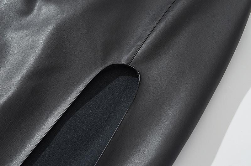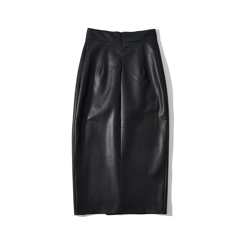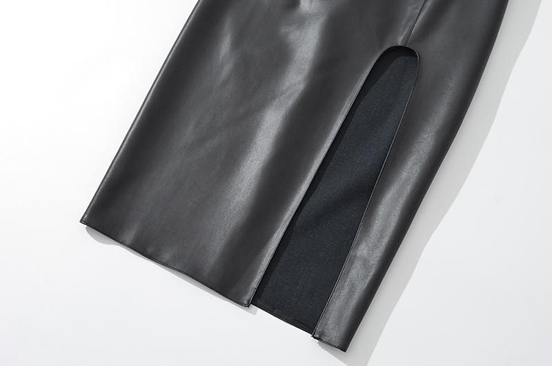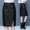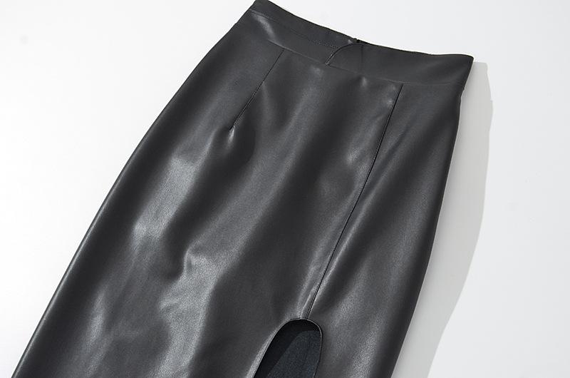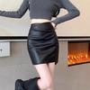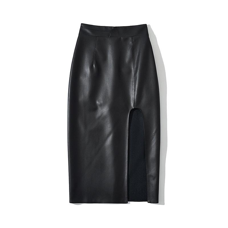 Falda de cuero estilo europeo y americano para otoño e invierno, de cintura alta, adelgazante, irregular, sexy, con abertura en la cadera, de longitud media, estilo A para mujer