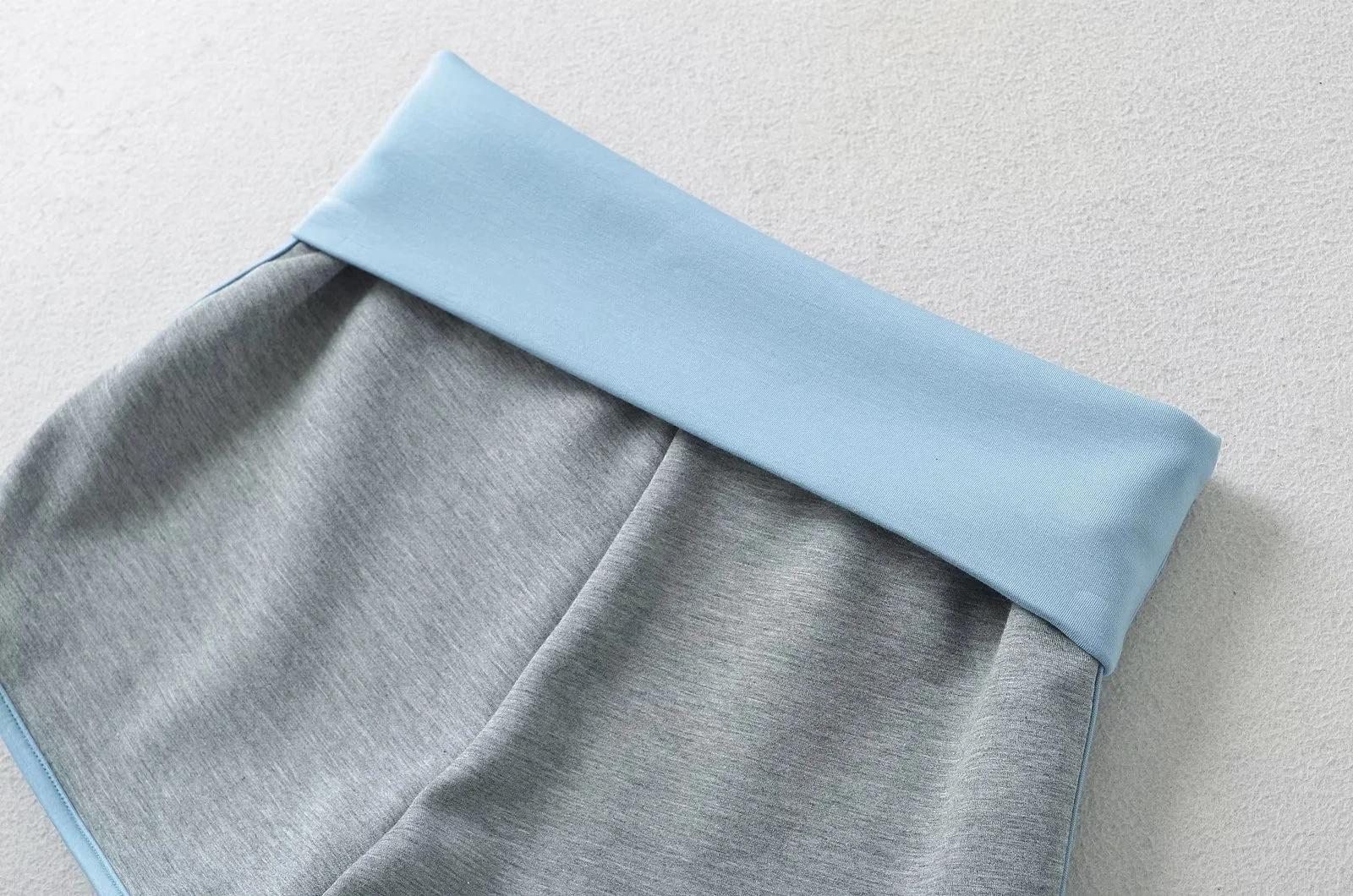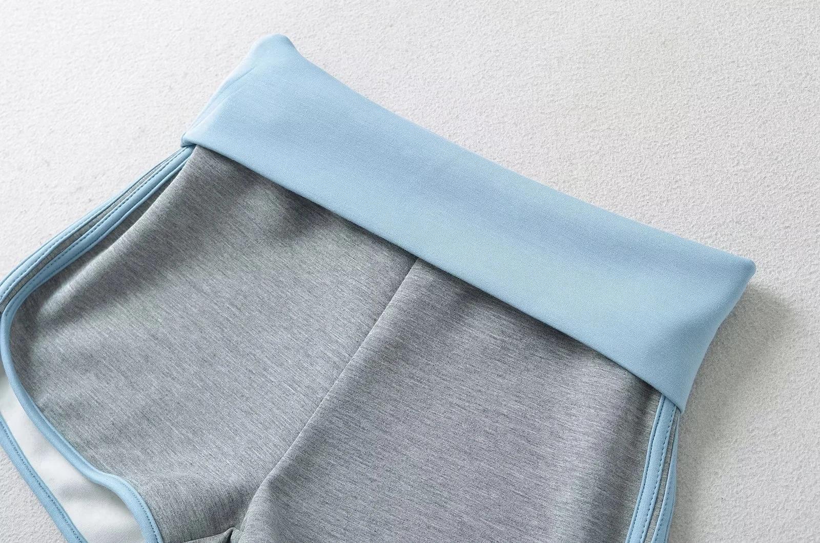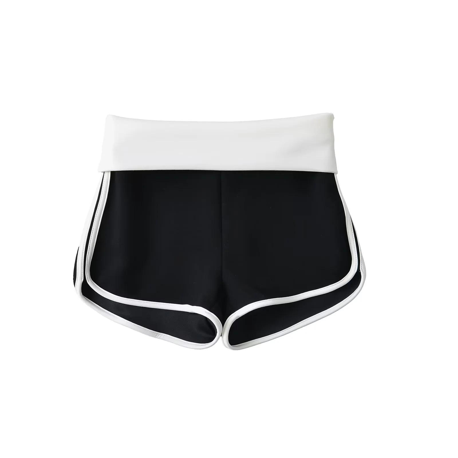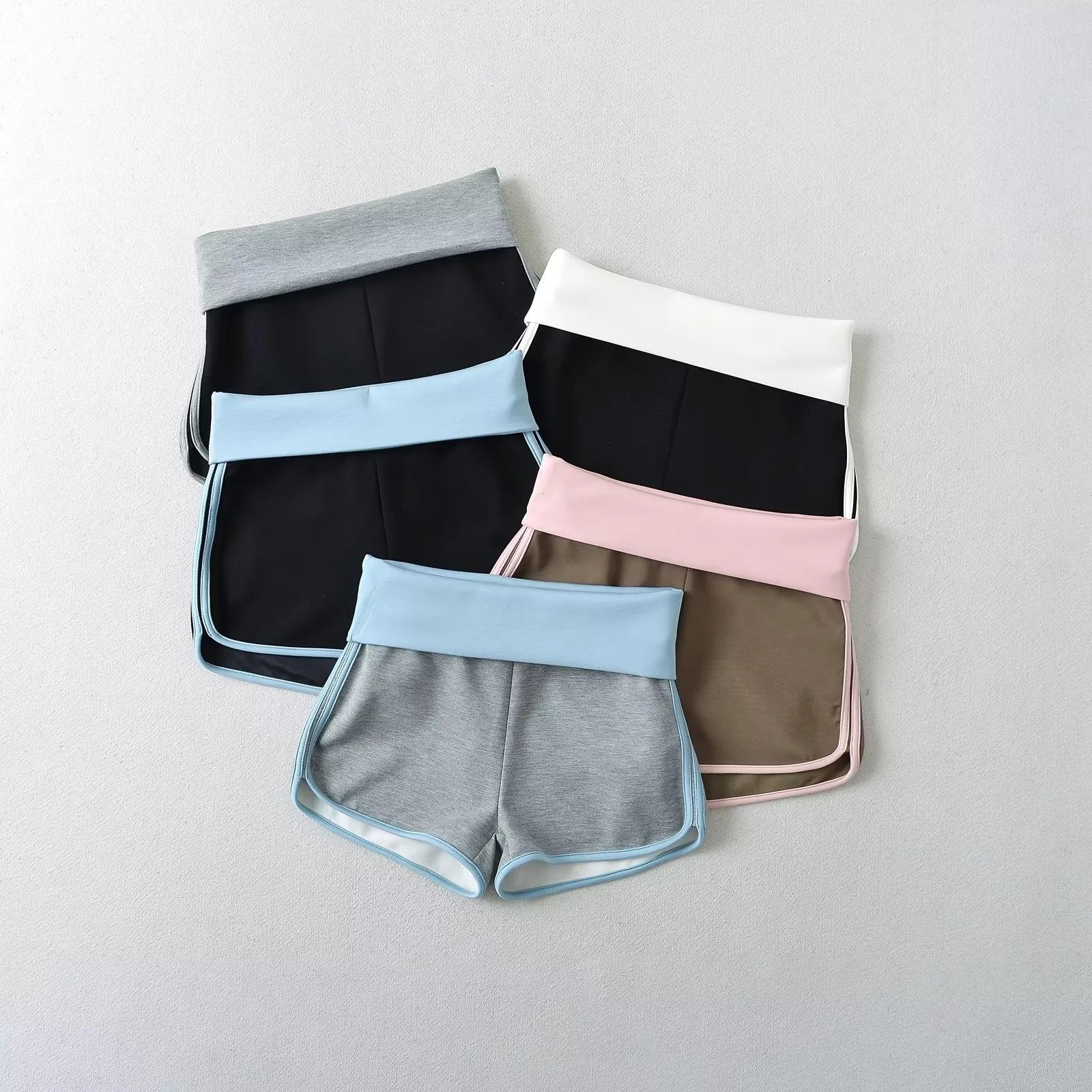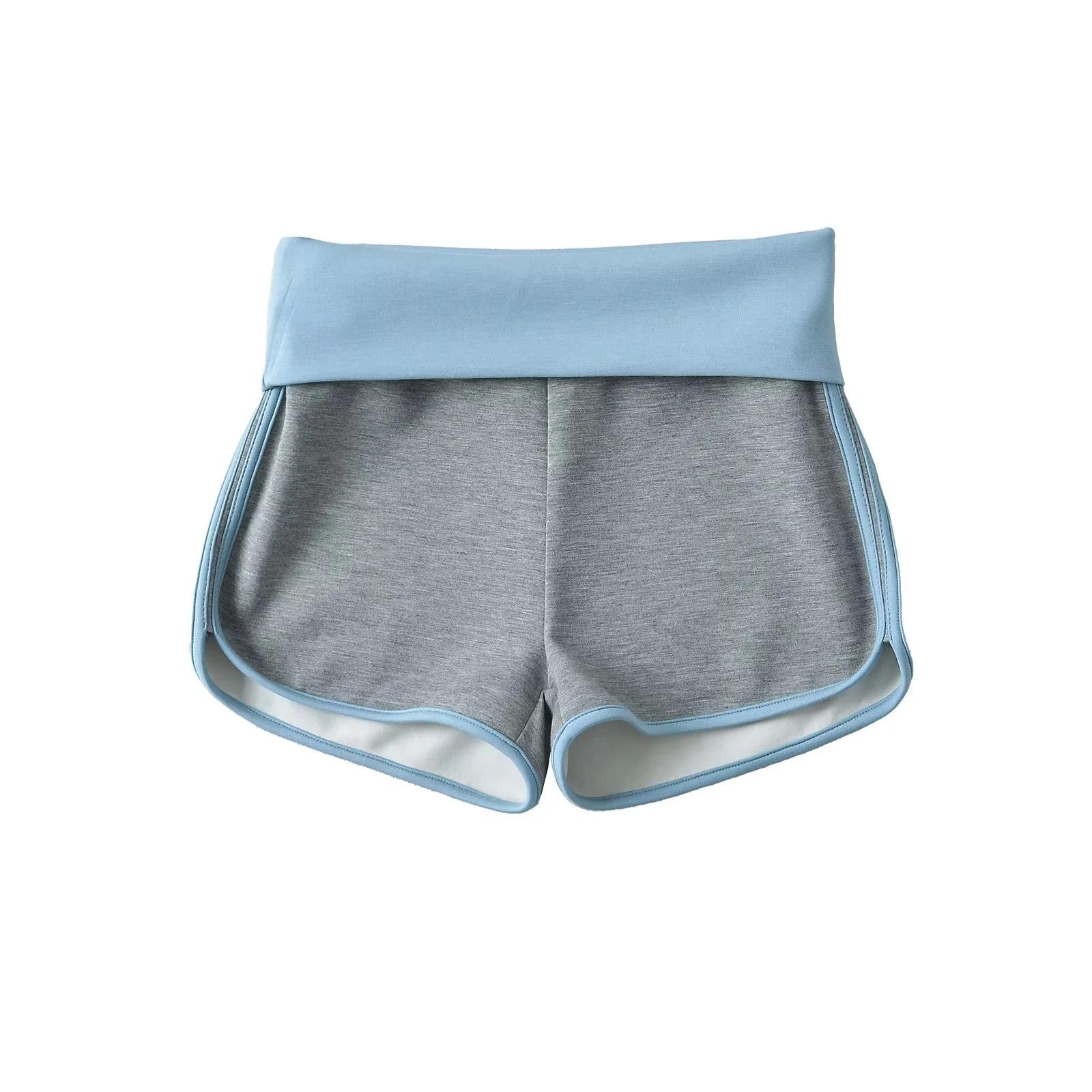 Pantalones cortos ajustados de cintura alta de doble capa para mujer, estilo americano, para yoga y fitness, con combinación de colores