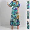 Primavera 2026 Nueva Ropa para Mujer Estilo Europeo y Americano Transfronterizo Vestido de Moda Ceñido a la Cintura Delgado Ajuste Estampado Plisado Vestido Largo
