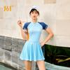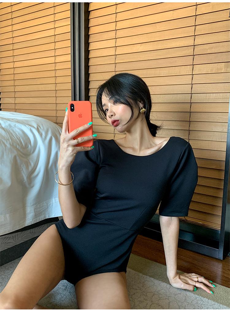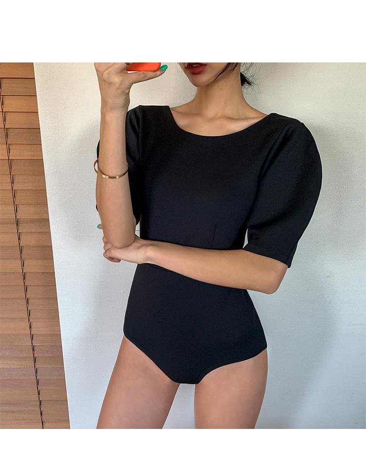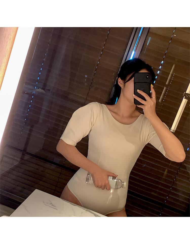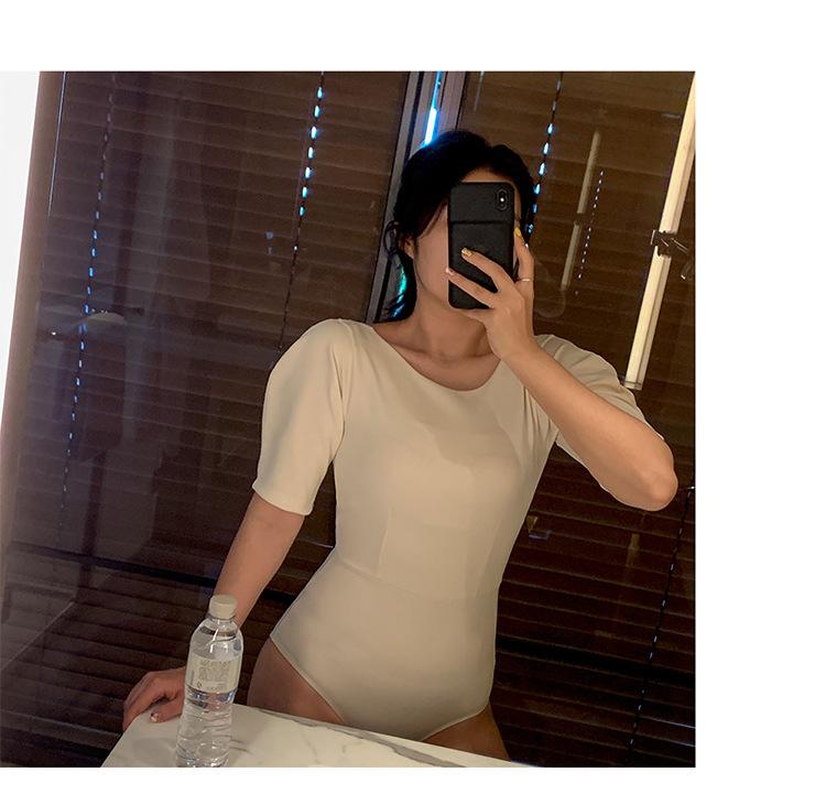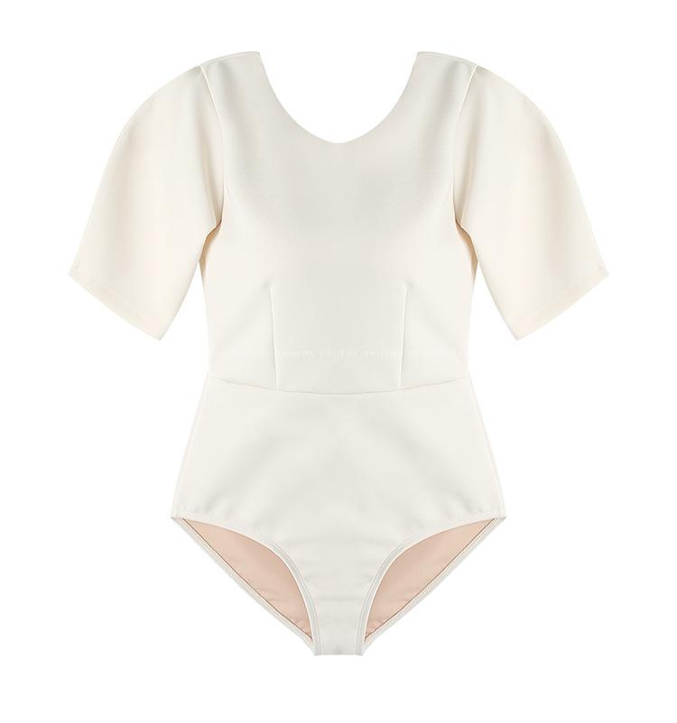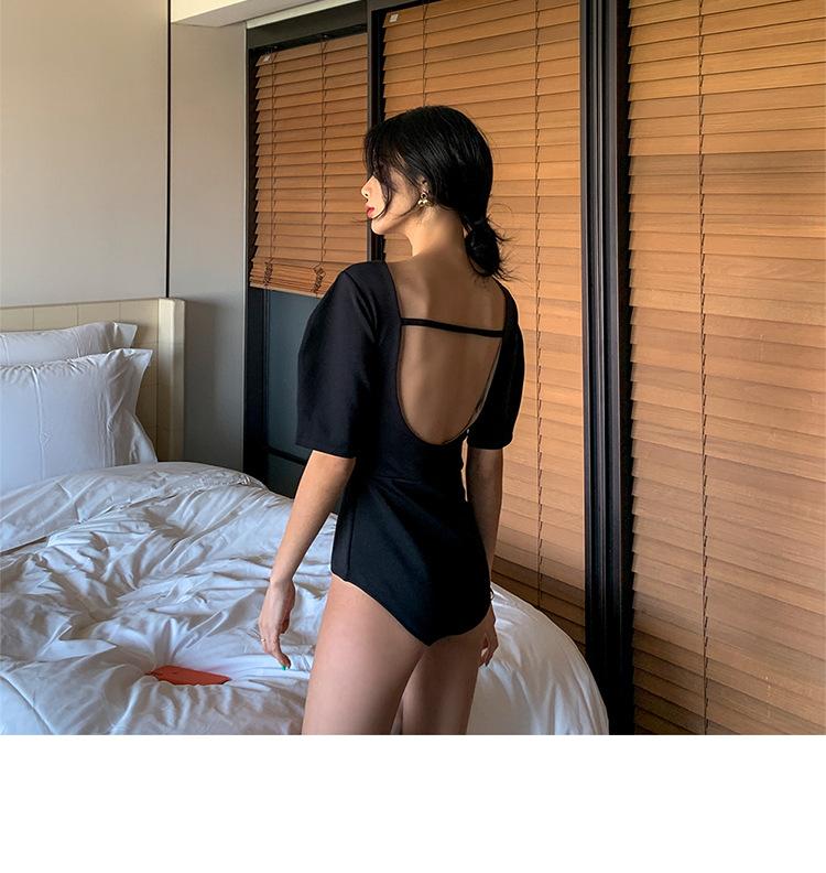 Traje de baño de una pieza, conservador, ajustado, de manga corta, sin espalda, popular en Internet, coreano, de aguas termales, de una pieza, para mujer