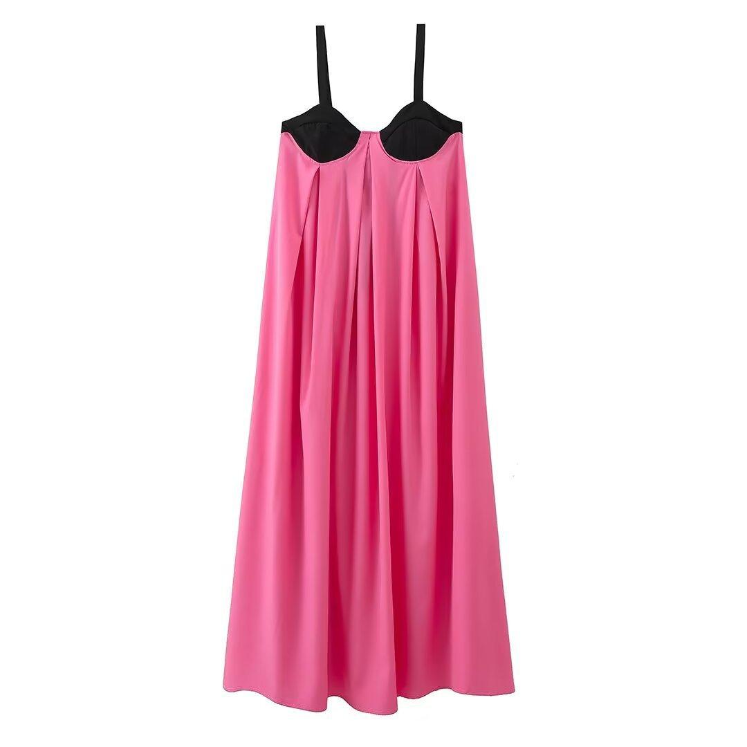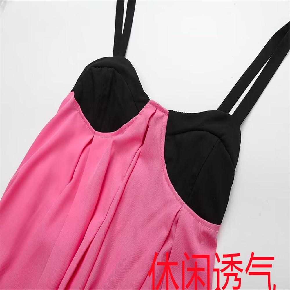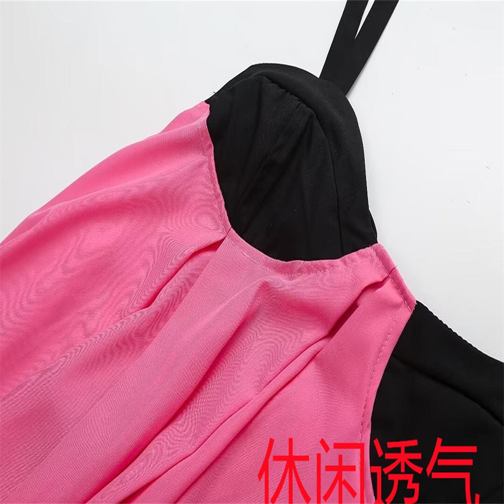 Suministro Transfronterizo Verano Europeo y Americano Estilo Europeo y Americano Ropa de Mujer Ins Popular Empalmado Espalda Descubierta Sin Mangas Vestido de Tirantes