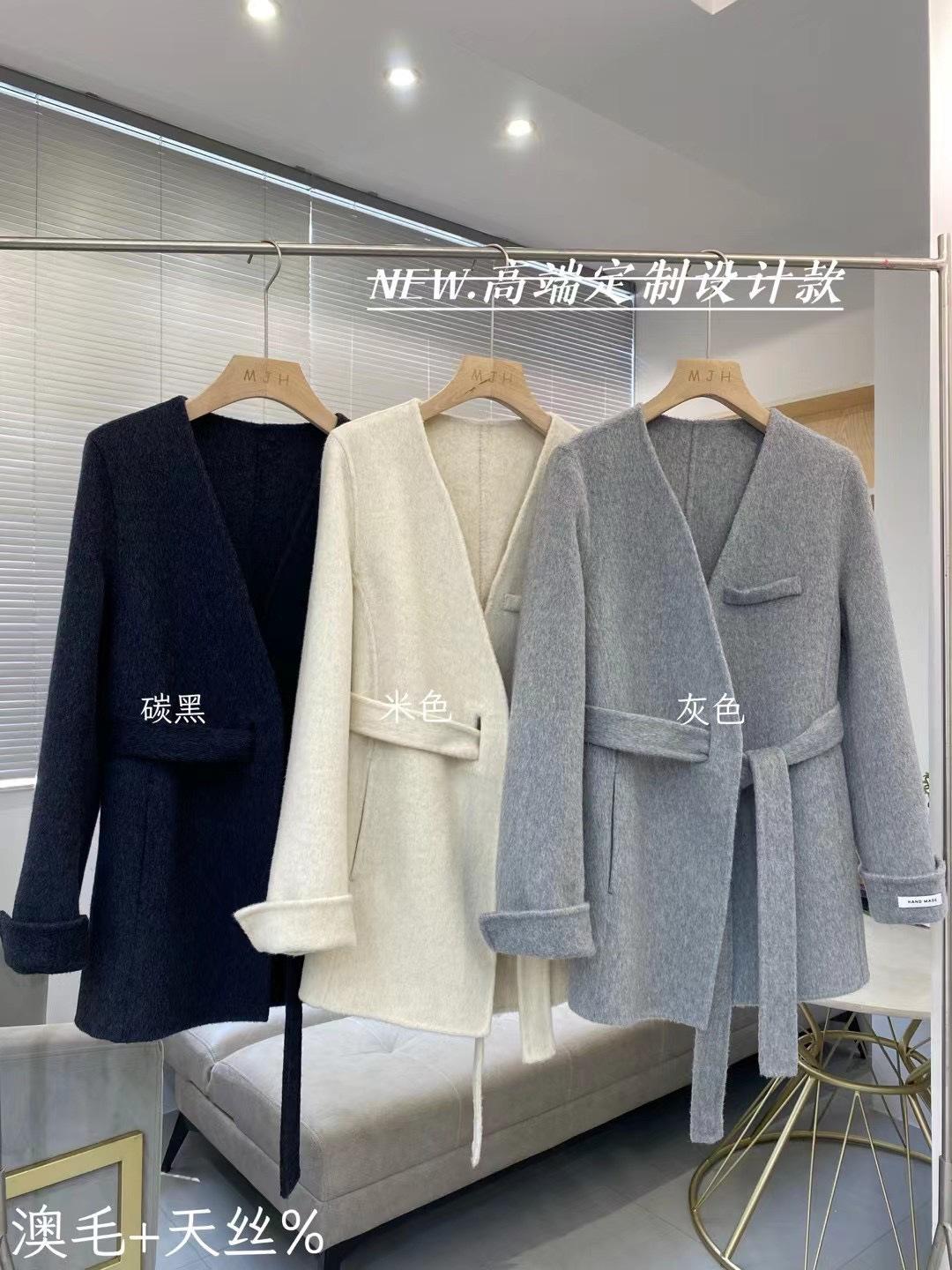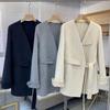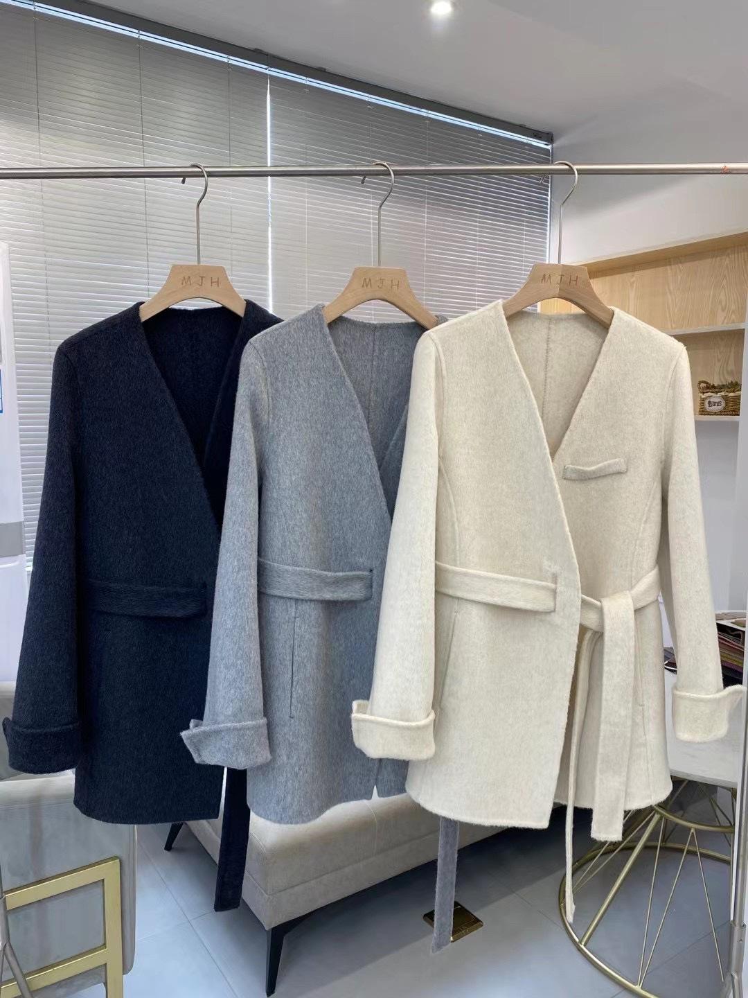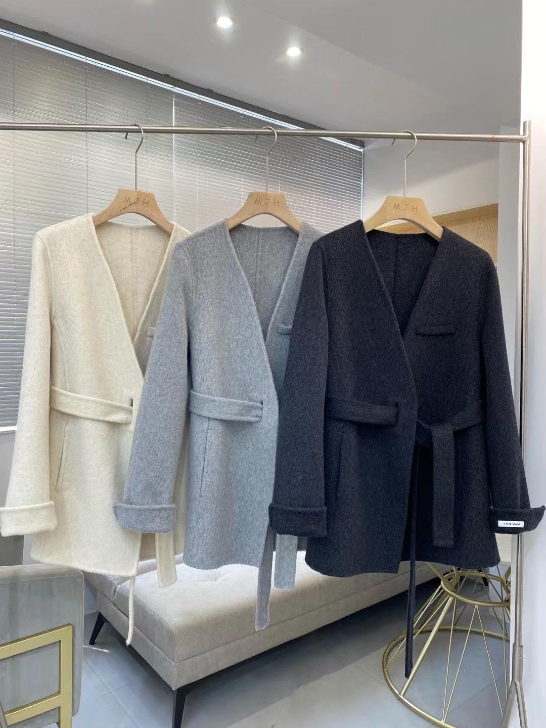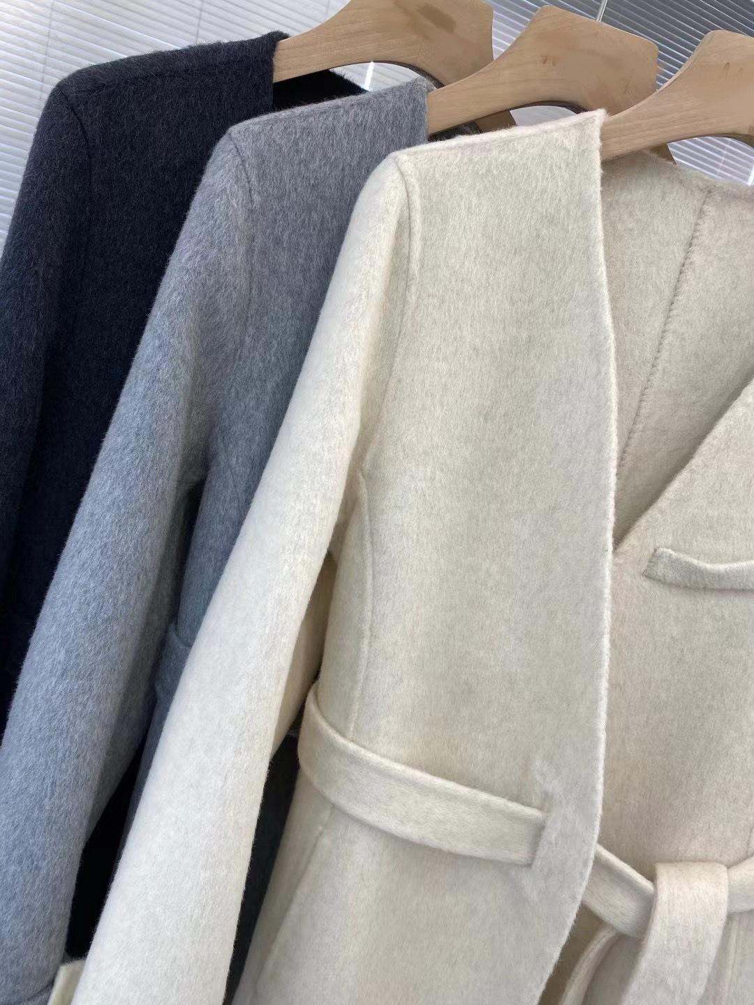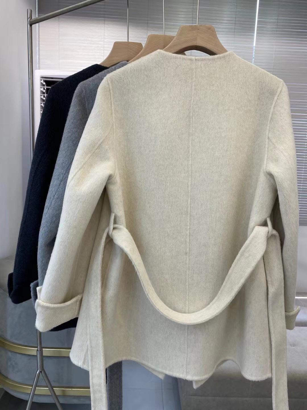 Abrigo de Cachemira de Doble Cara de Alta Gama para Mujer 2025 Nuevo Otoño e Invierno Abrigo de Lana Corto con Cuello en V para Personas Pequeñas Espesado