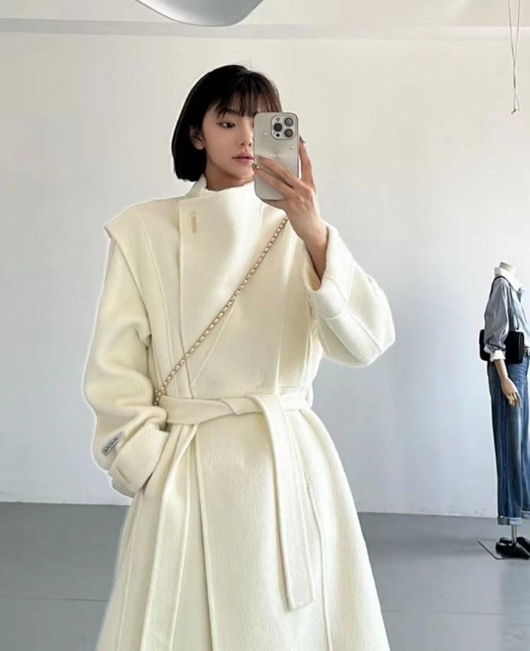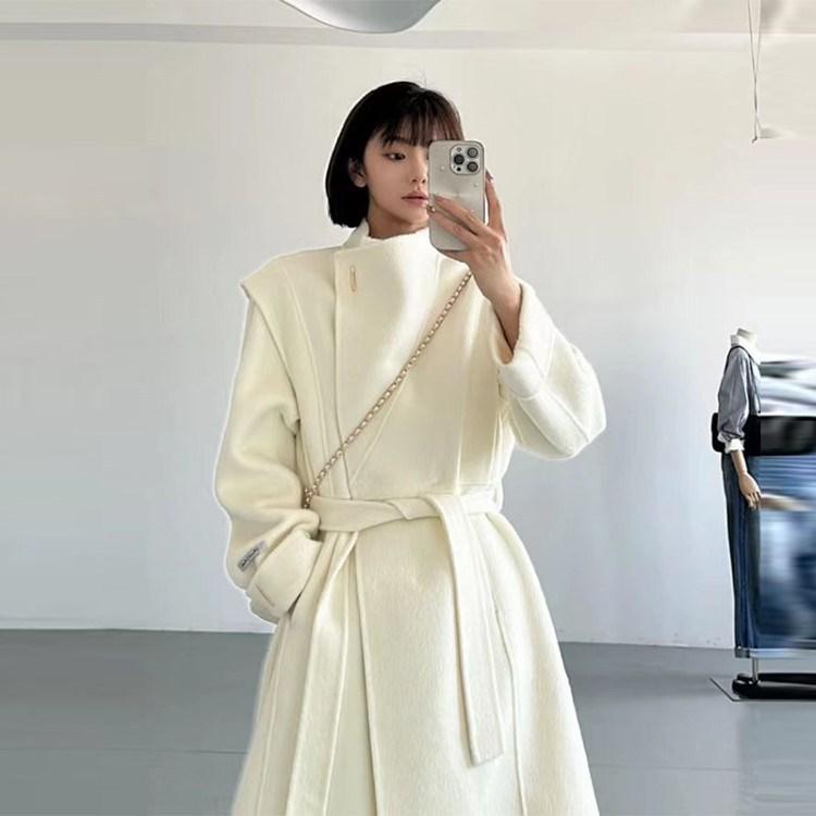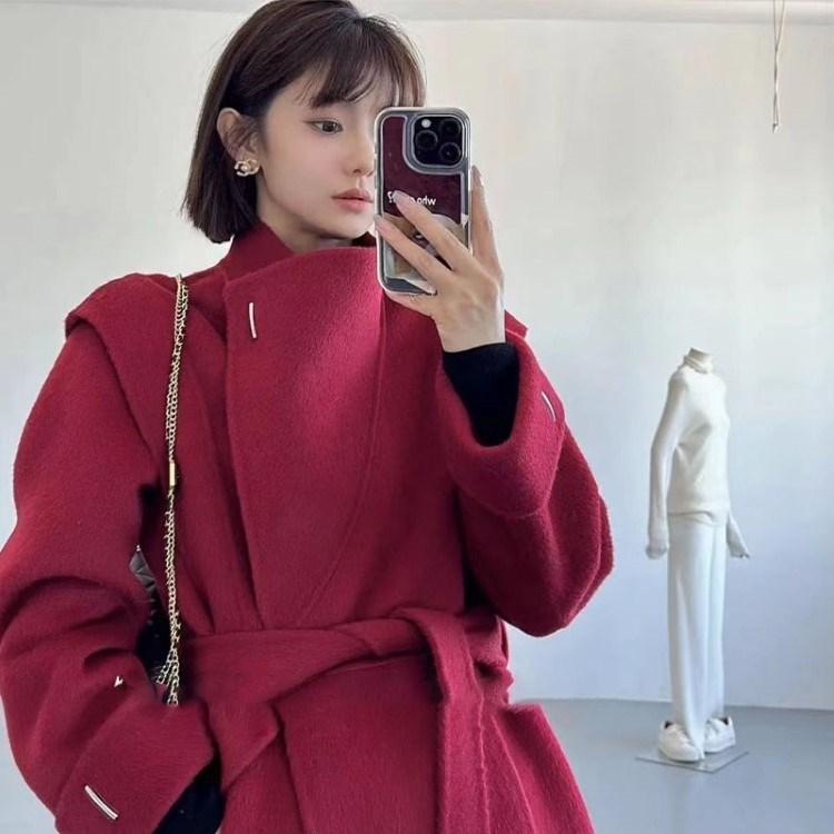 Abrigo de lana de cachemira de doble cara con cuello de alta gama para mujer, otoño e invierno, nuevo, suelto, elegante, largo, de lana.