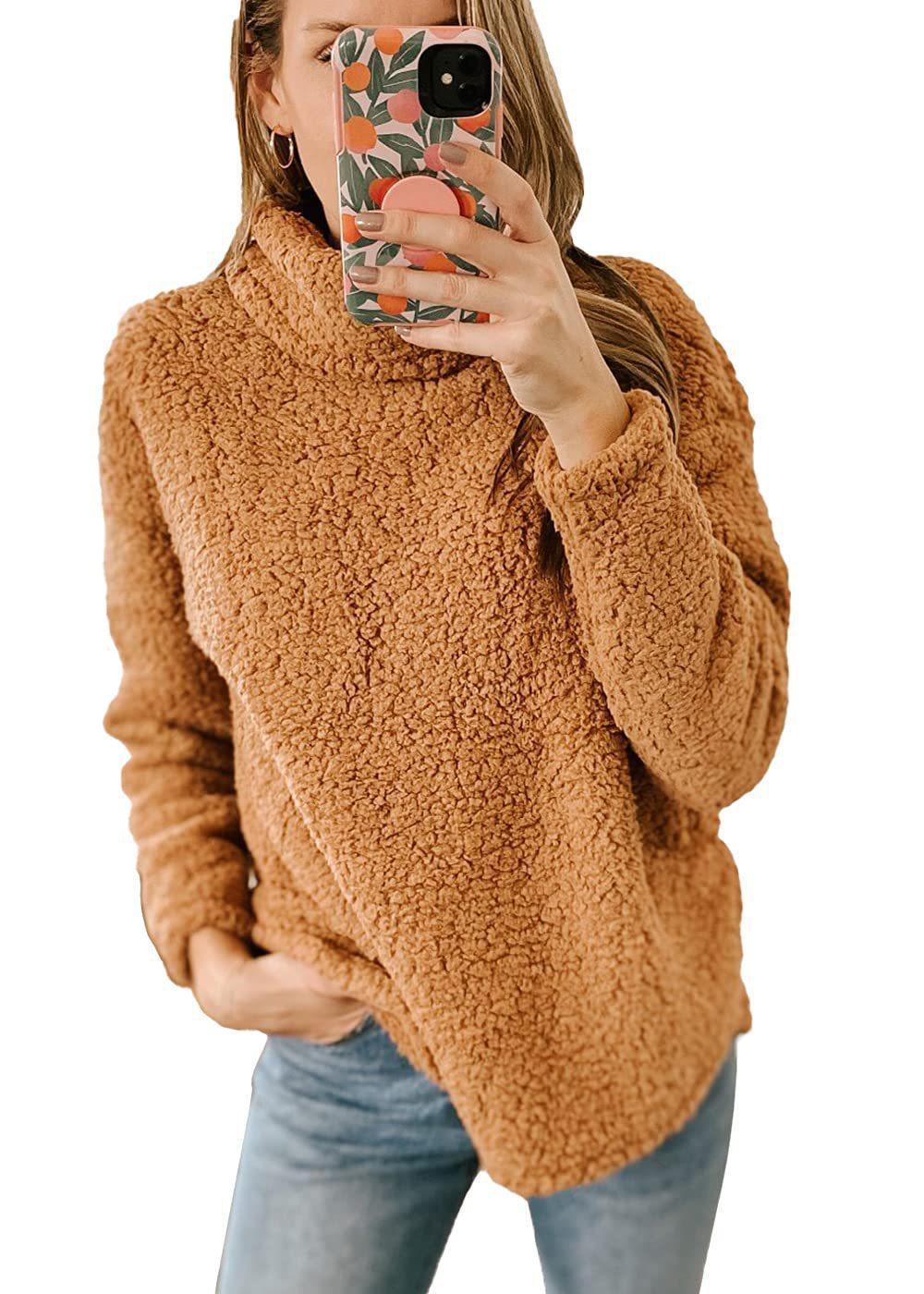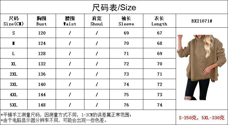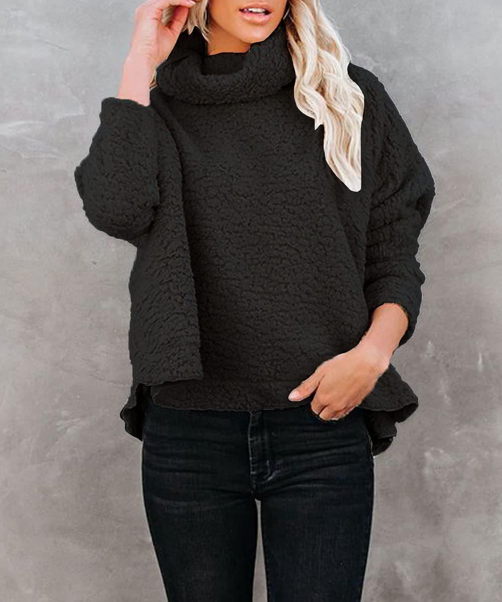 Amazon 2023 otoño e invierno Nuevo suéter de mujer holgado de manga larga con cuello alto, bajo dividido y terciopelo de doble cara, ropa de mujer
