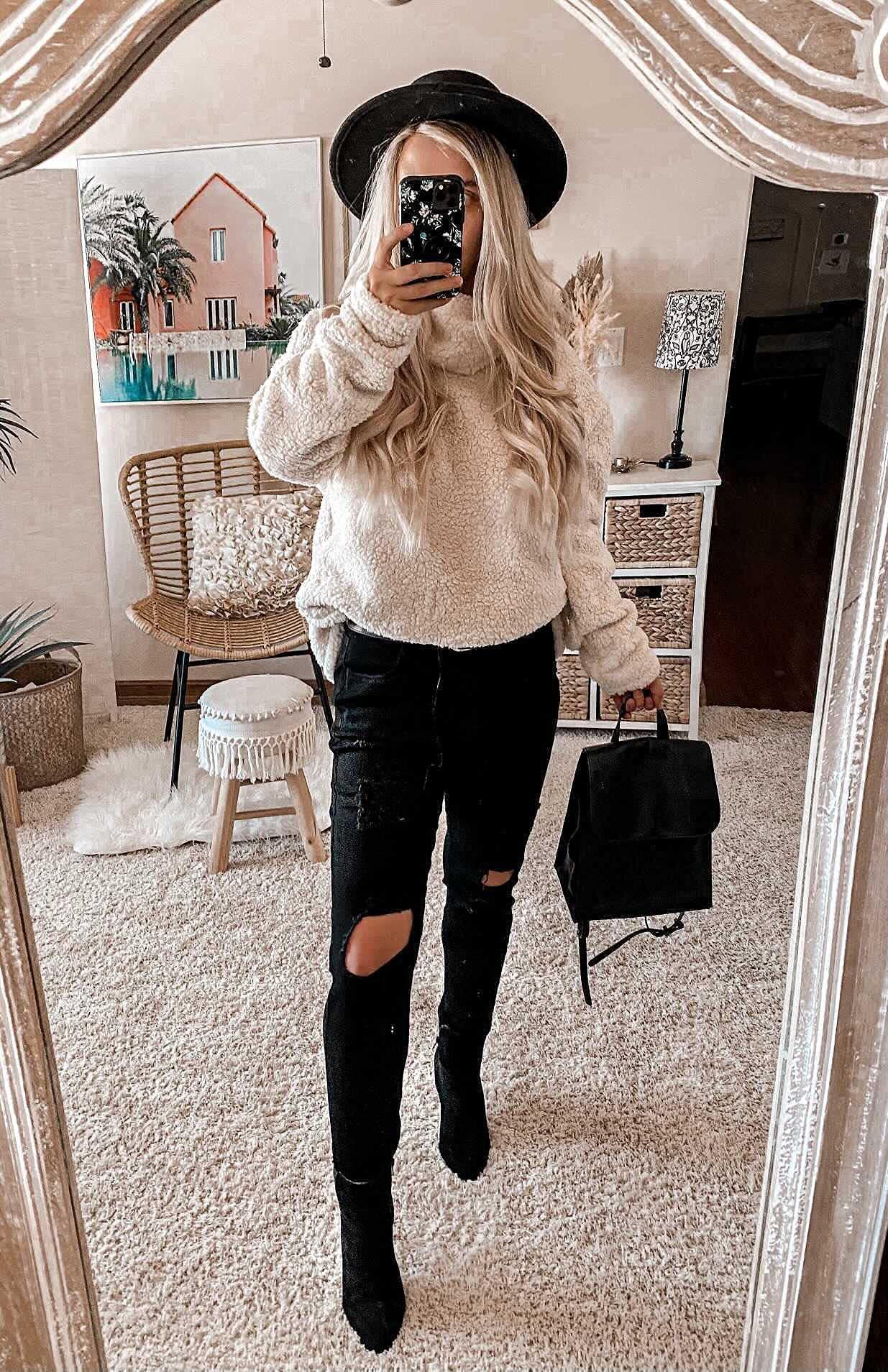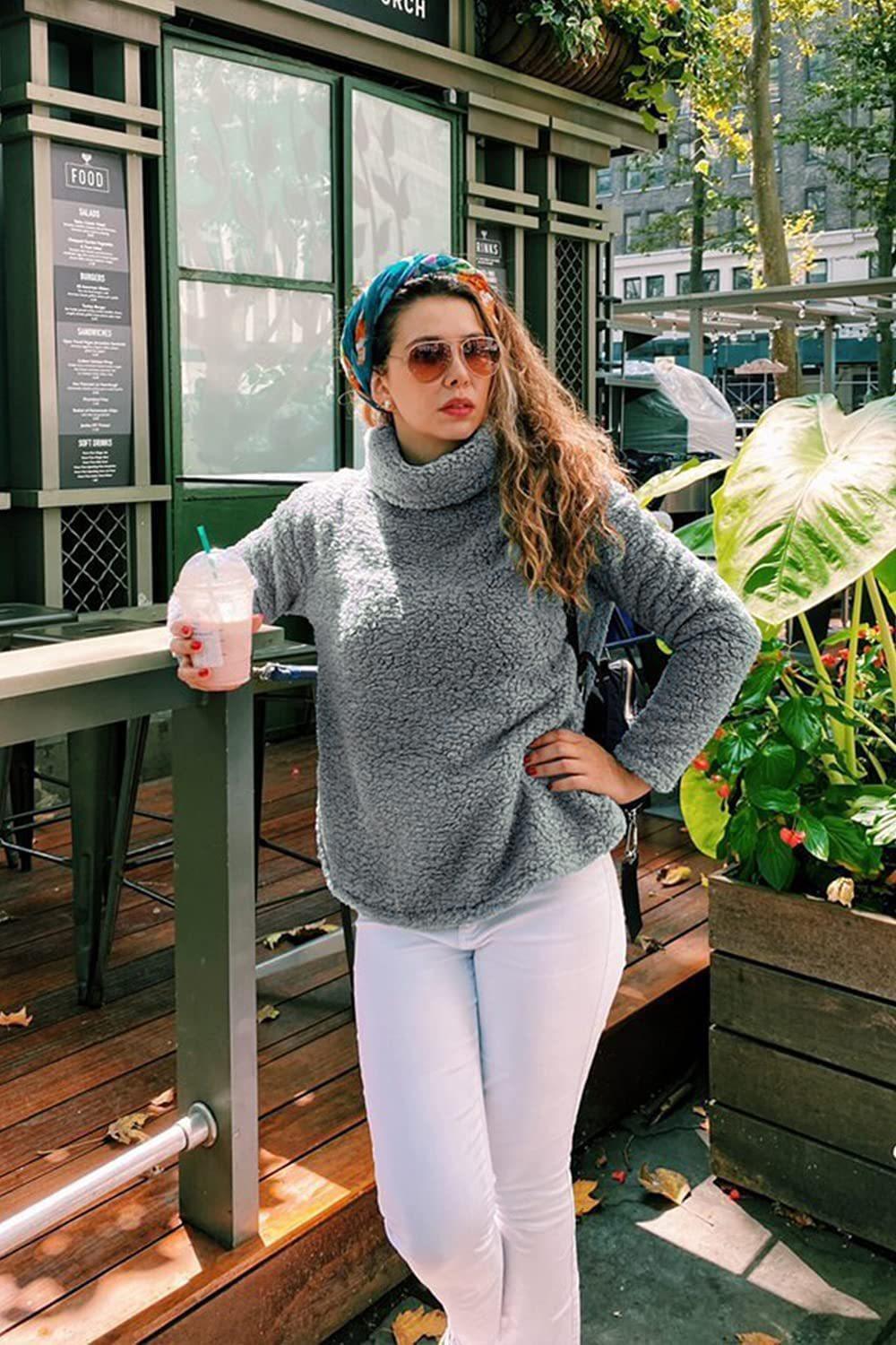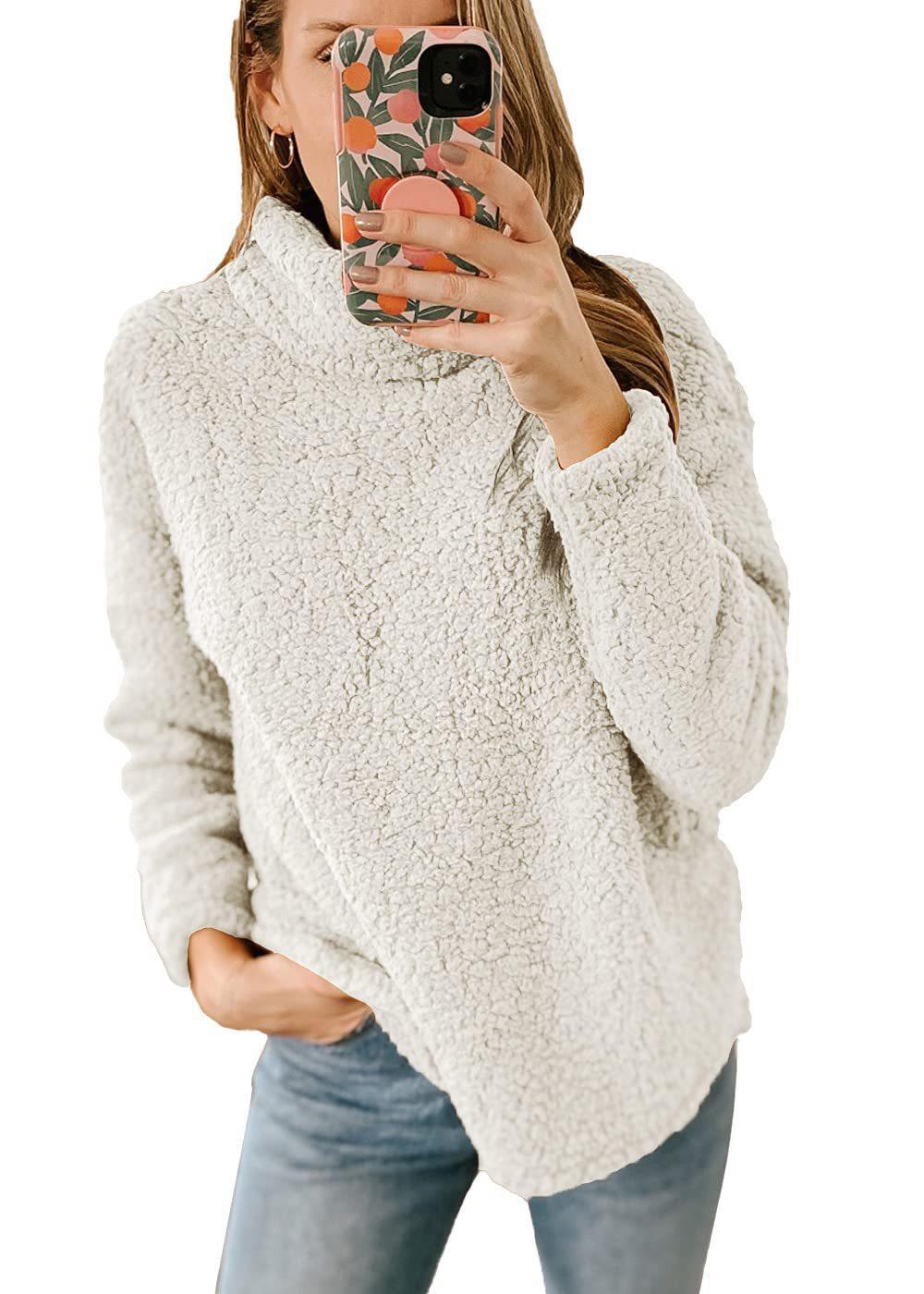 Amazon 2023 otoño e invierno Nuevo suéter de mujer holgado de manga larga con cuello alto, bajo dividido y terciopelo de doble cara, ropa de mujer