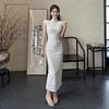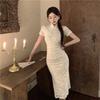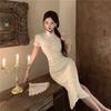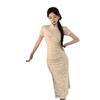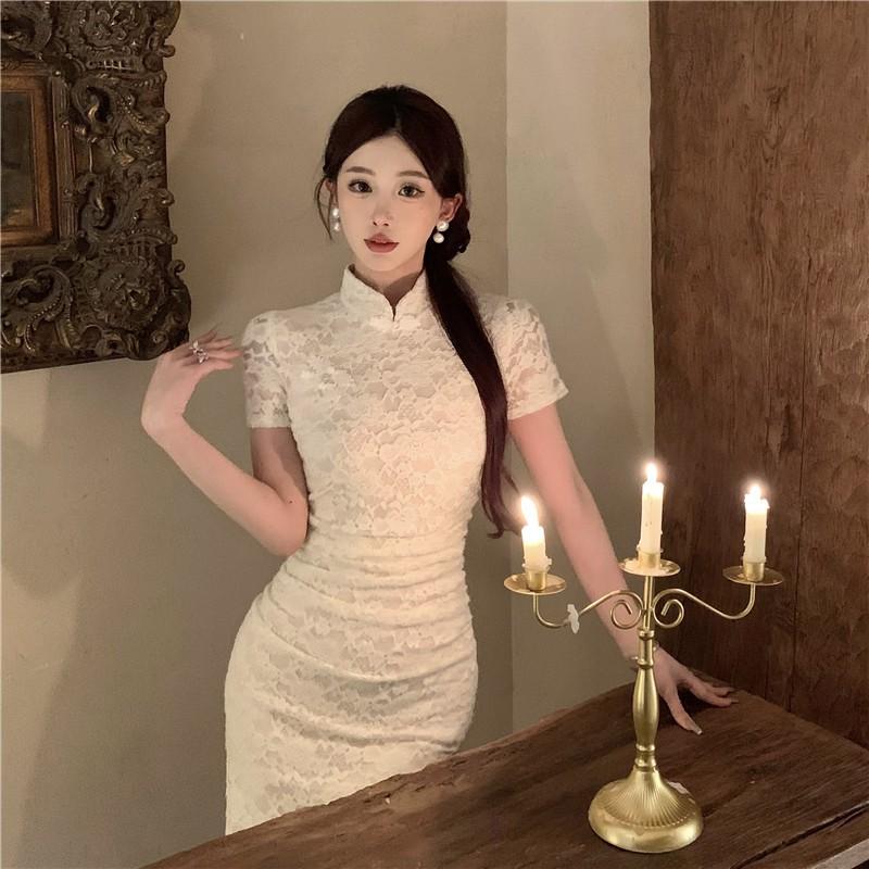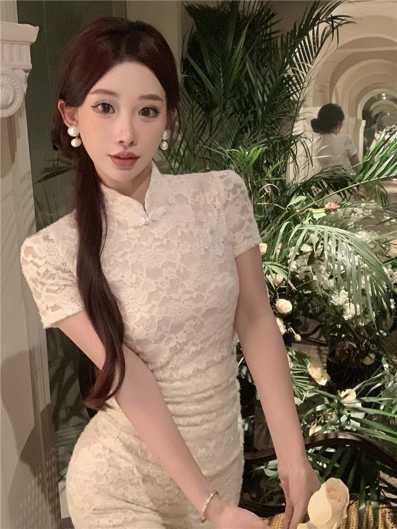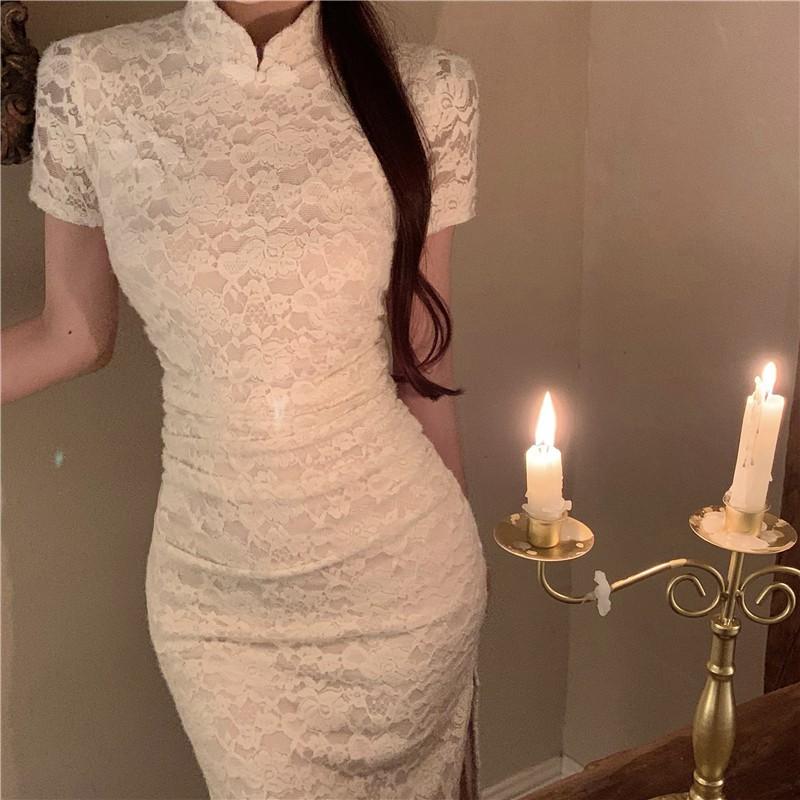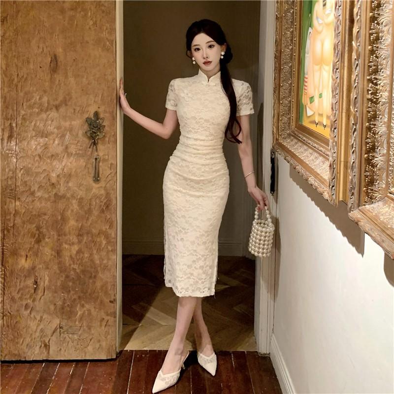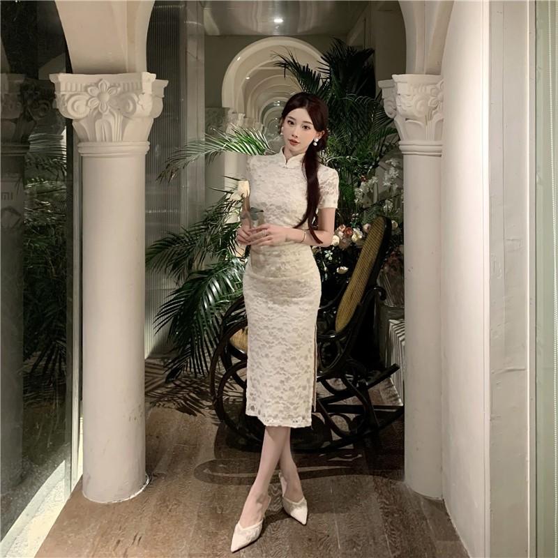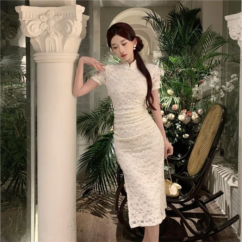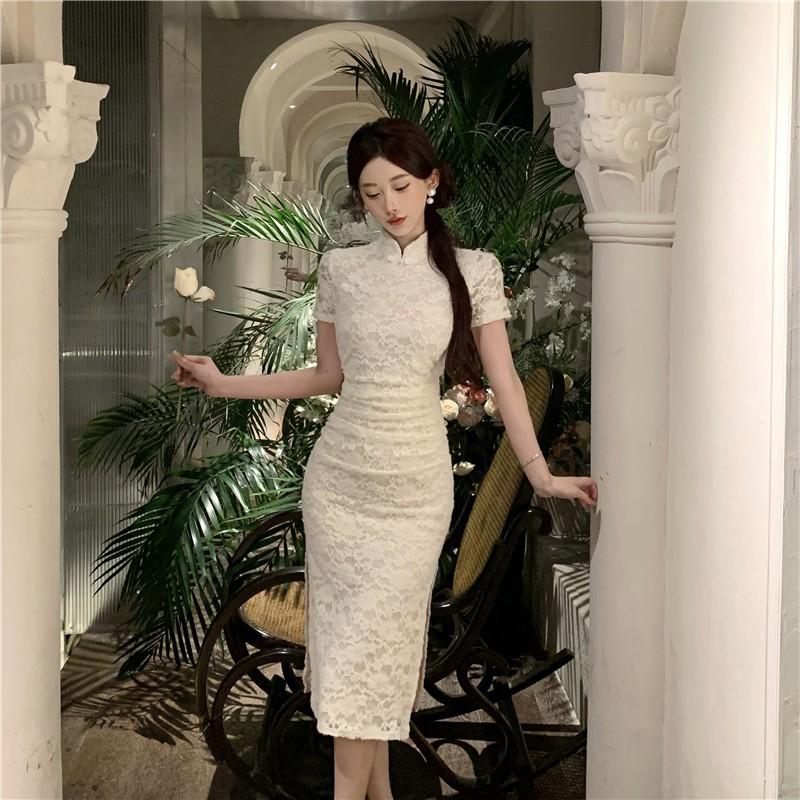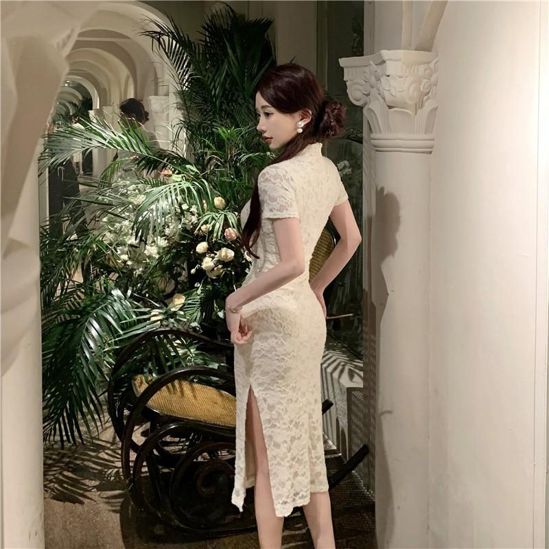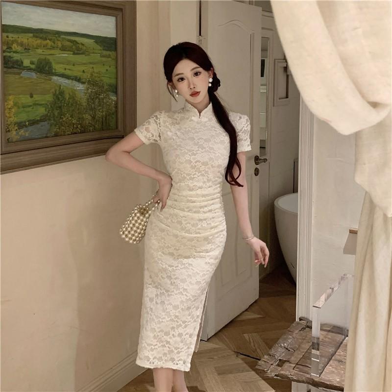 Nuevo vestido cheongsam chino de temperamento suave con abertura en la cintura, vestido de encaje de moda de verano para mujer.