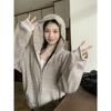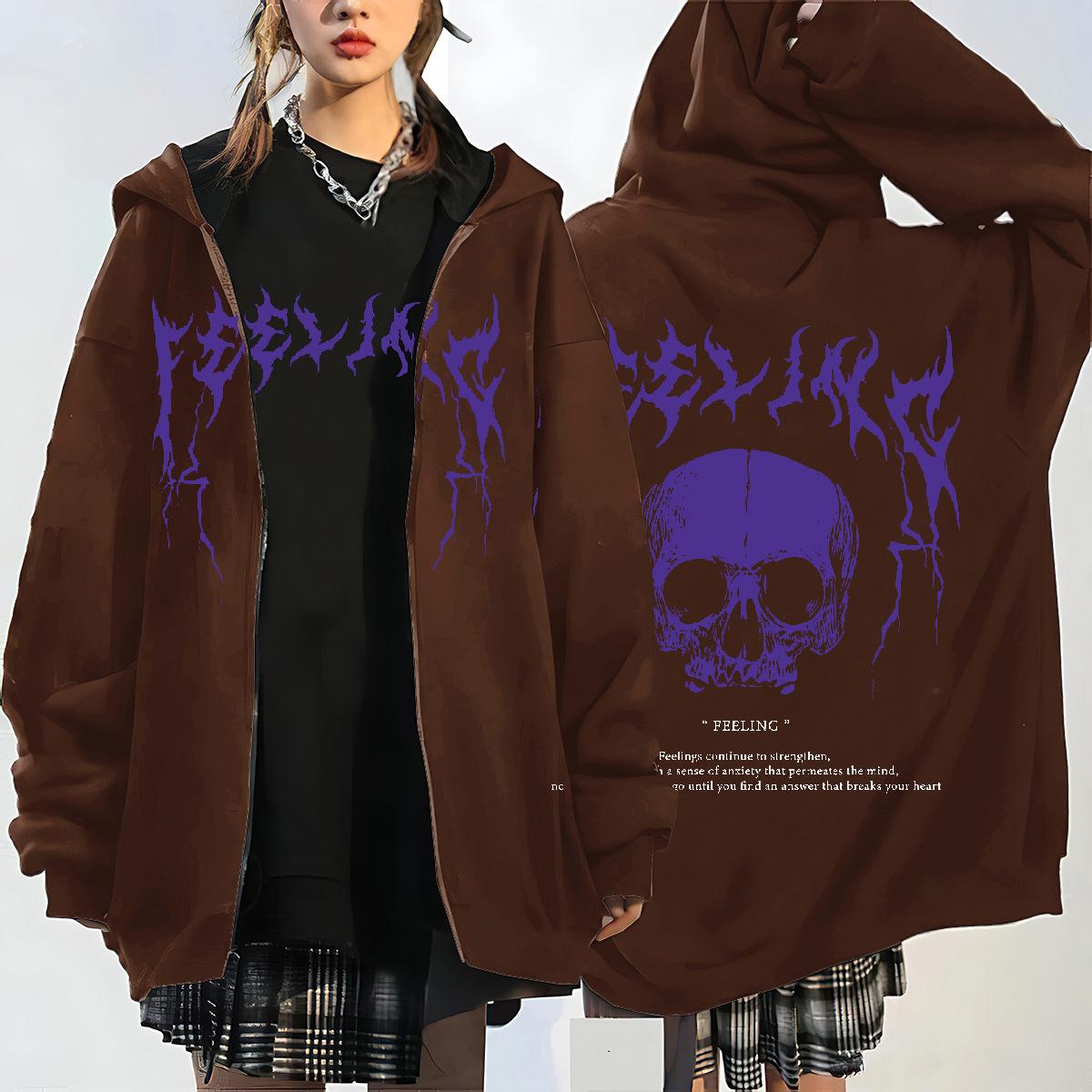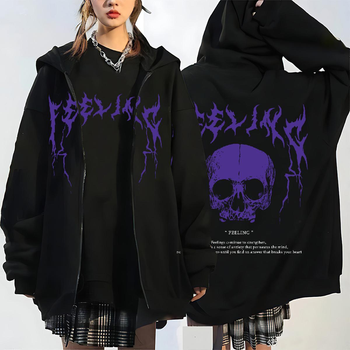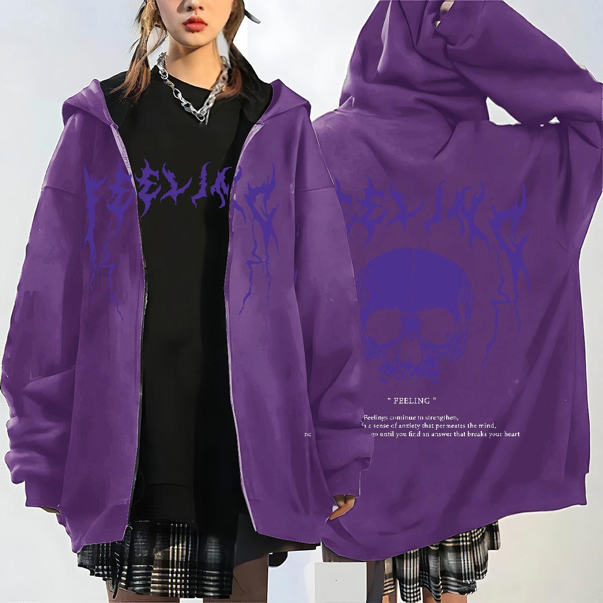 Nueva Llegada en stock Sudadera con Capucha y Cremallera de Calavera y Rayo para Mujer Estilo Coreano con Forro Polar Gruesa Suelta Cárdigan Deportivo para Mujer
