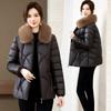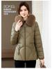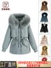 Nuevo abrigo de invierno estilo coreano ajustado con cuello de piel grande y acolchado de algodón para mujer, ropa de longitud media con acolchado de algodón, abrigo ajustado y moderno con acolchado de algodón.