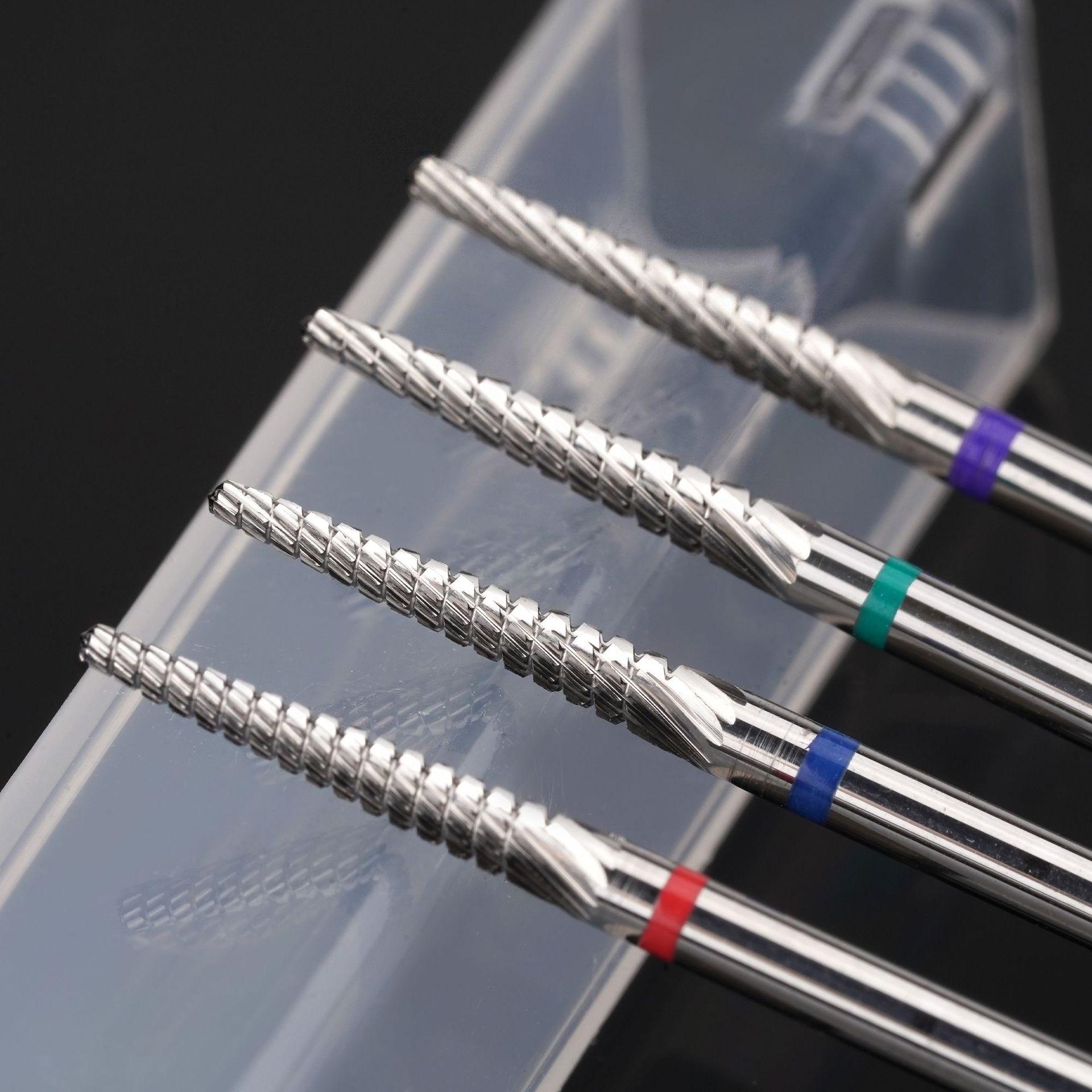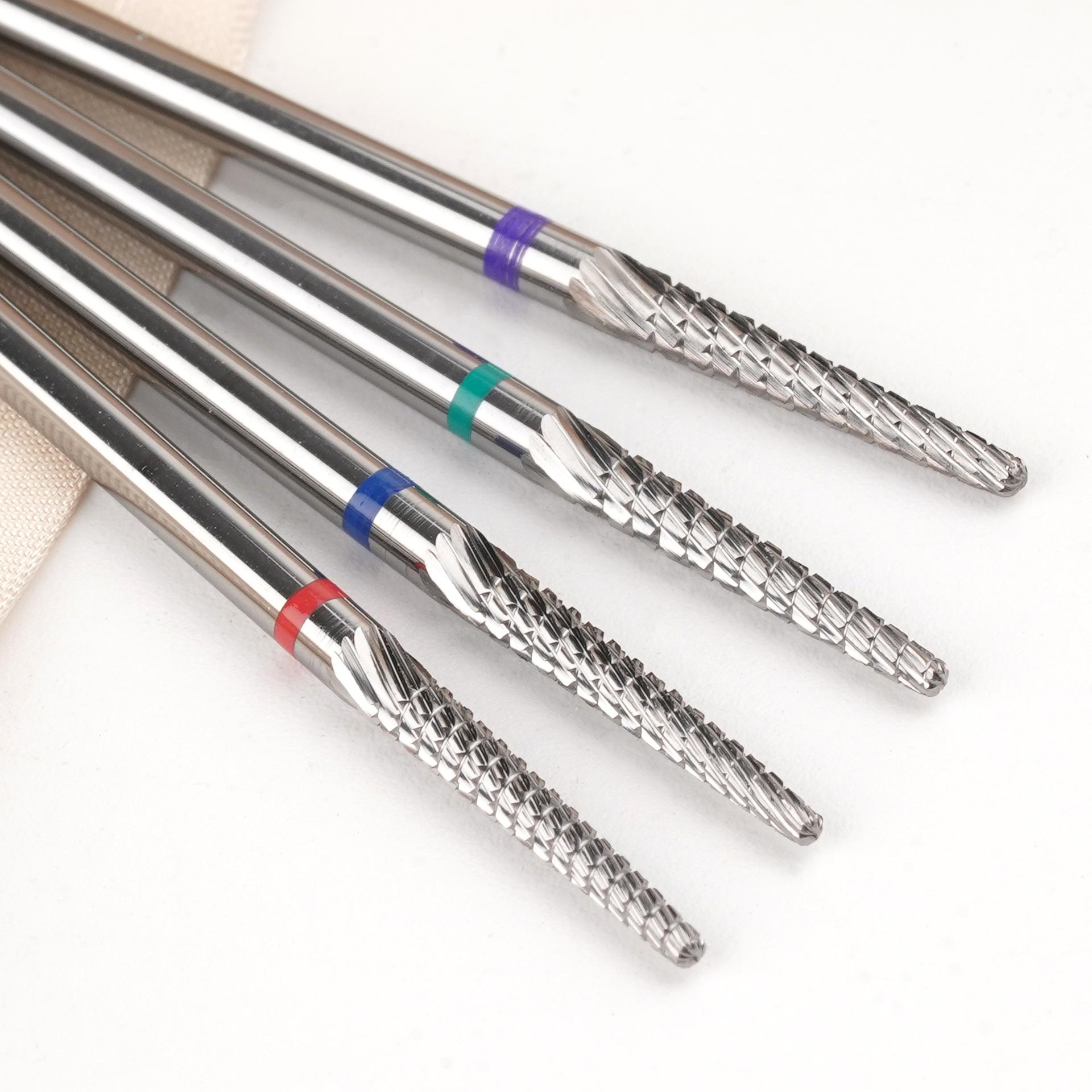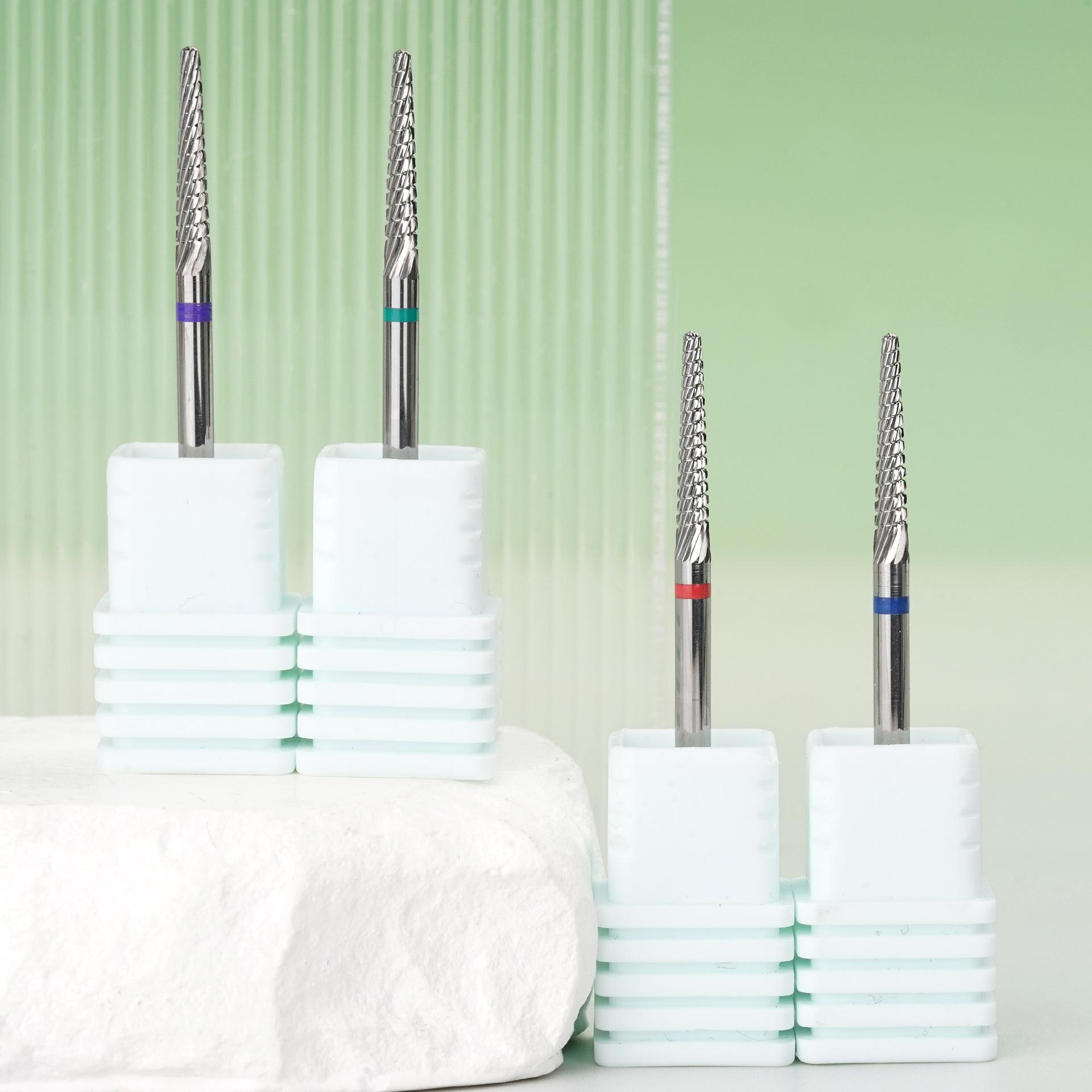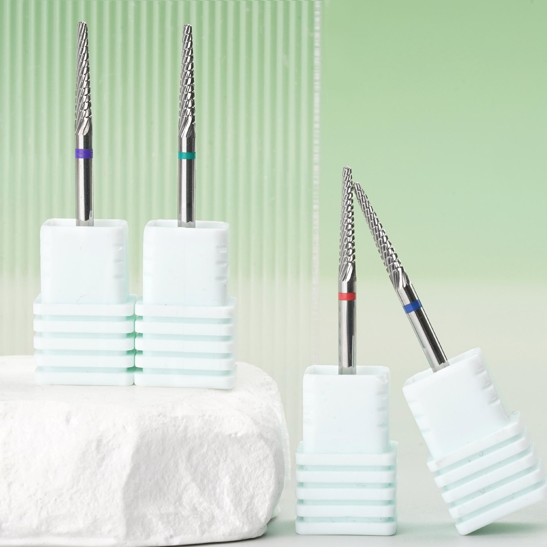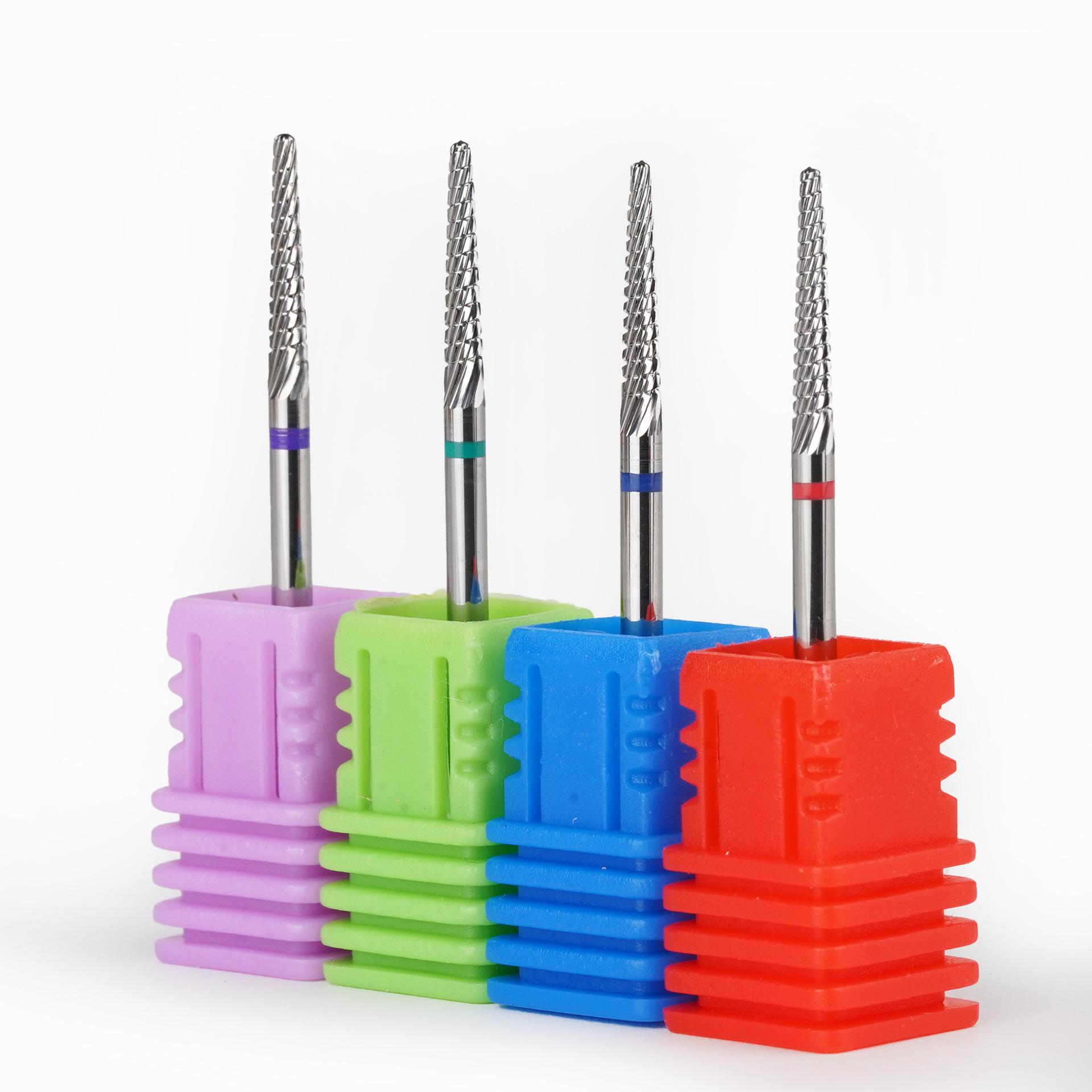Cabezal de pulido frontal de acero de tungsteno para decoración de uñas, para eliminar la piel muerta, empujar la fachada, moler el capullo duro, cono córneo, cabeza plana, taladro de descarga de uñas
