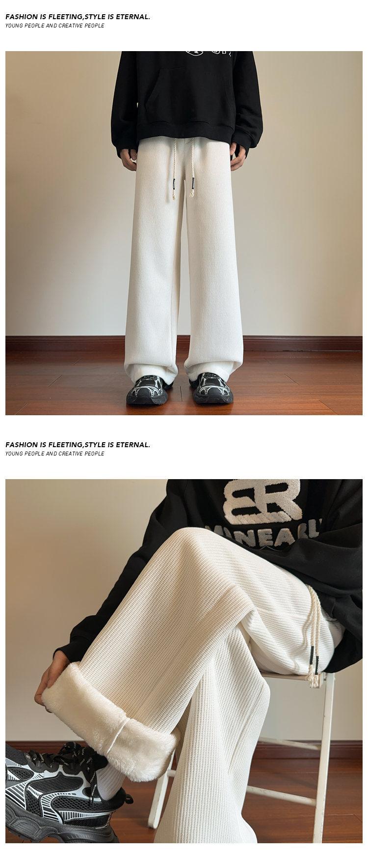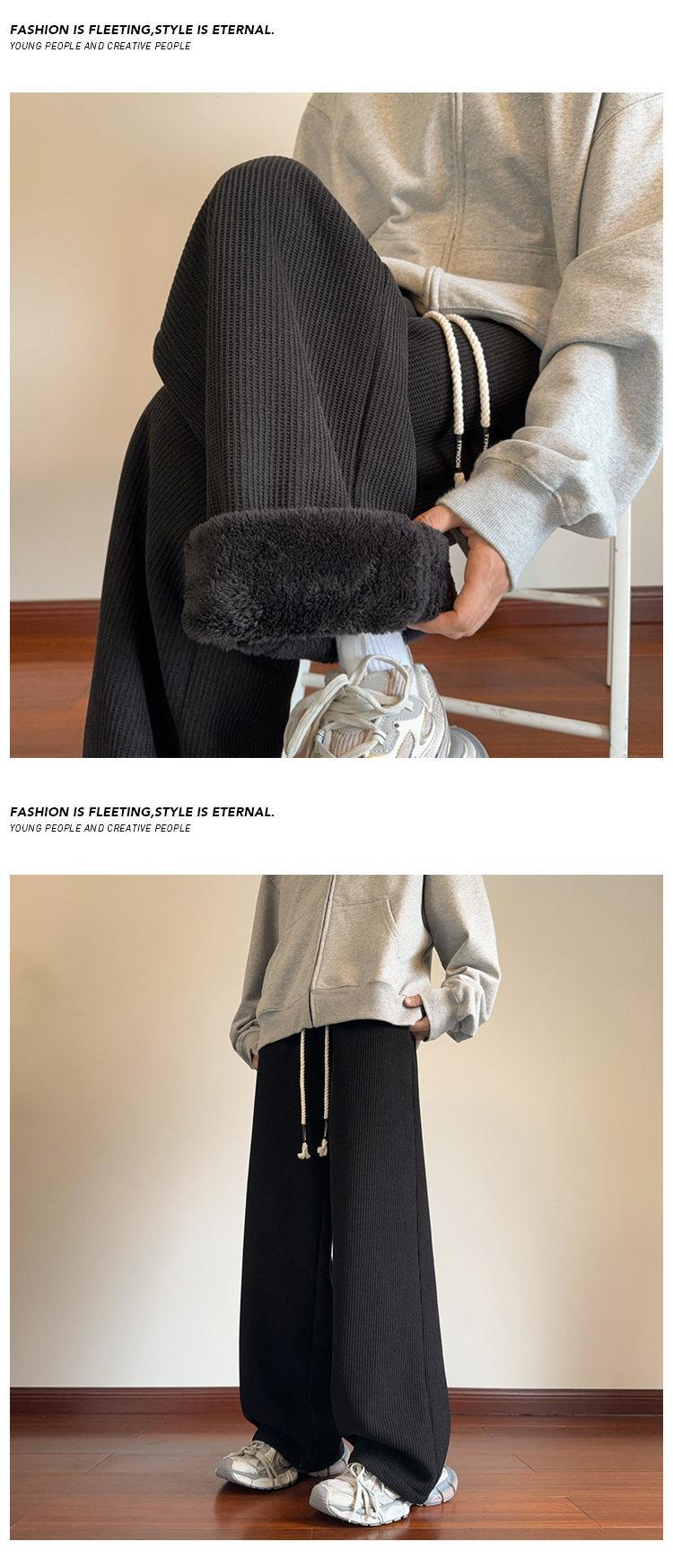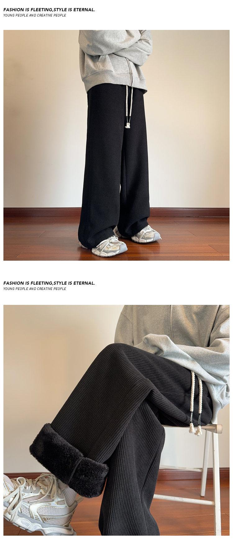 Pantalones de pierna ancha para mujer otoño e invierno nuevos estilo Hong Kong con caída holgados casuales pantalones para hombre con forro polar acolchados pantalones rectos deportivos