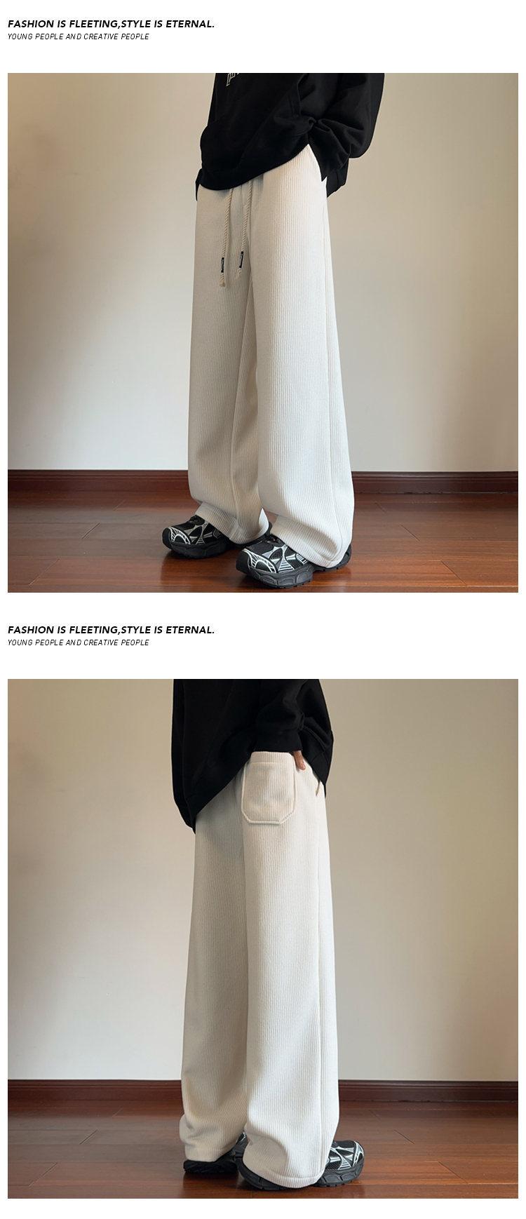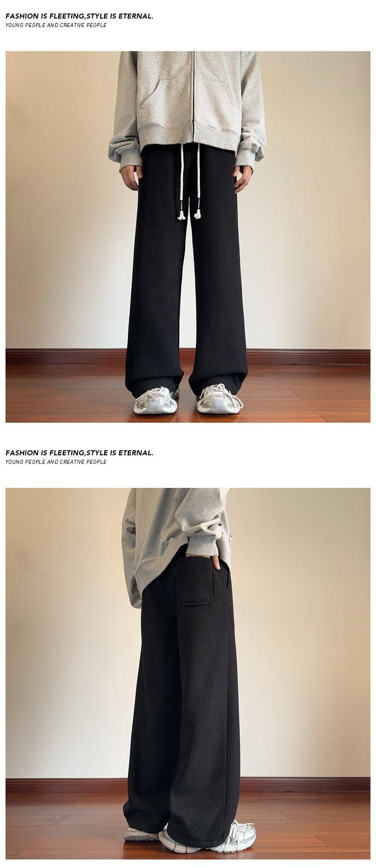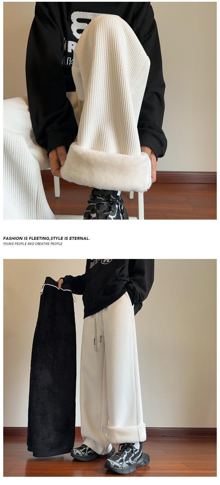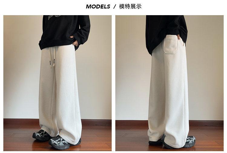 Pantalones de pierna ancha para mujer otoño e invierno nuevos estilo Hong Kong con caída holgados casuales pantalones para hombre con forro polar acolchados pantalones rectos deportivos